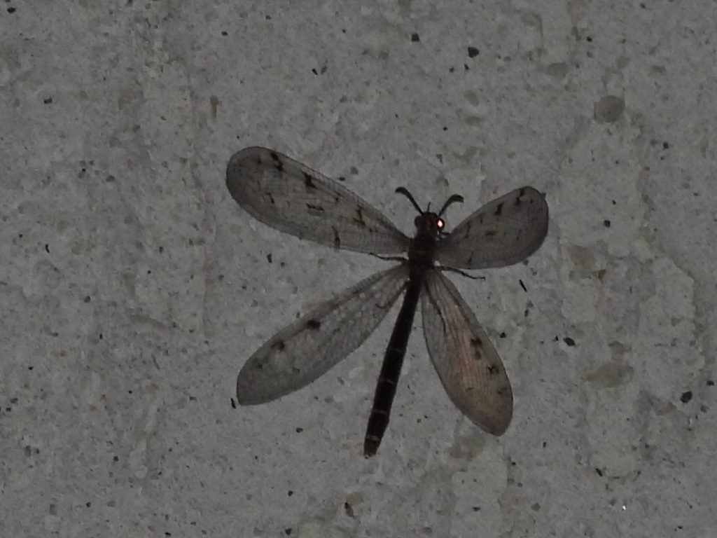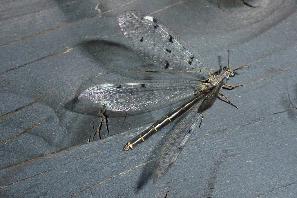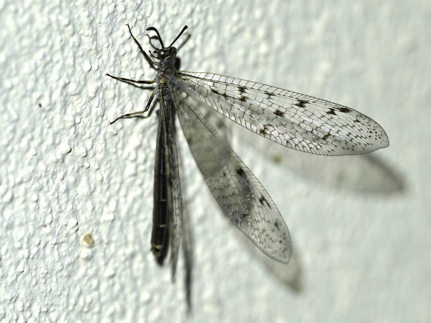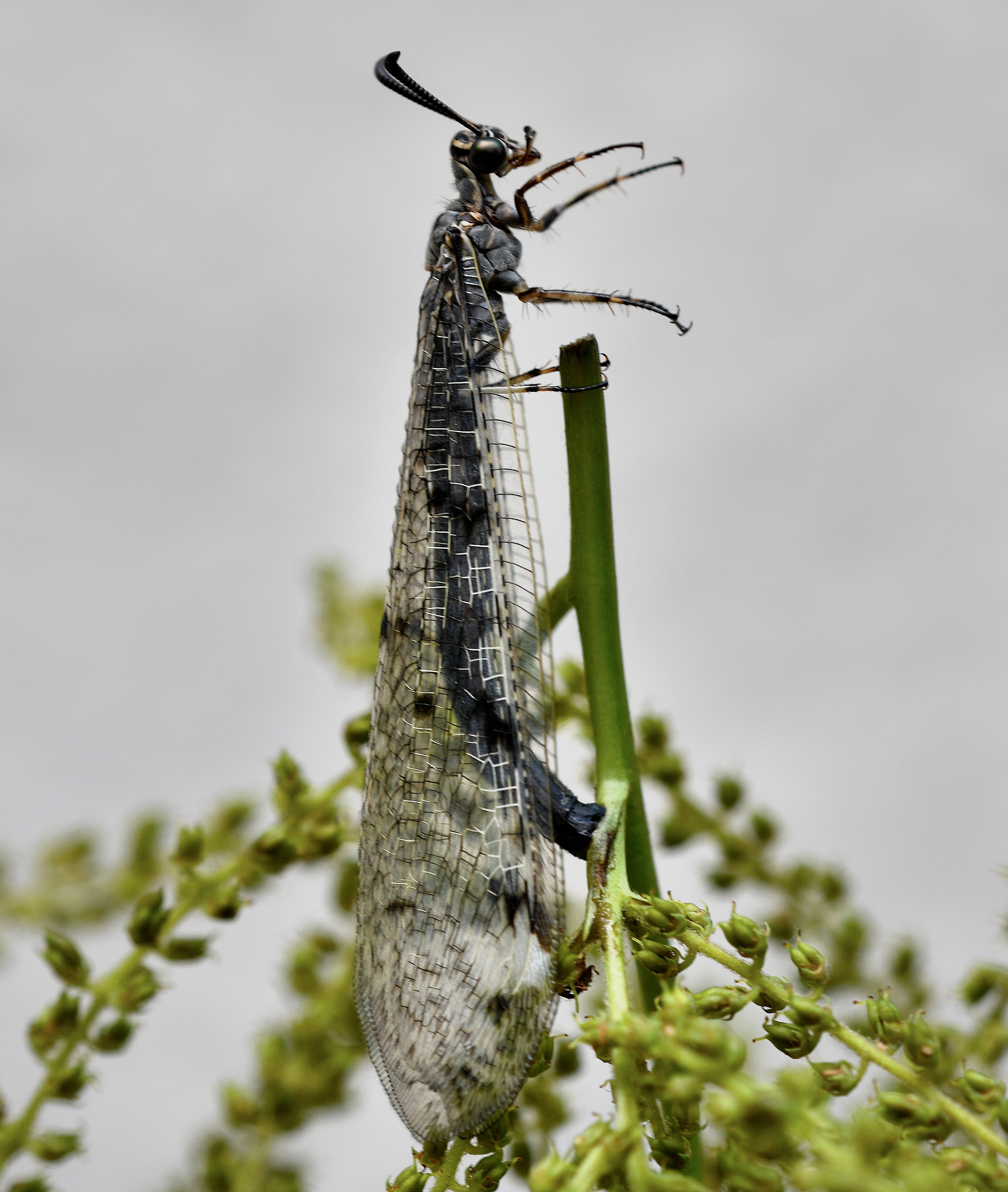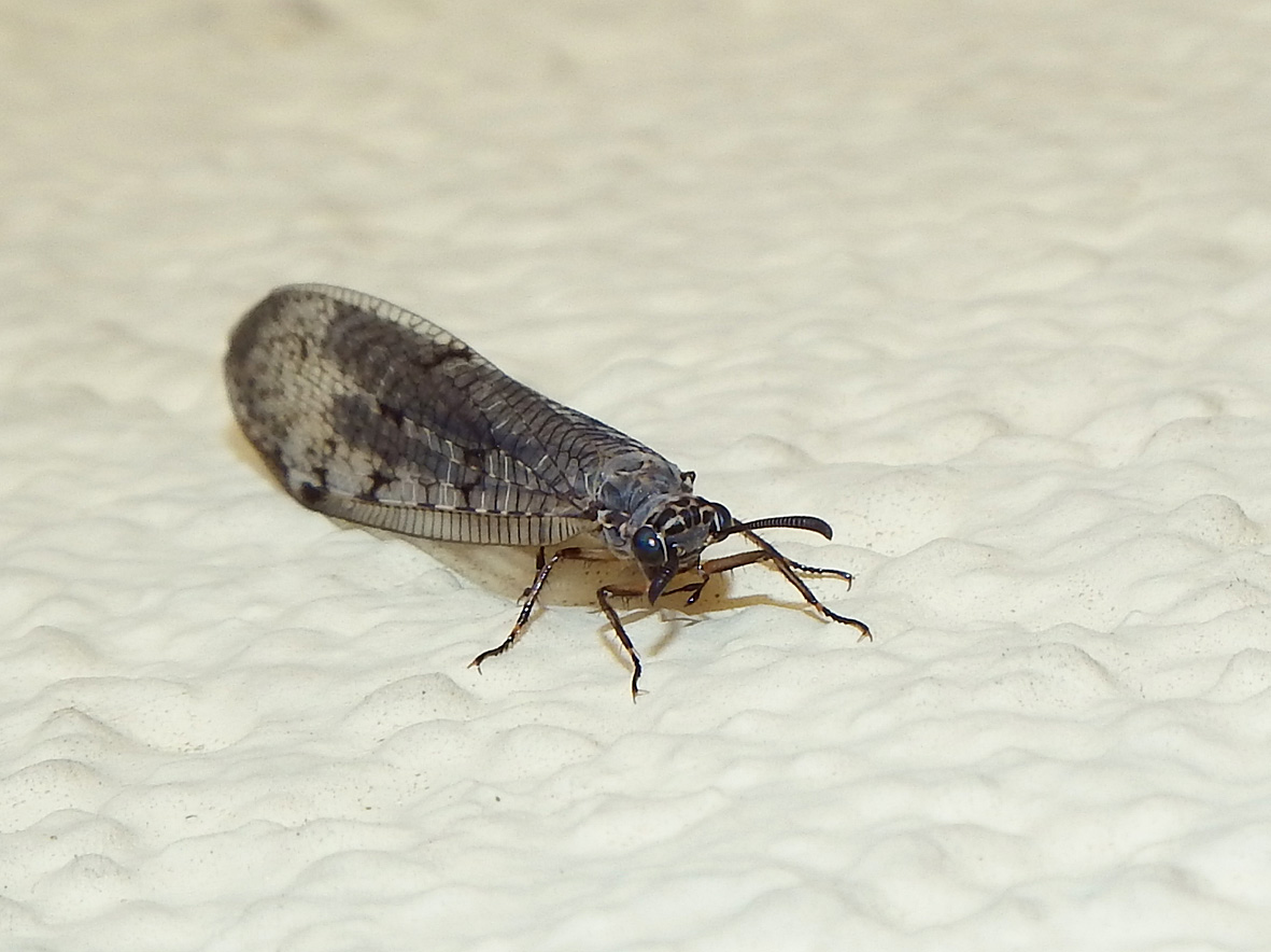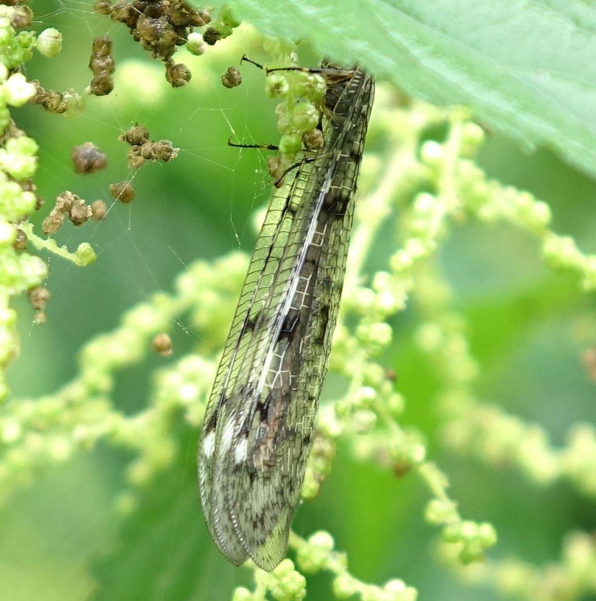 Geflecktflüglige Ameisenjungfer (Euroleon nostras (Geoffroy in Fourcroy, 1785)), Wohngrundstück, 01896 Lichtenberg, Juli 2019.
