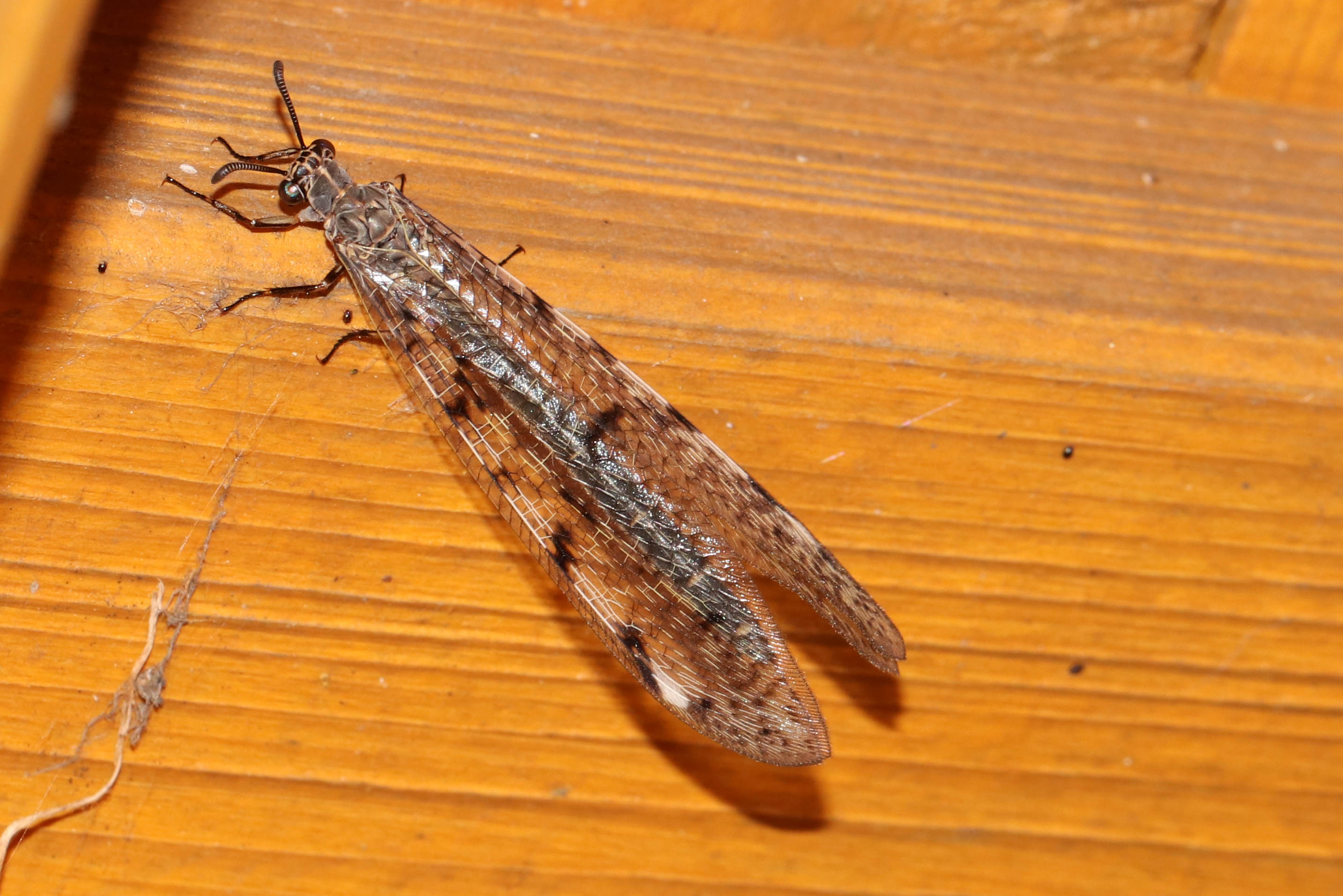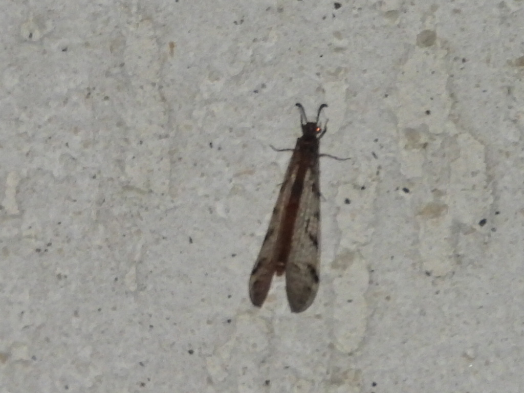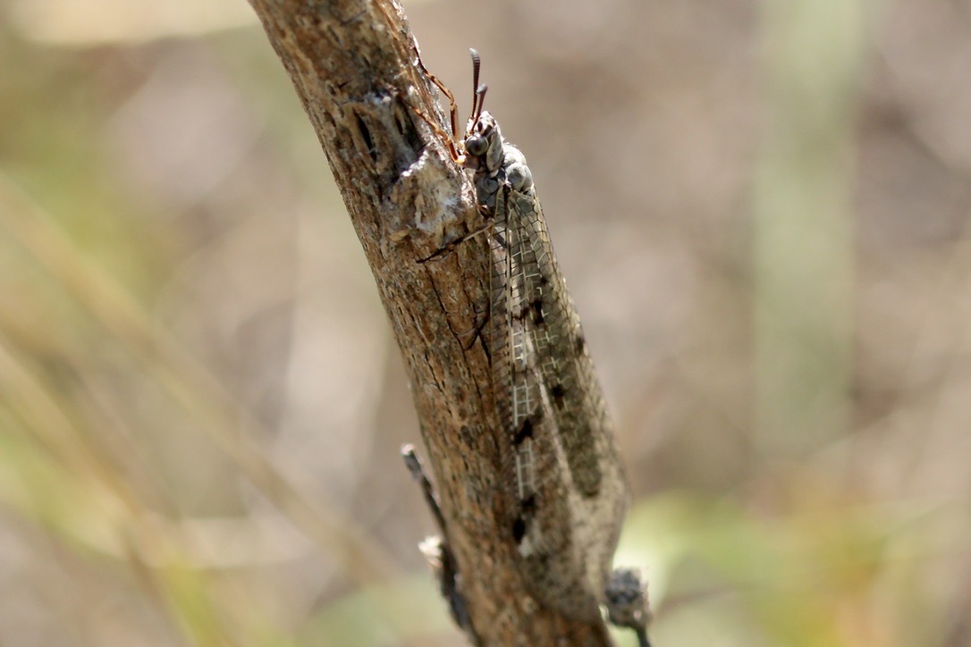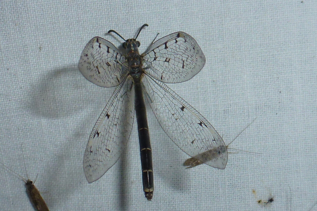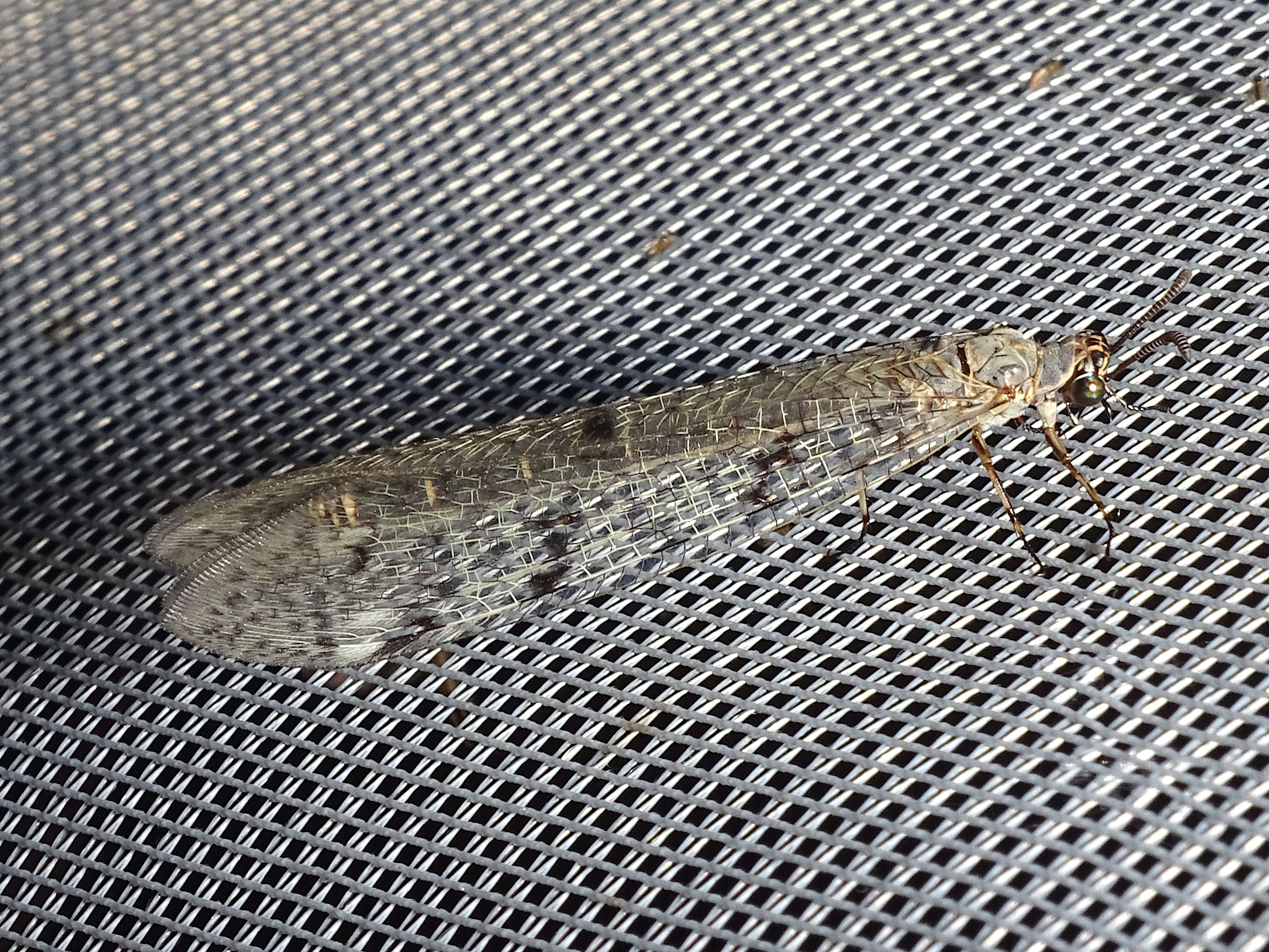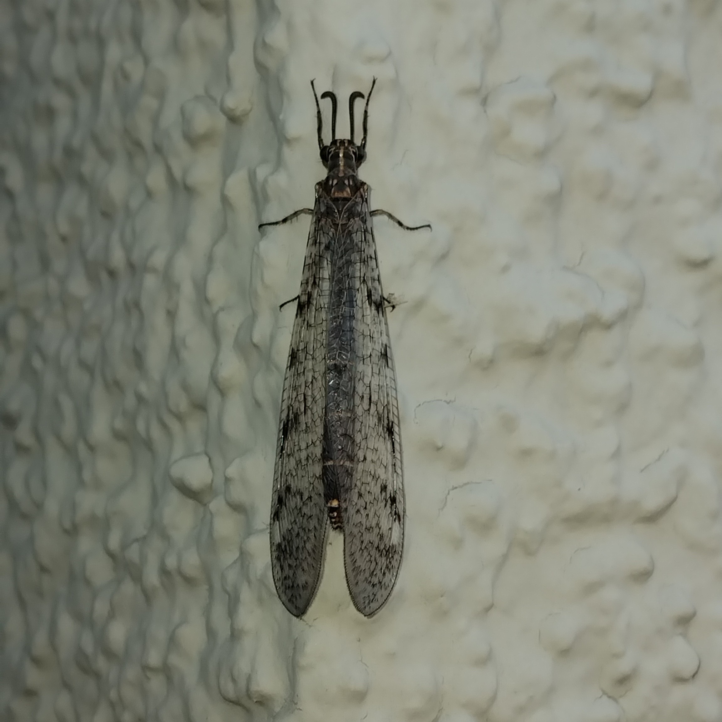 Geflecktflüglige Ameisenjungfer (Euroleon nostras (Geoffroy in Fourcroy, 1785)), Wohngrundstück, 01896 Lichtenberg, Juli 2019.