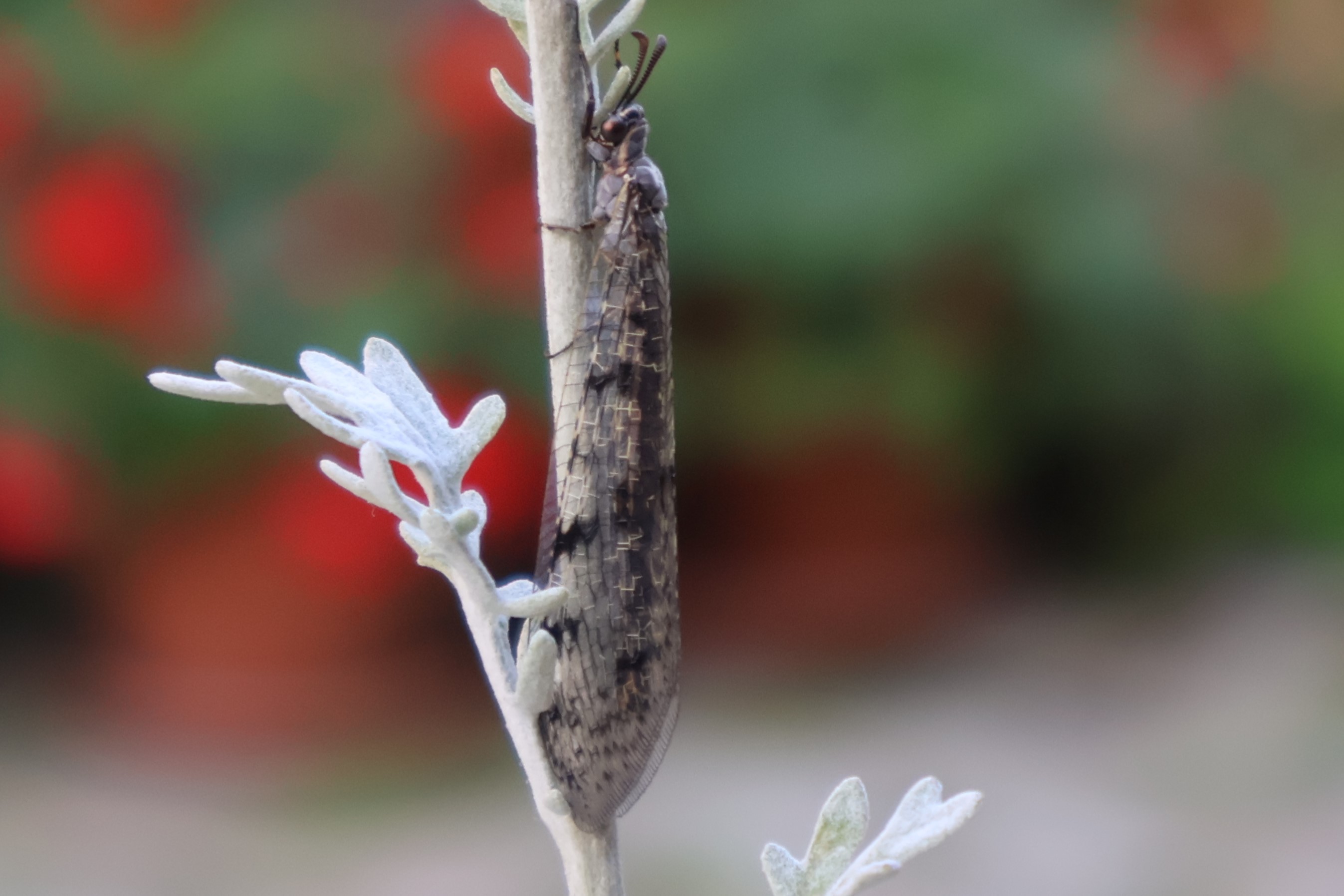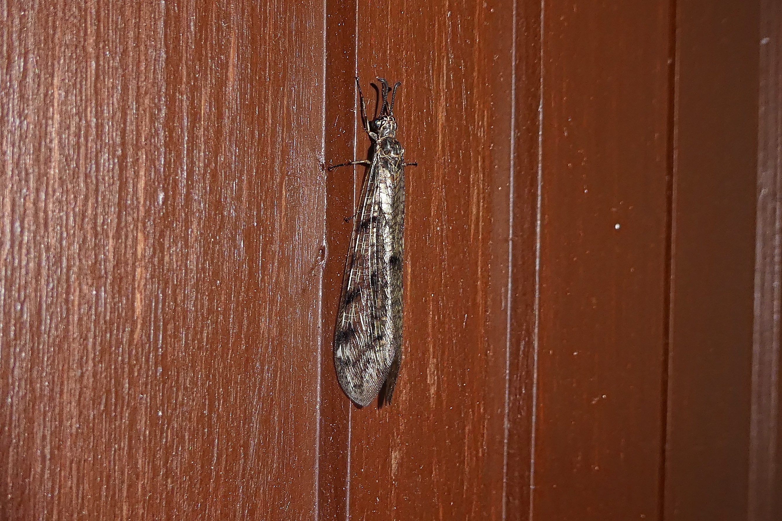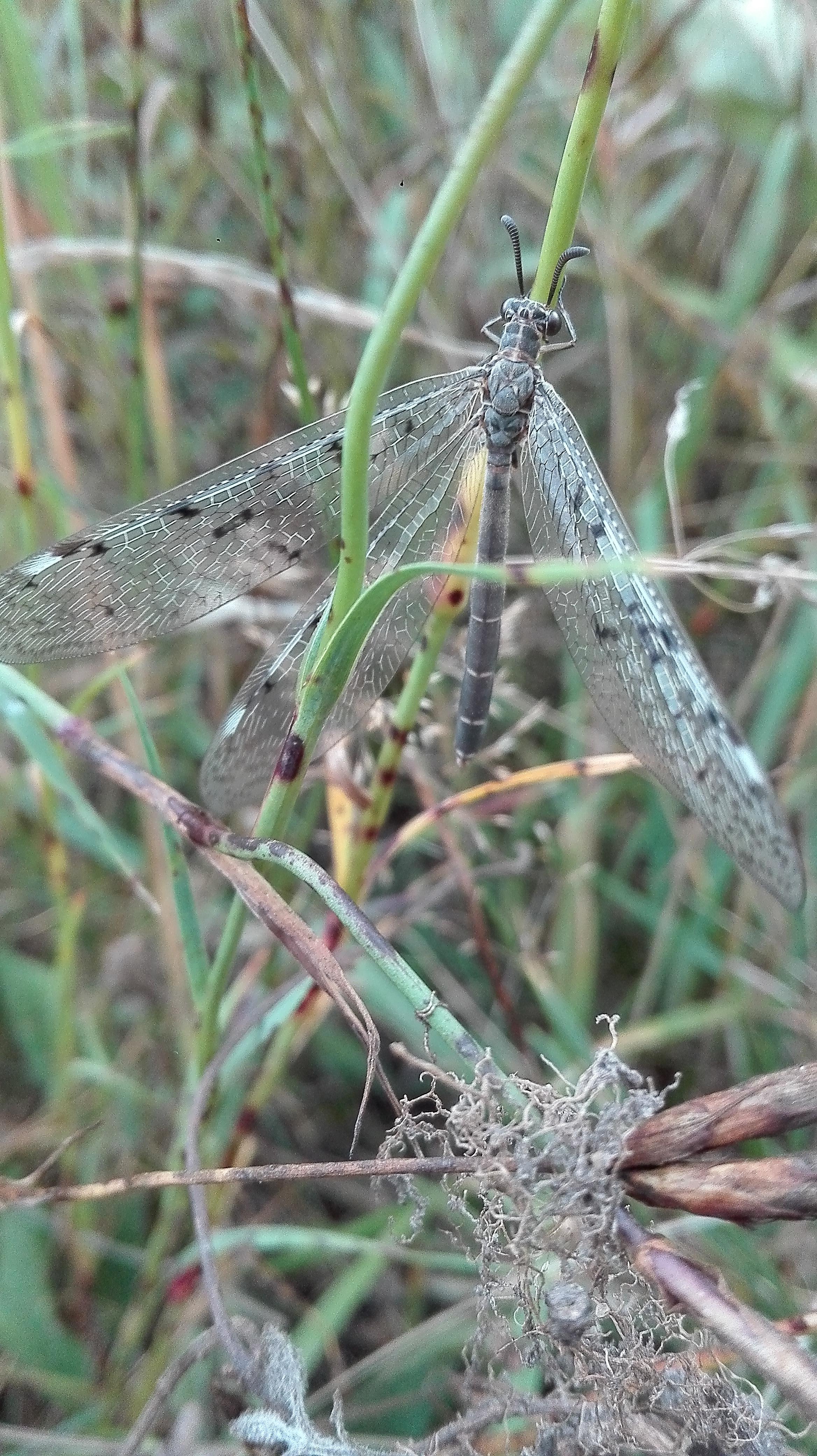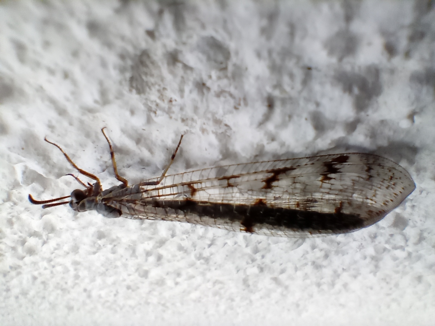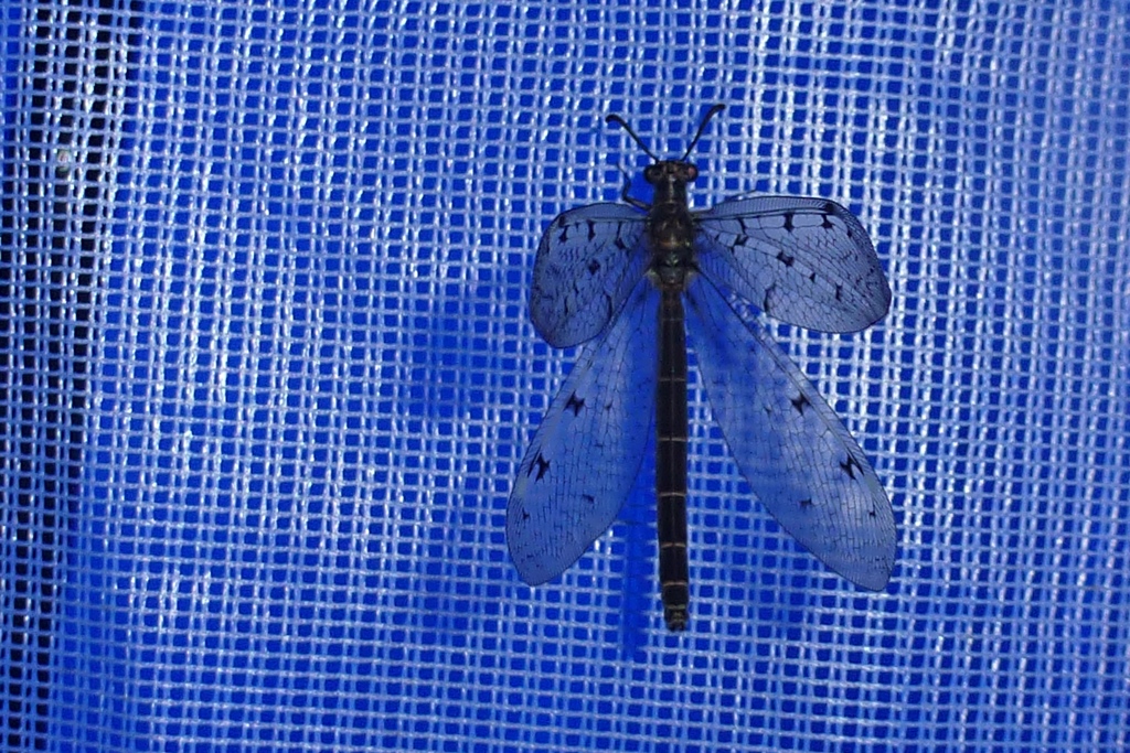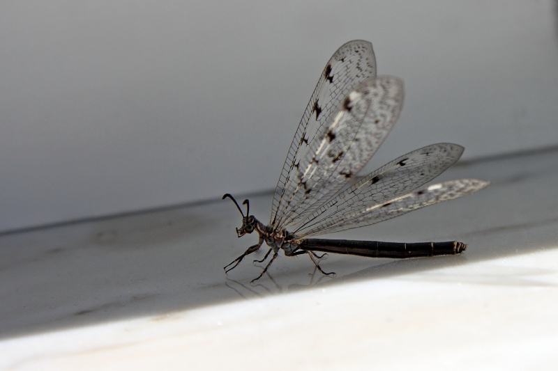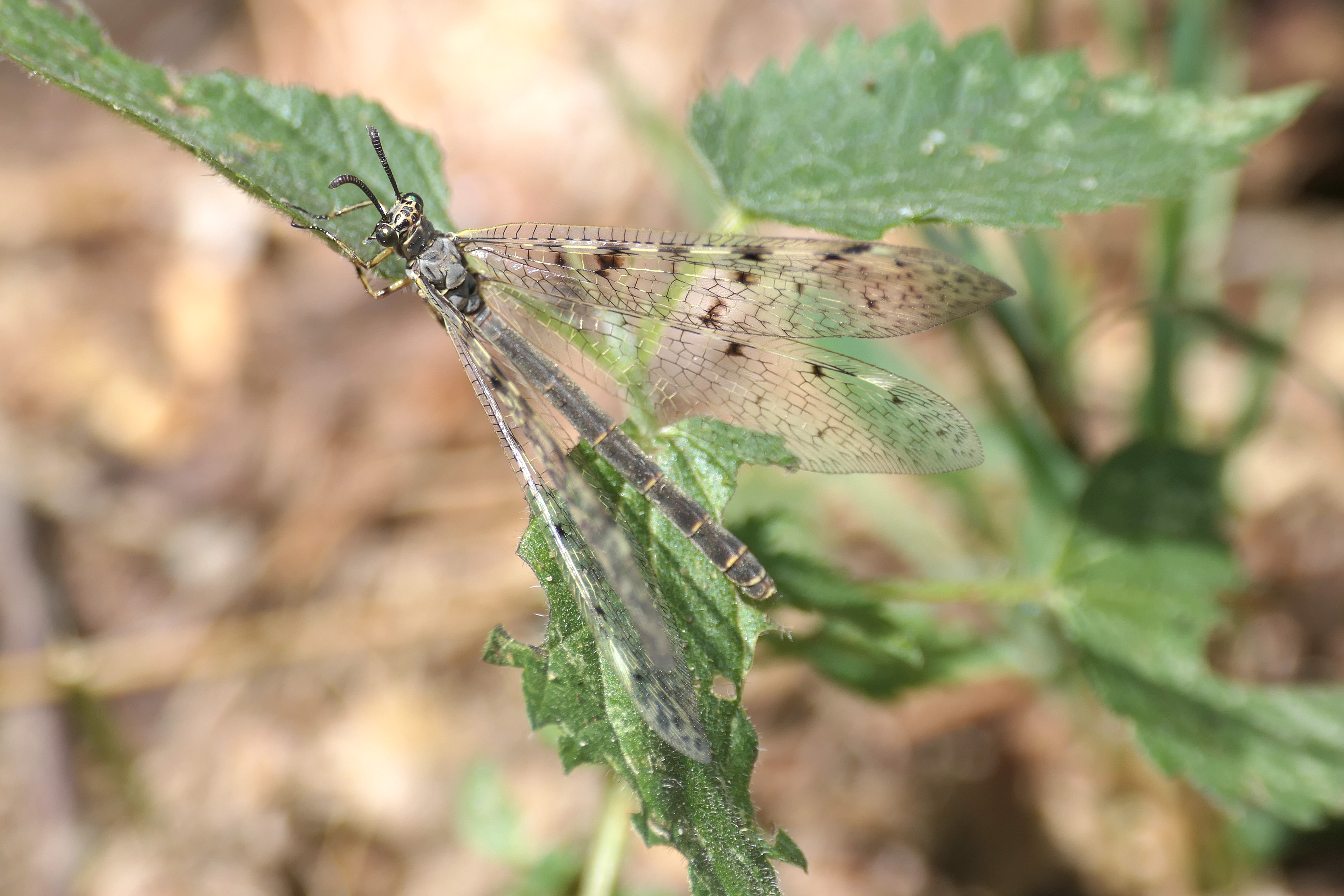 Geflecktflüglige Ameisenjungfer (Euroleon nostras (Geoffroy in Fourcroy, 1785)), Wohngrundstück, 01896 Lichtenberg, Juli 2019.