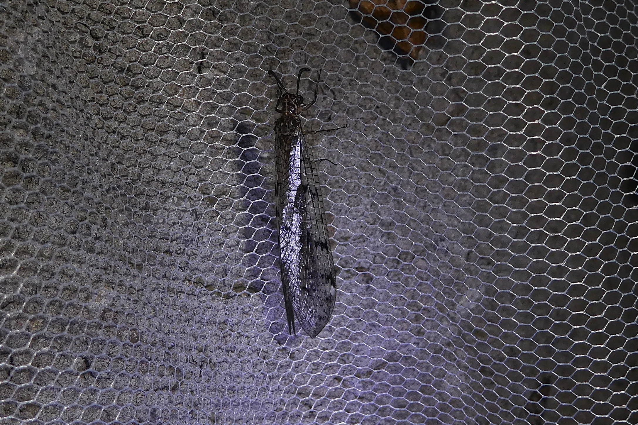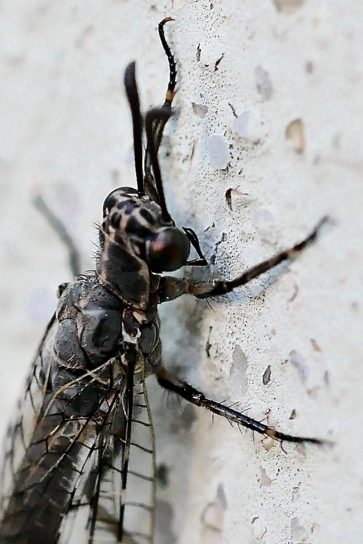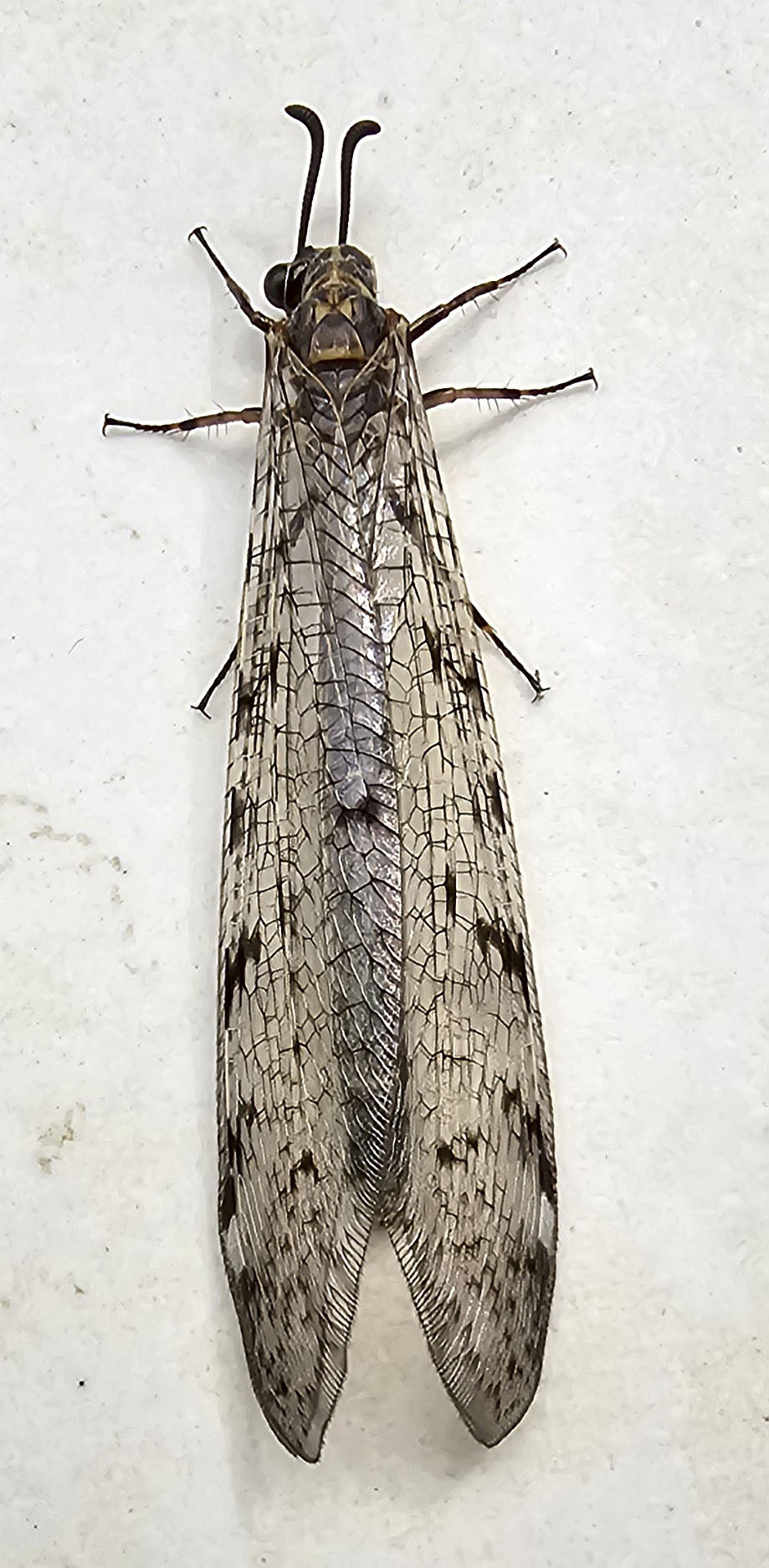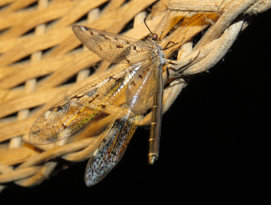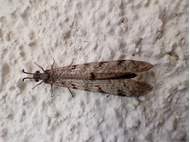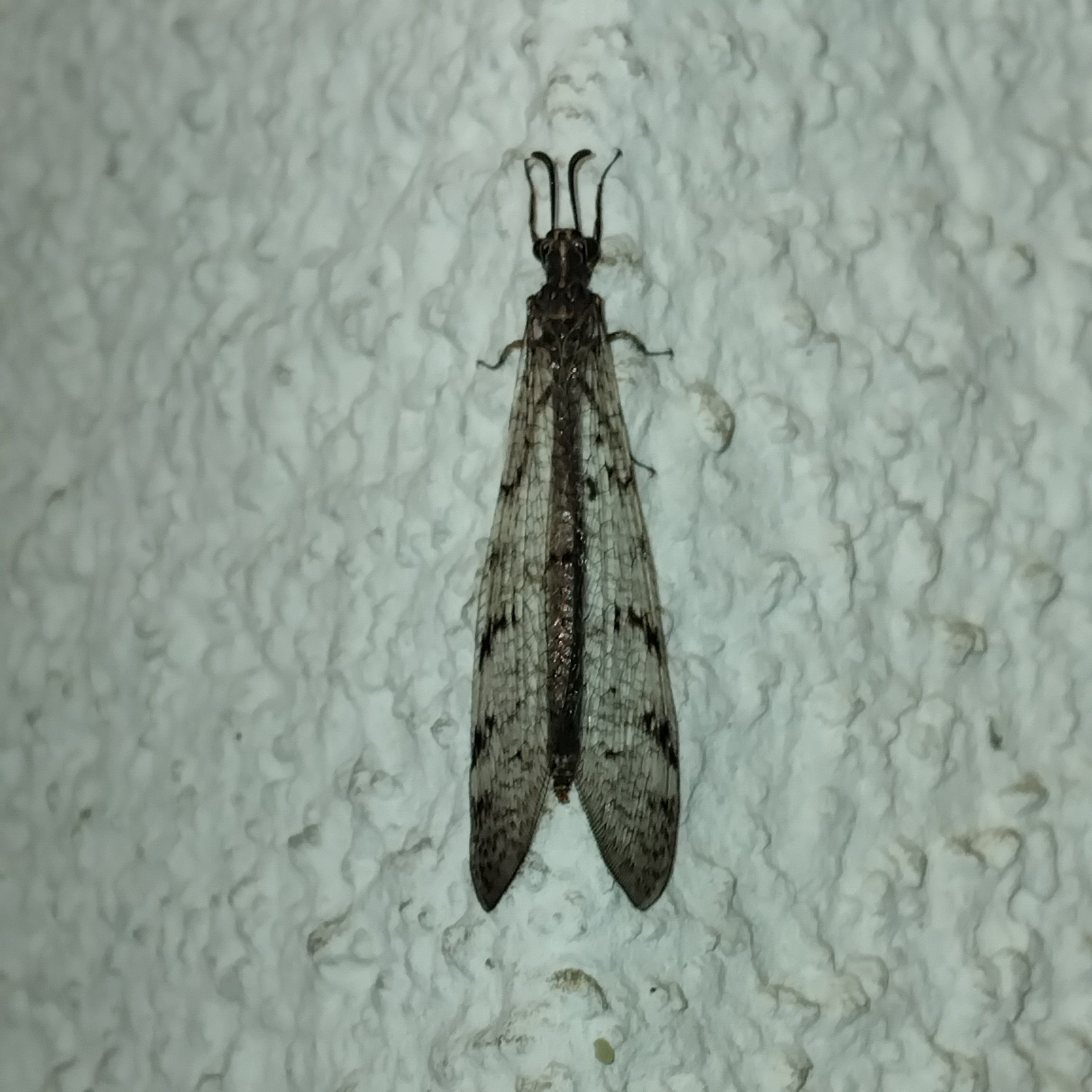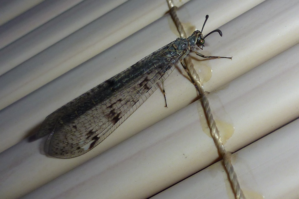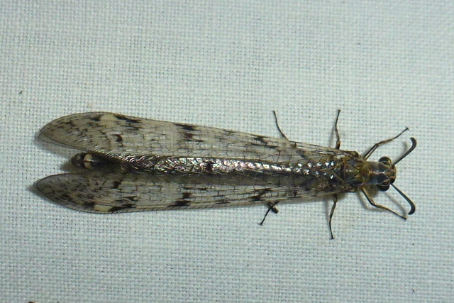 Geflecktflüglige Ameisenjungfer (Euroleon nostras (Geoffroy in Fourcroy, 1785)), Wohngrundstück, 01896 Lichtenberg, Juli 2019.