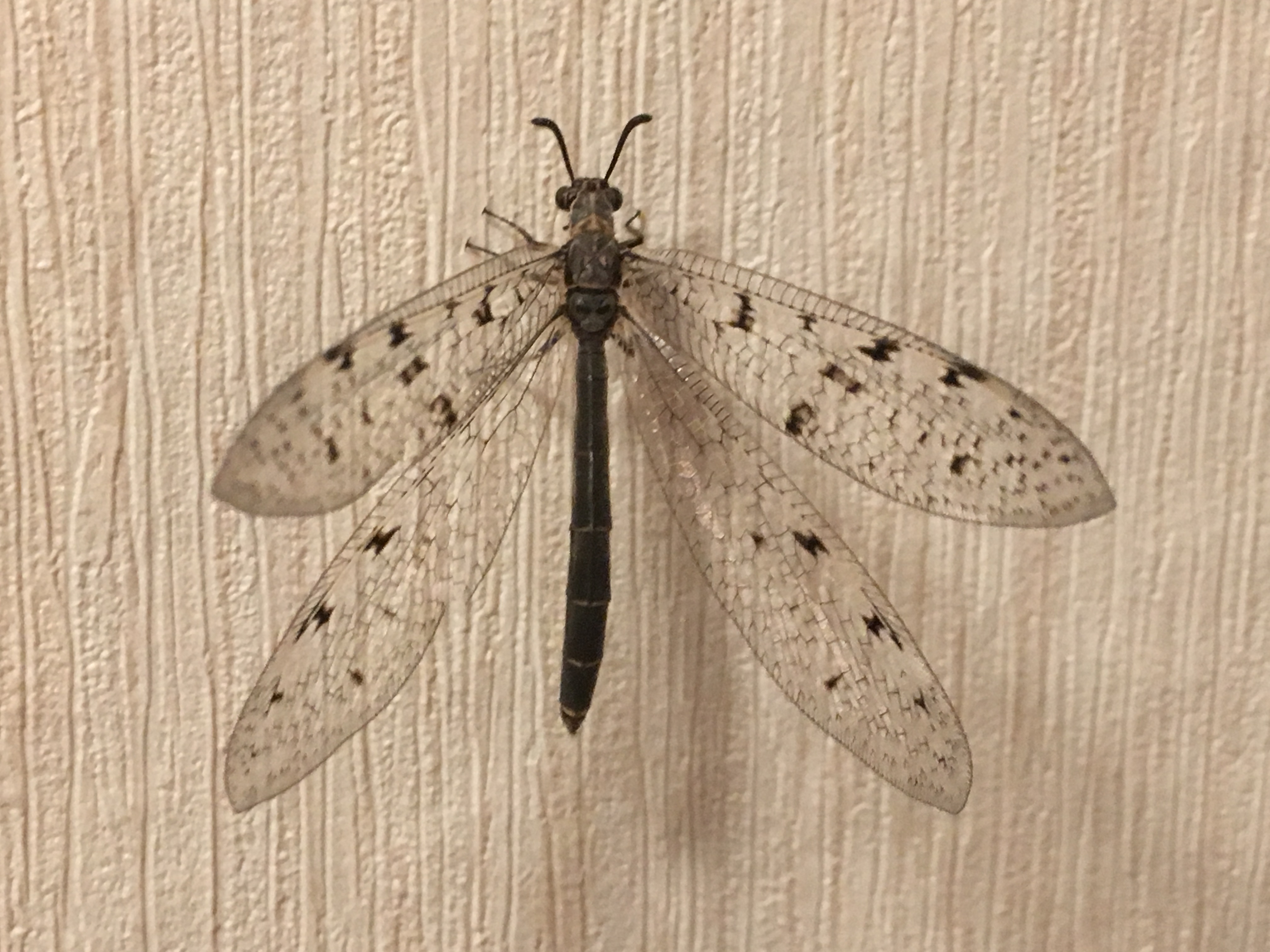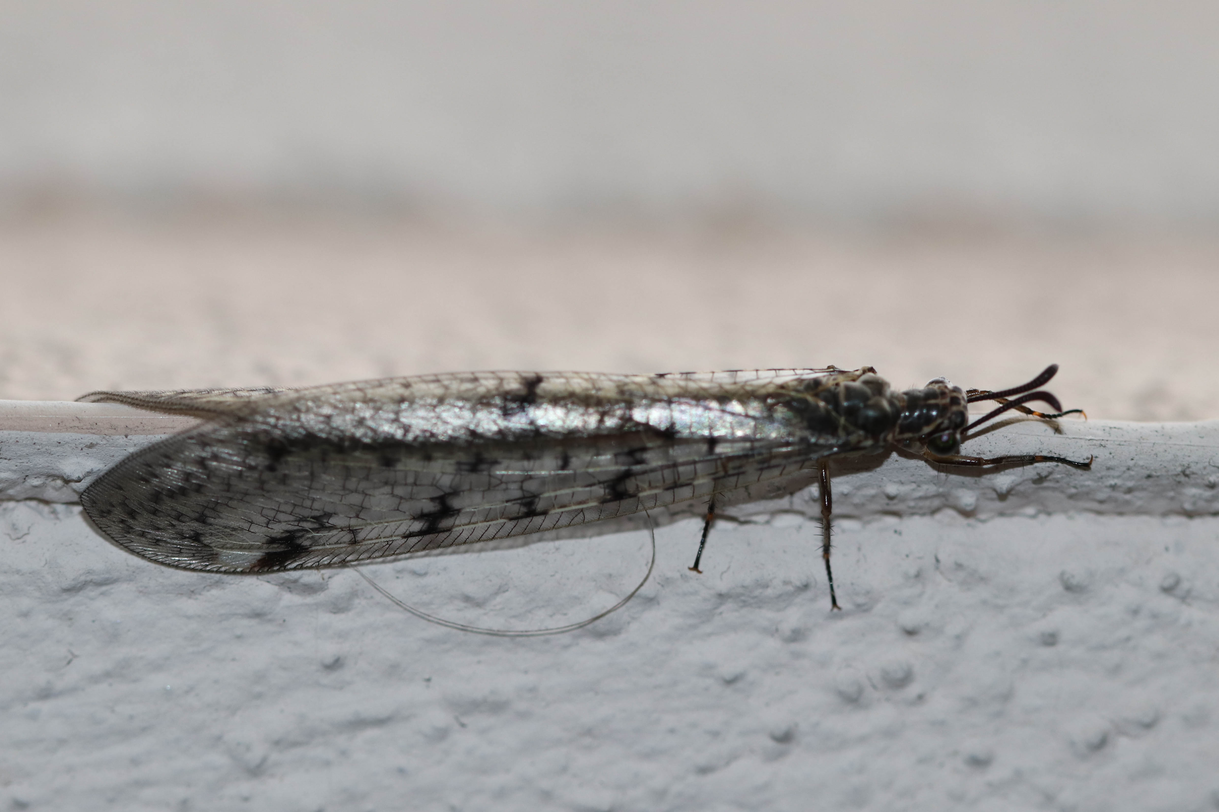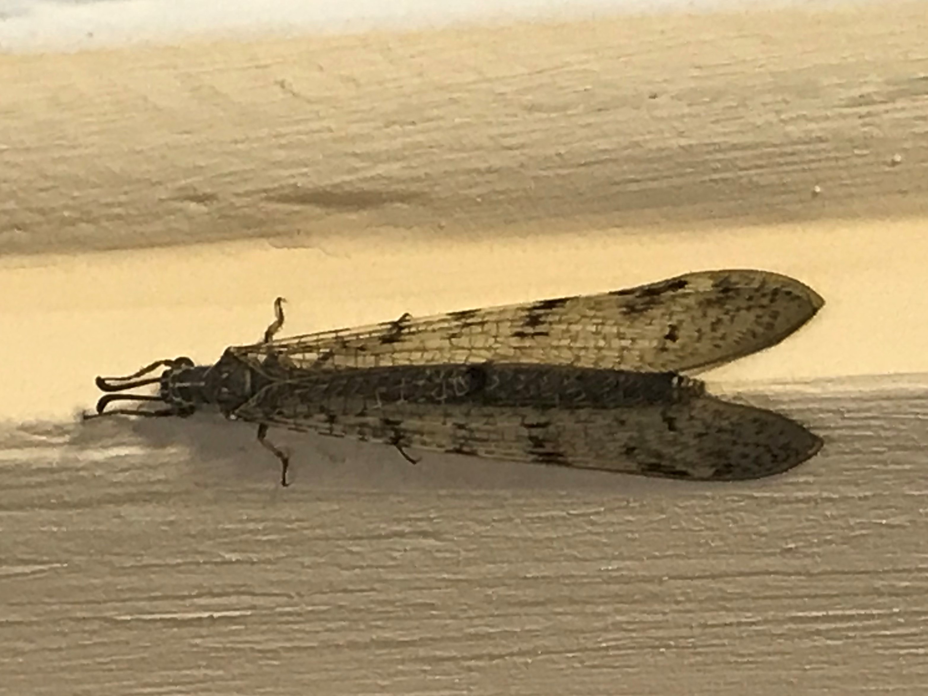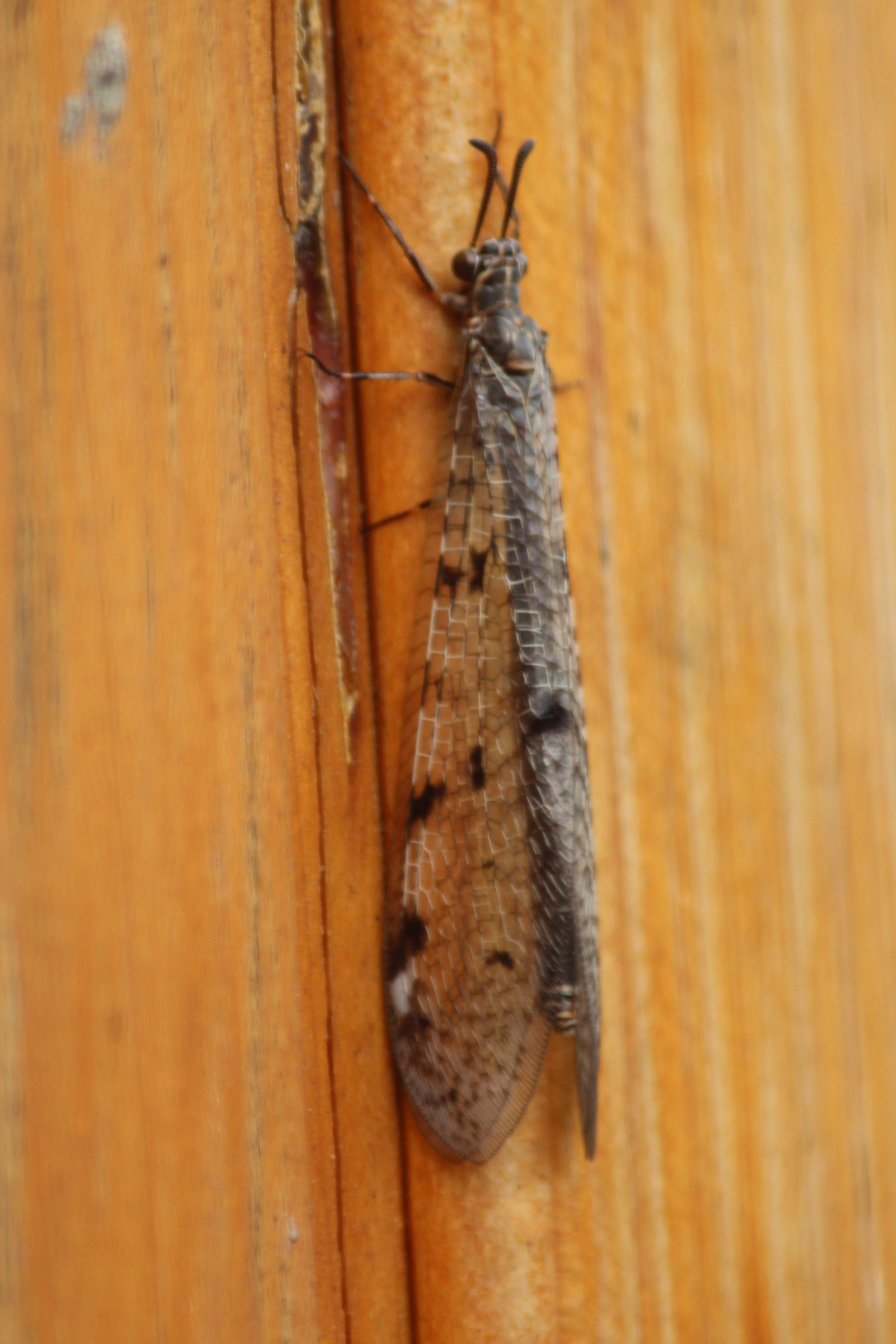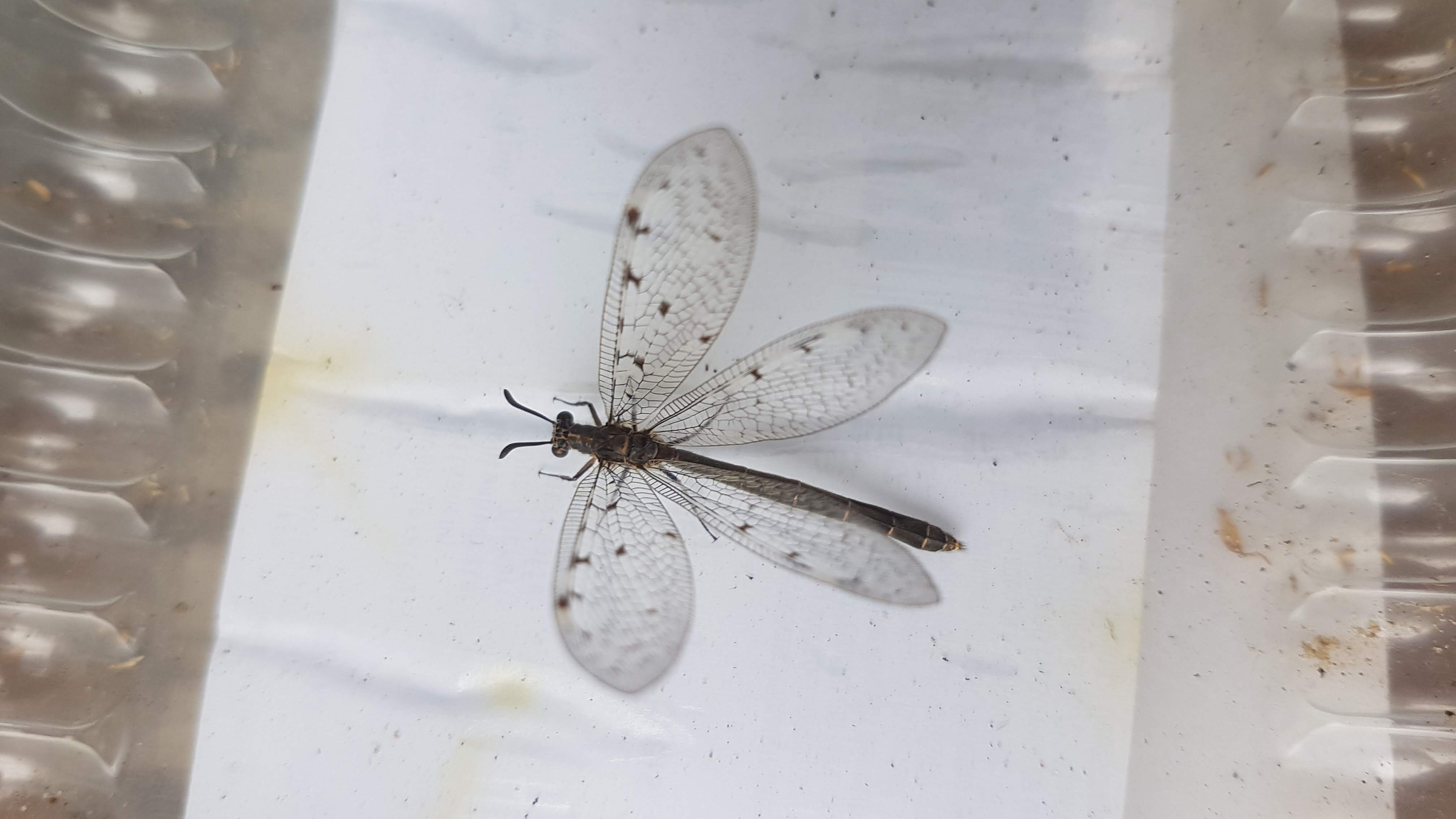 Geflecktflüglige Ameisenjungfer (Euroleon nostras (Geoffroy in Fourcroy, 1785)), Wohngrundstück, 01896 Lichtenberg, Juli 2019.