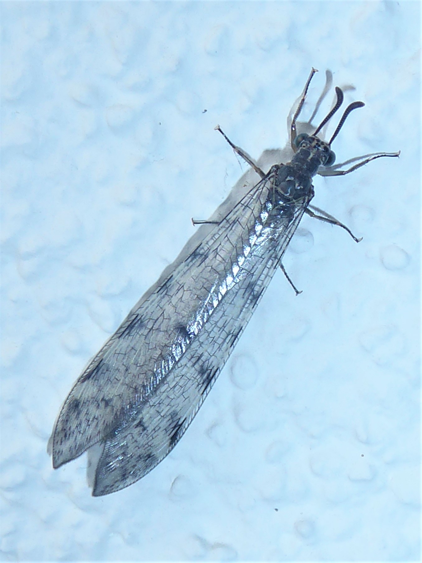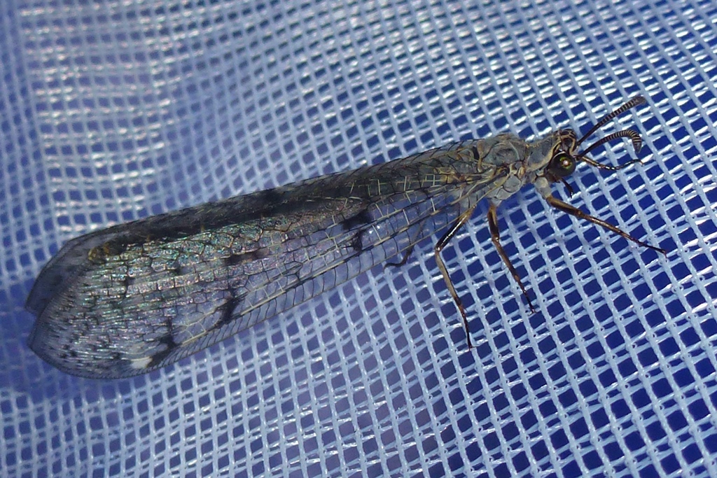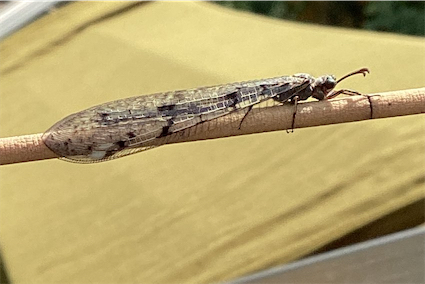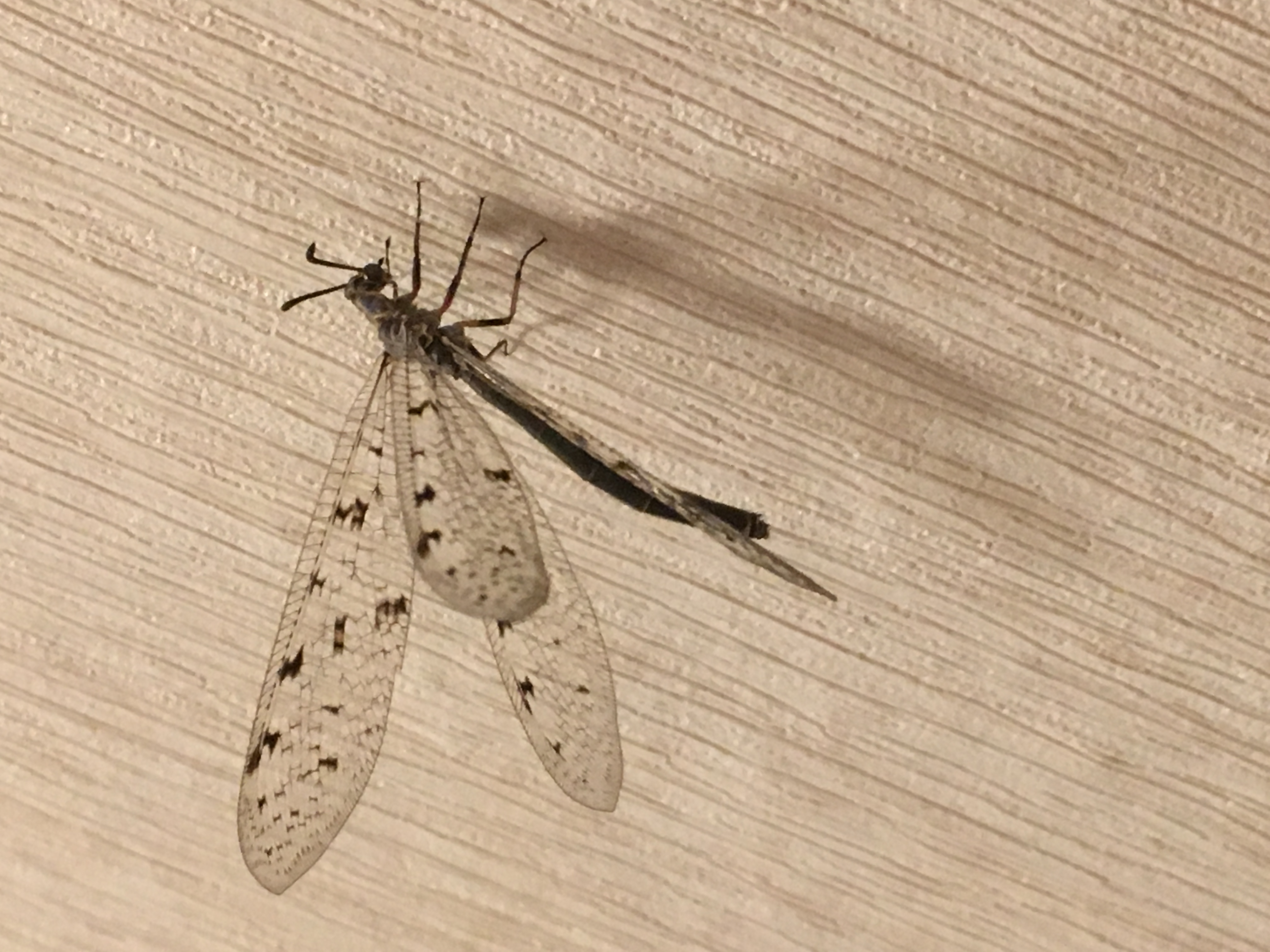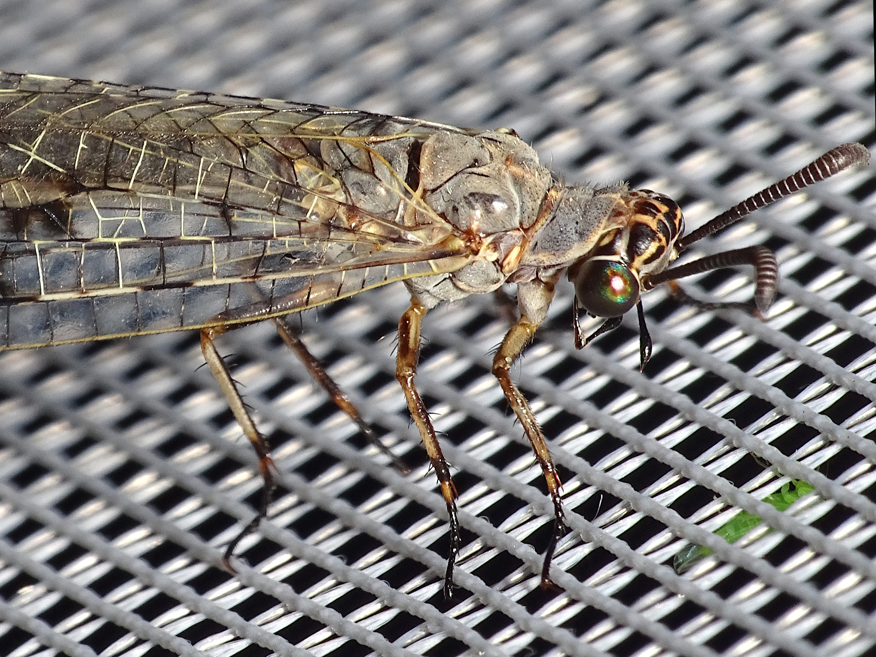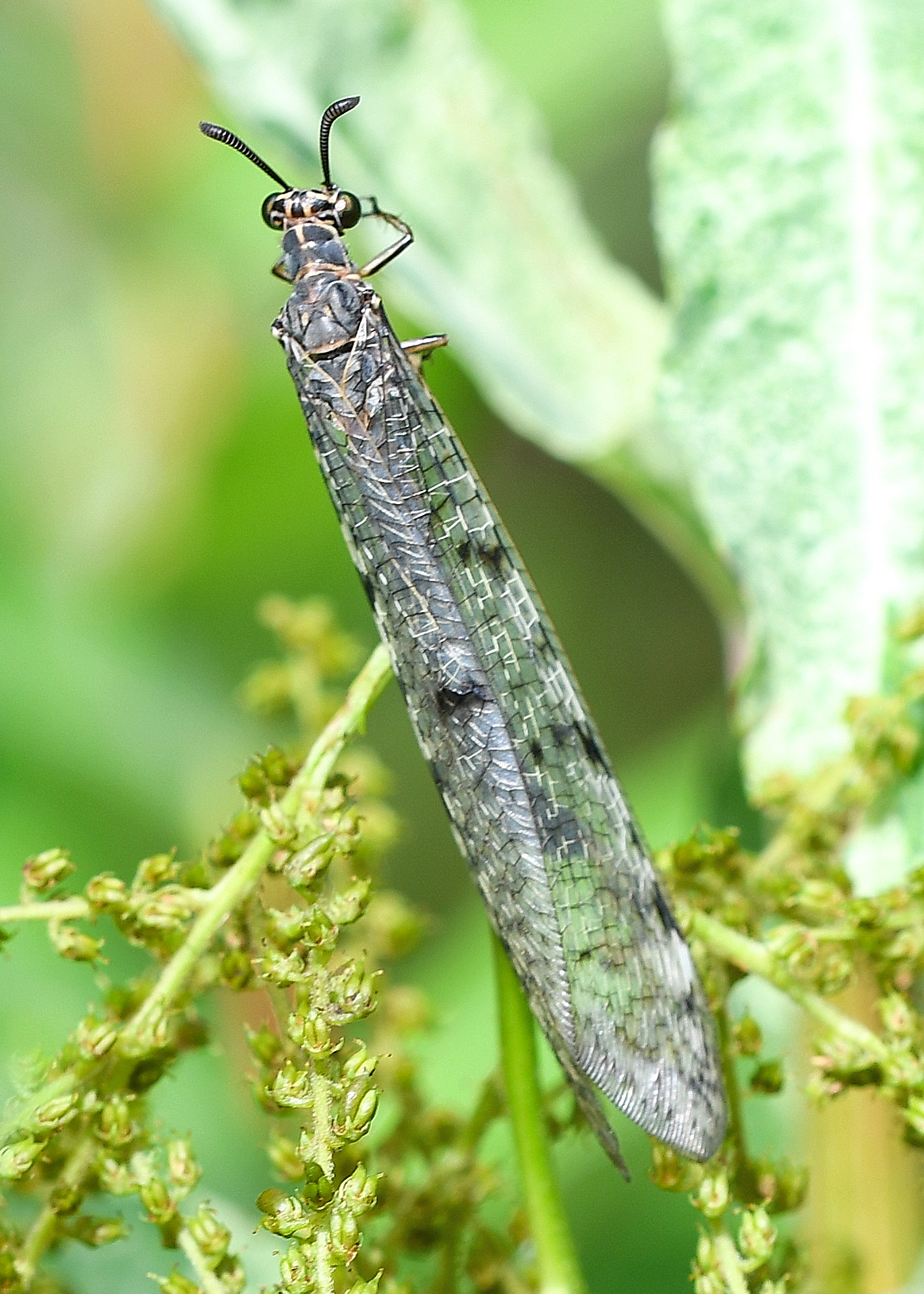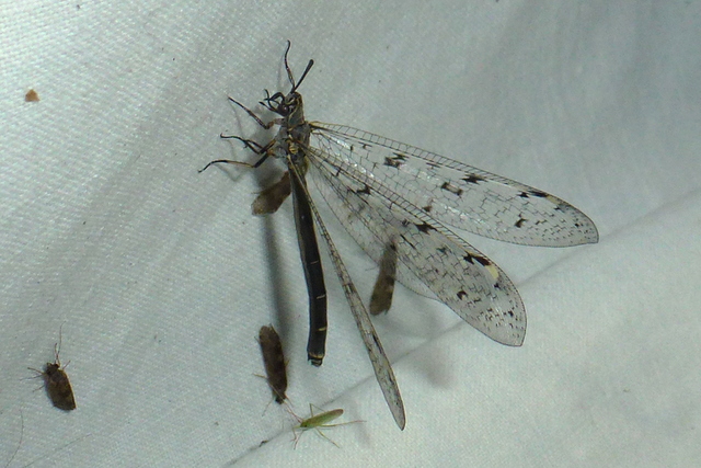 Geflecktflüglige Ameisenjungfer (Euroleon nostras (Geoffroy in Fourcroy, 1785)), Wohngrundstück, 01896 Lichtenberg, Juli 2019.