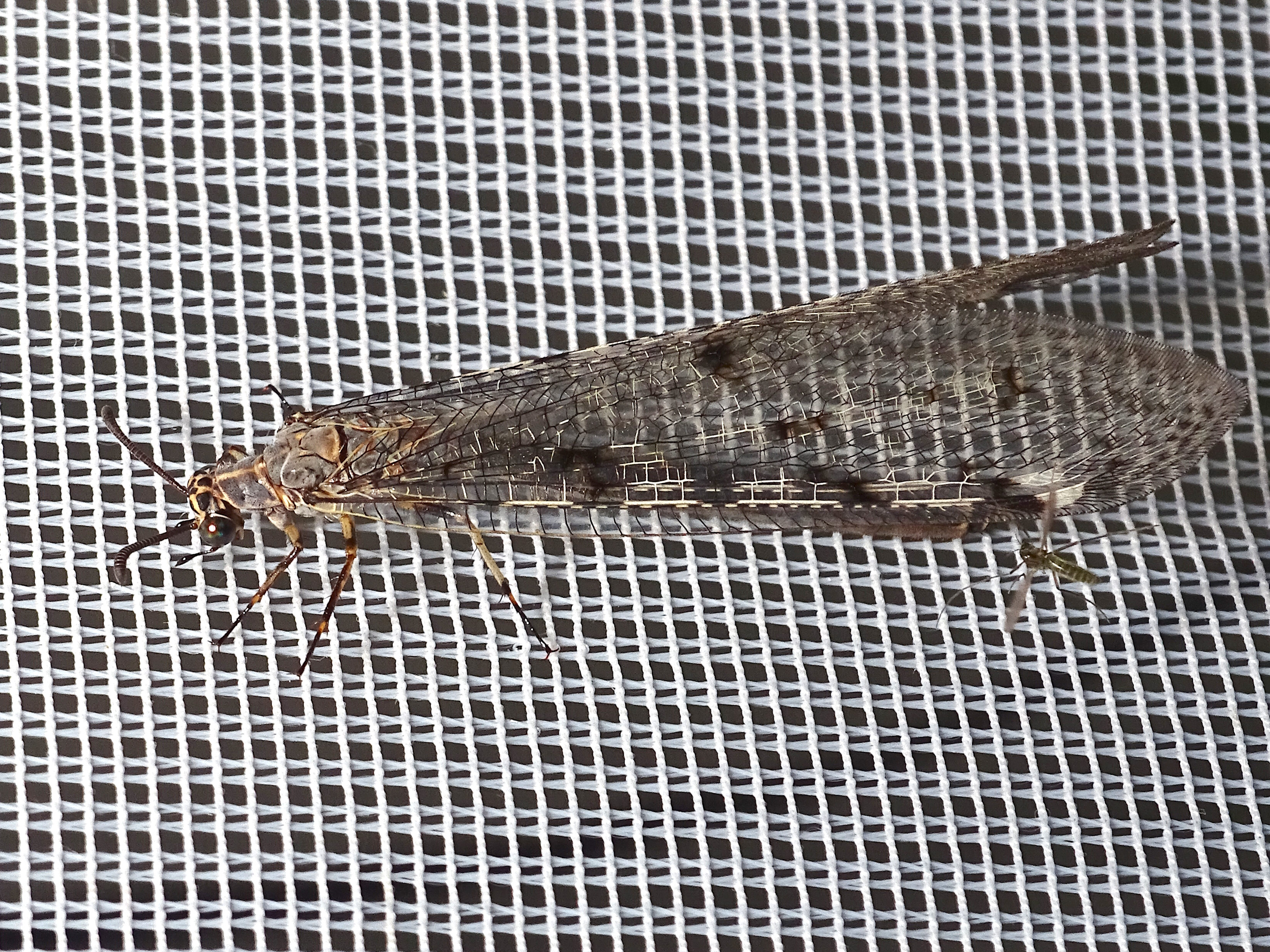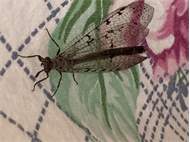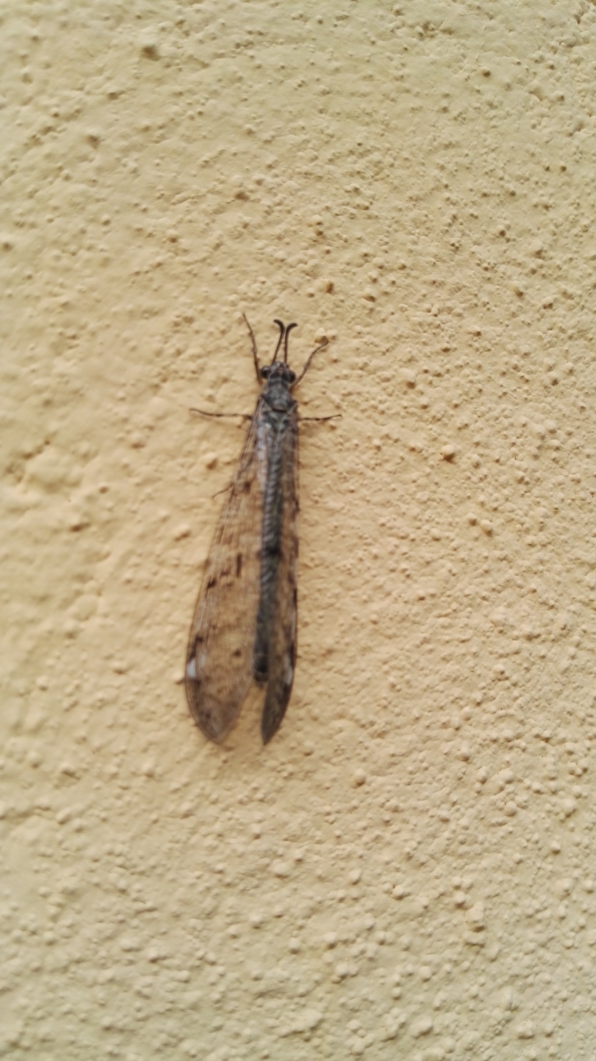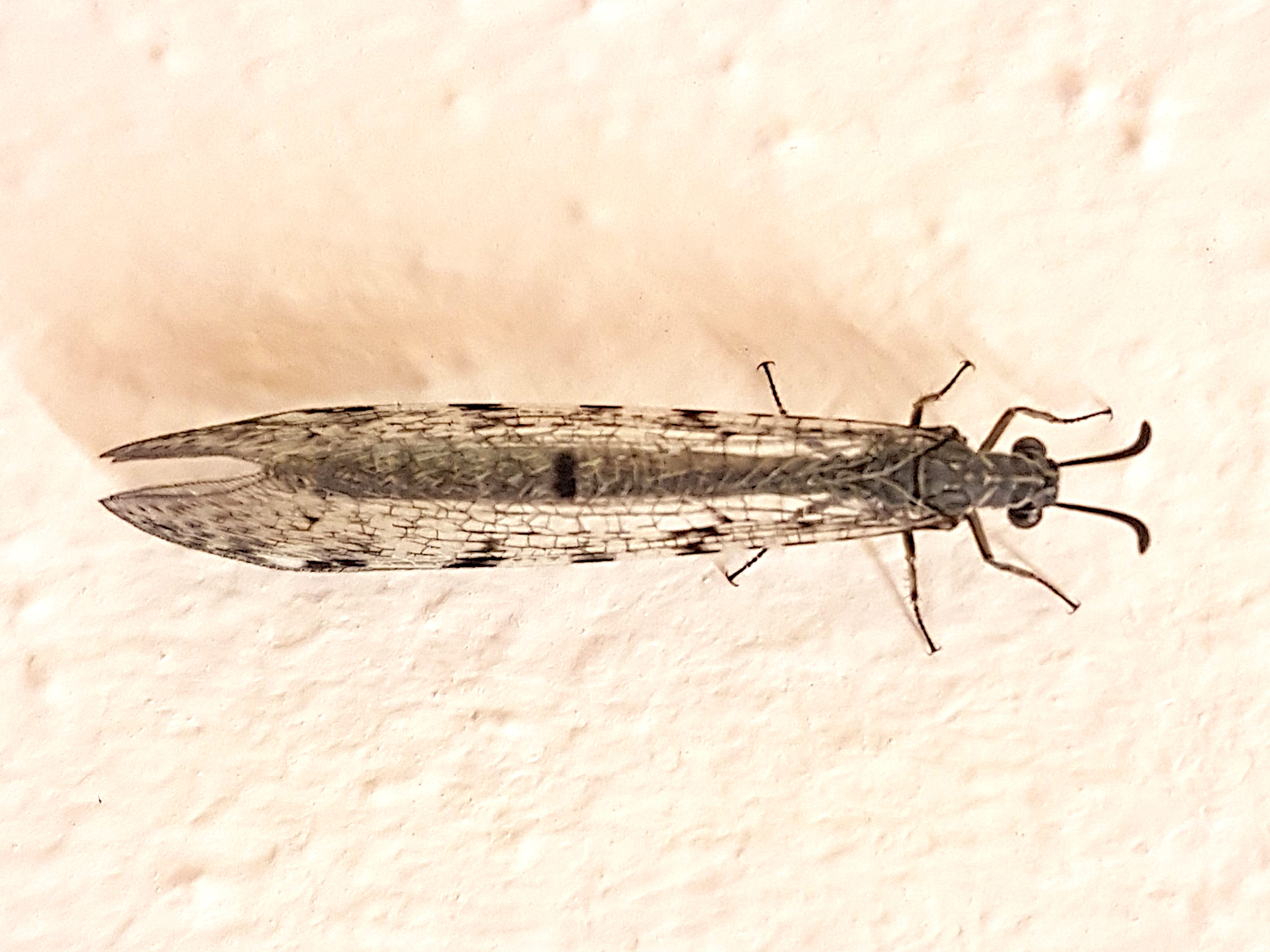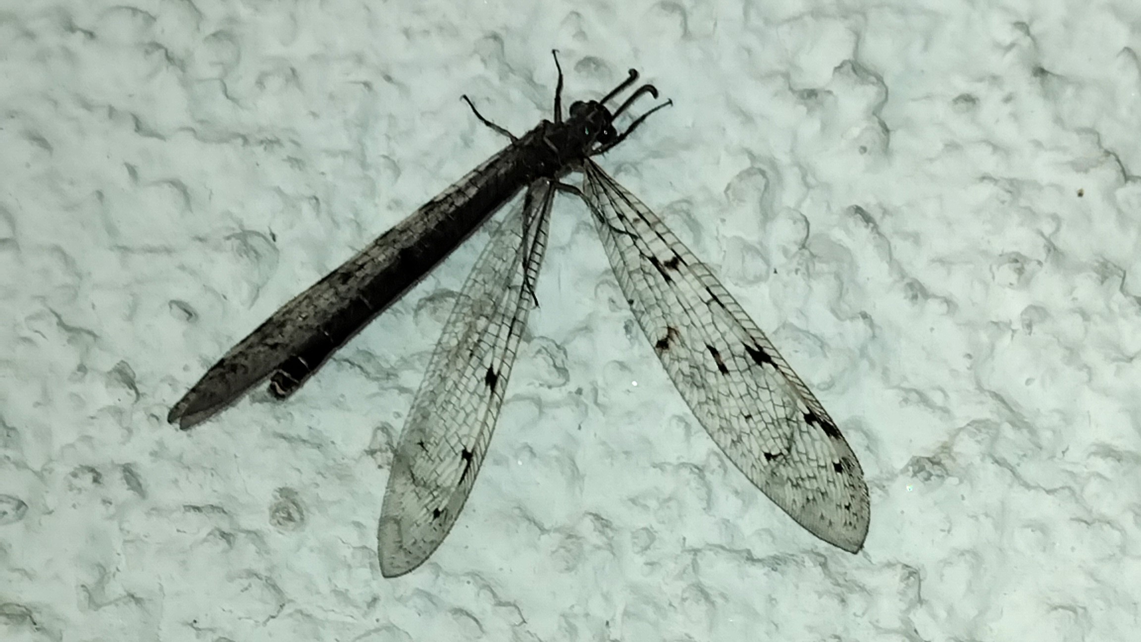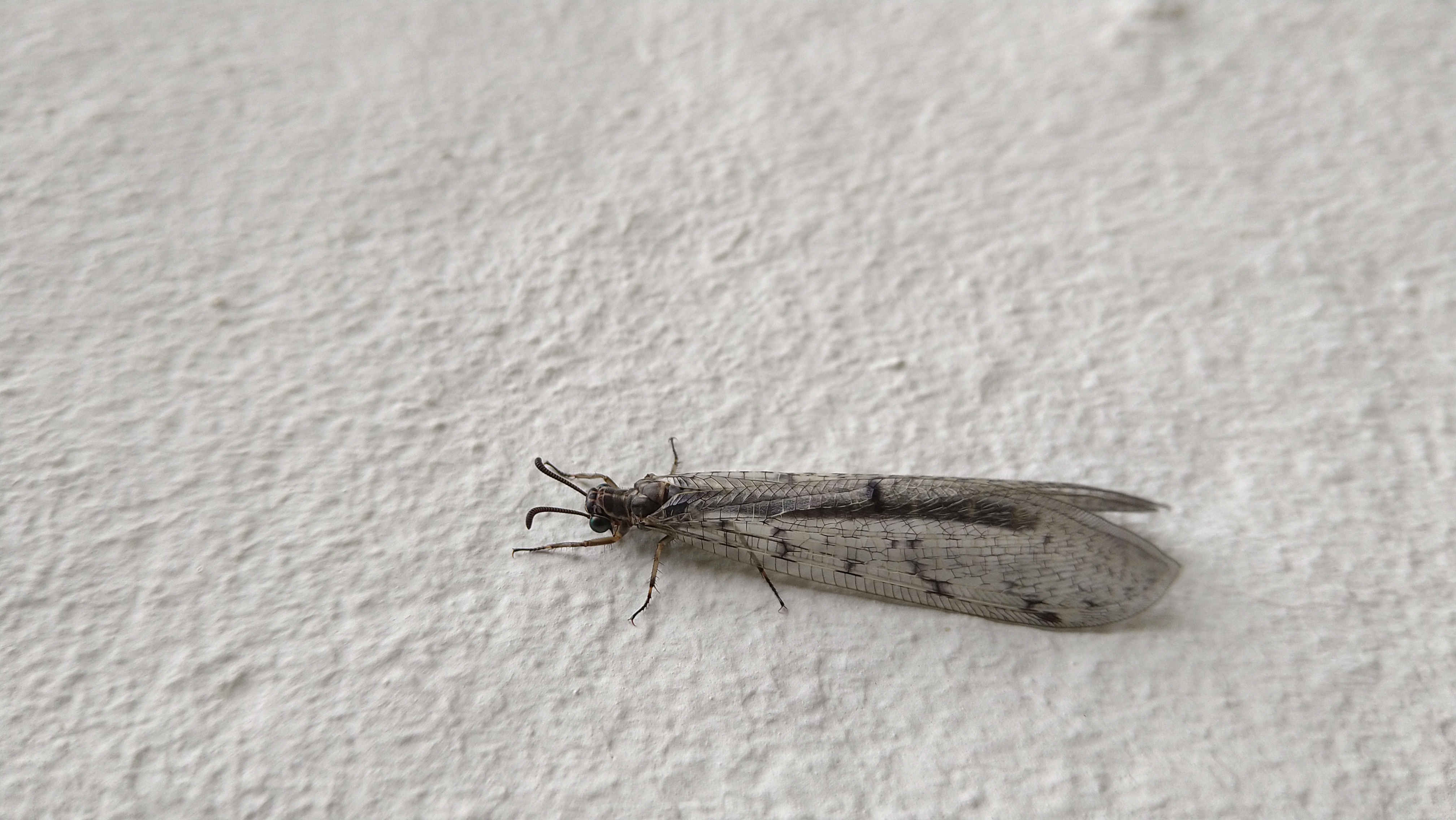 Geflecktflüglige Ameisenjungfer (Euroleon nostras (Geoffroy in Fourcroy, 1785)), Wohngrundstück, 01896 Lichtenberg, Juli 2019.