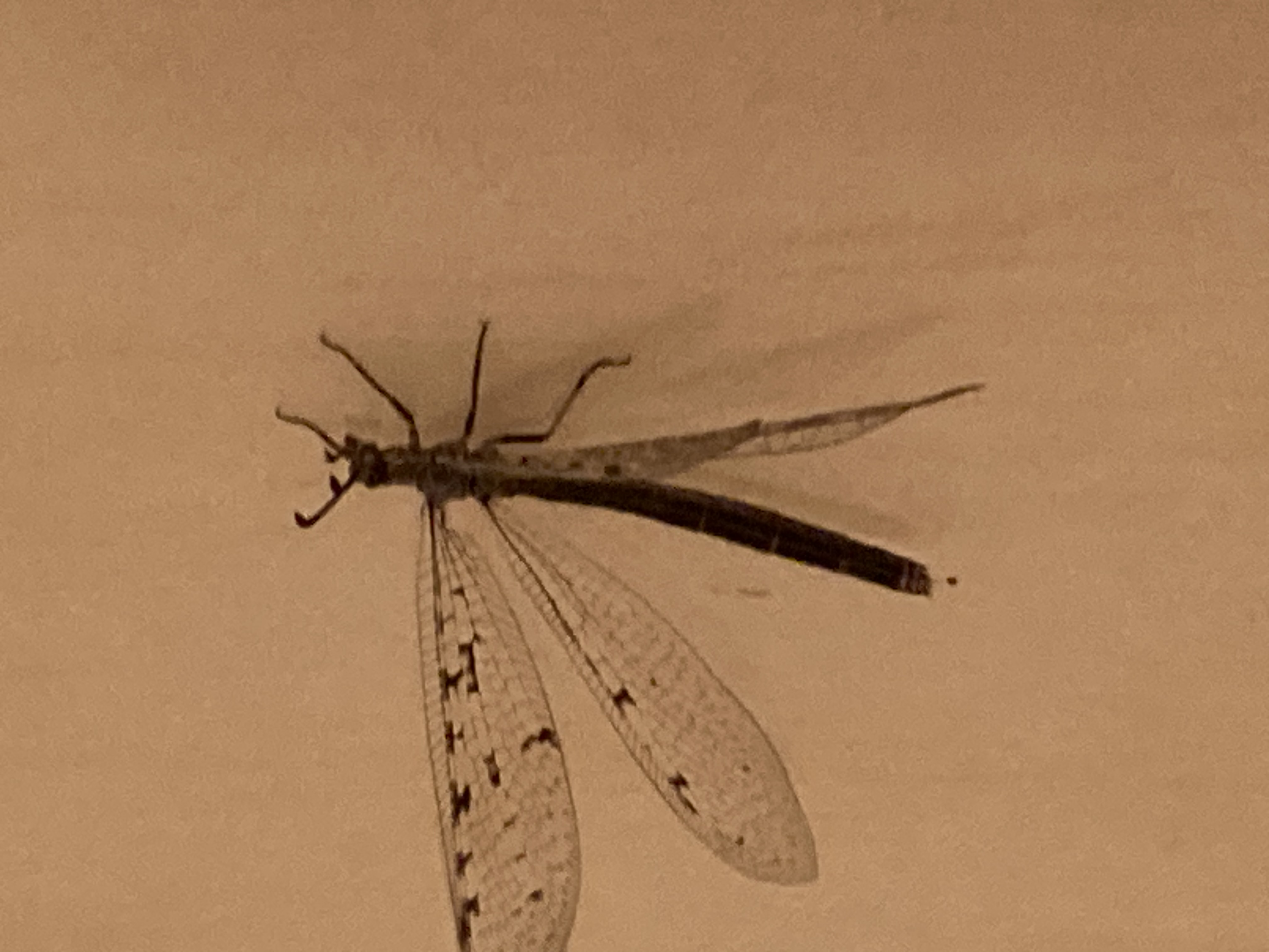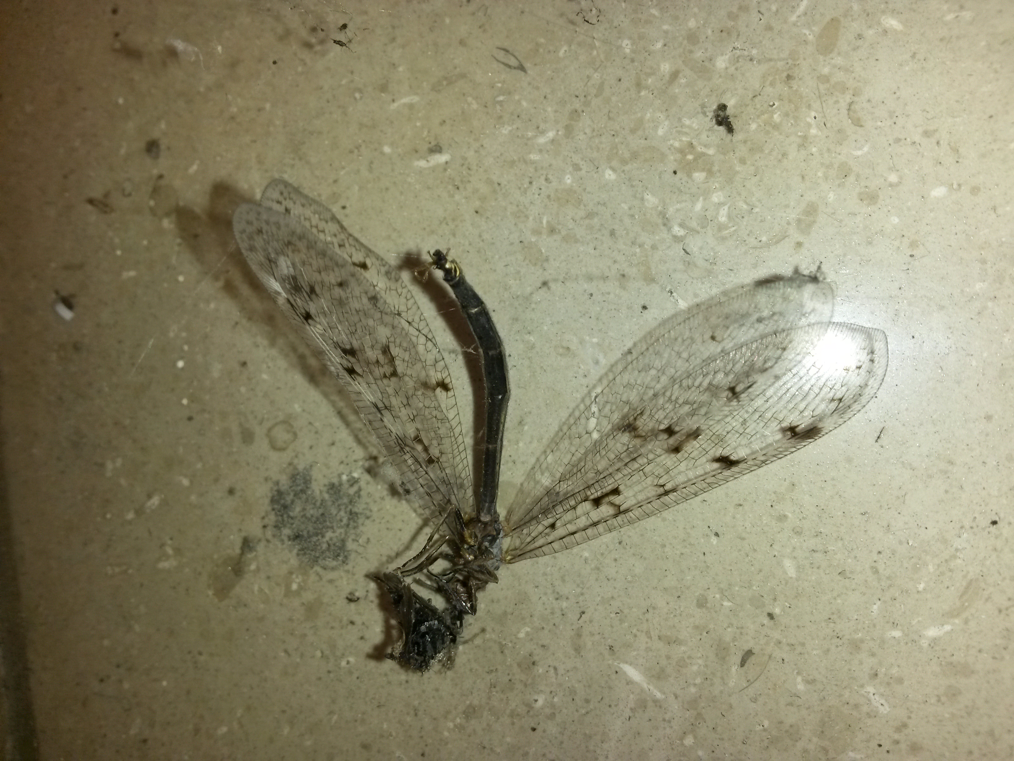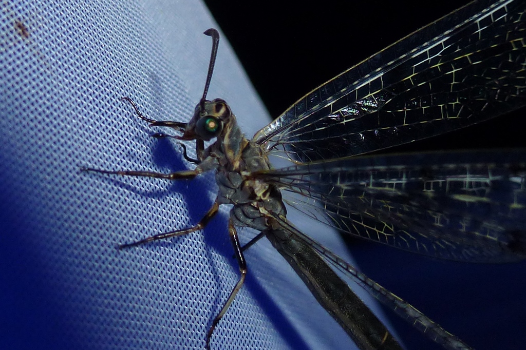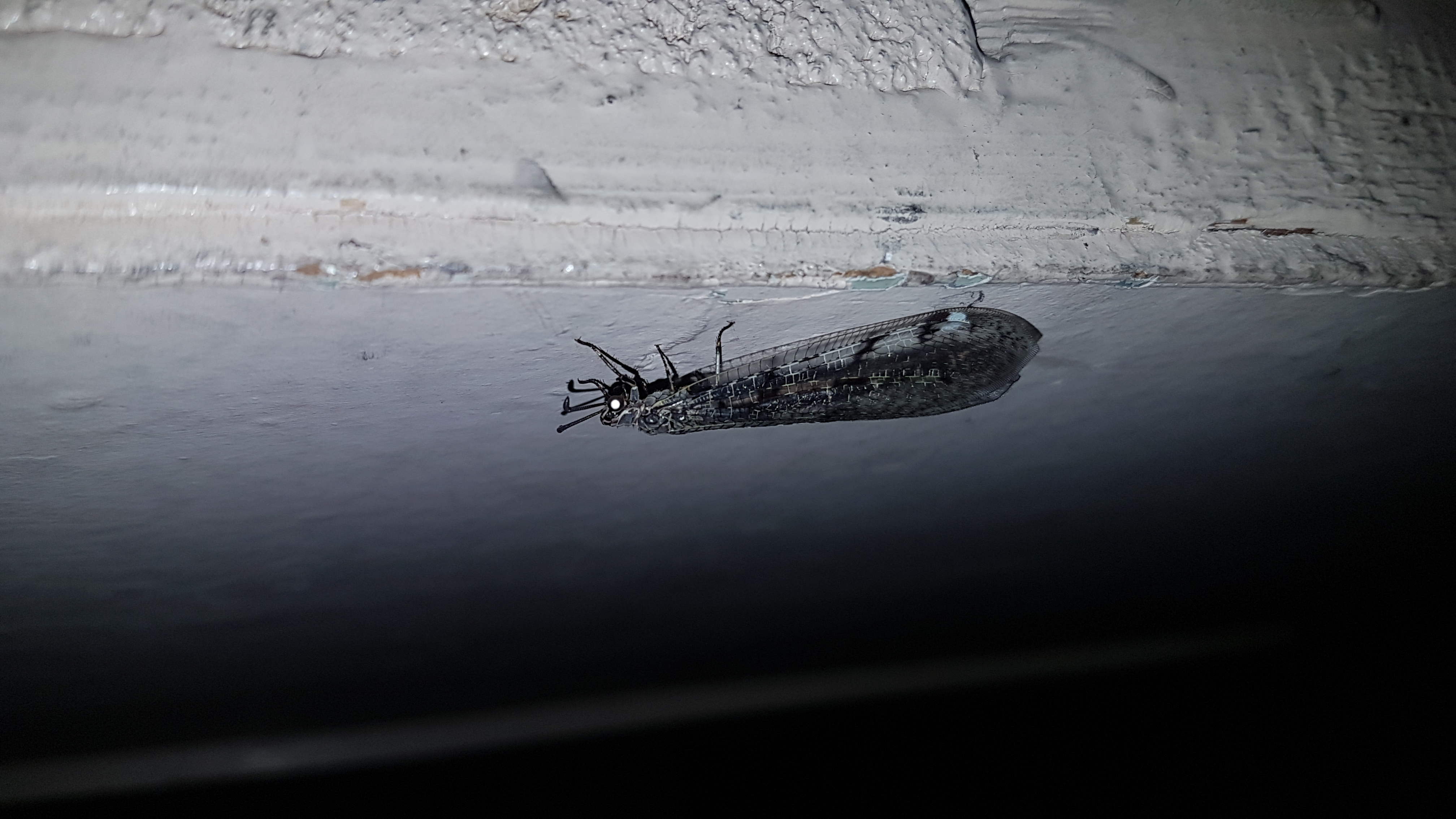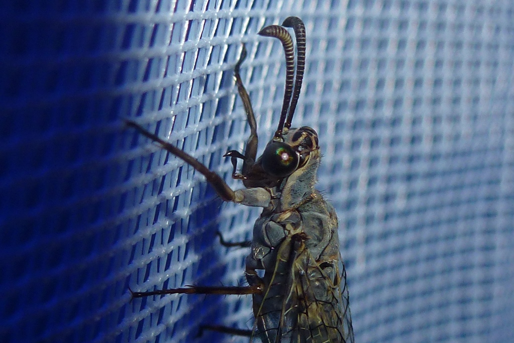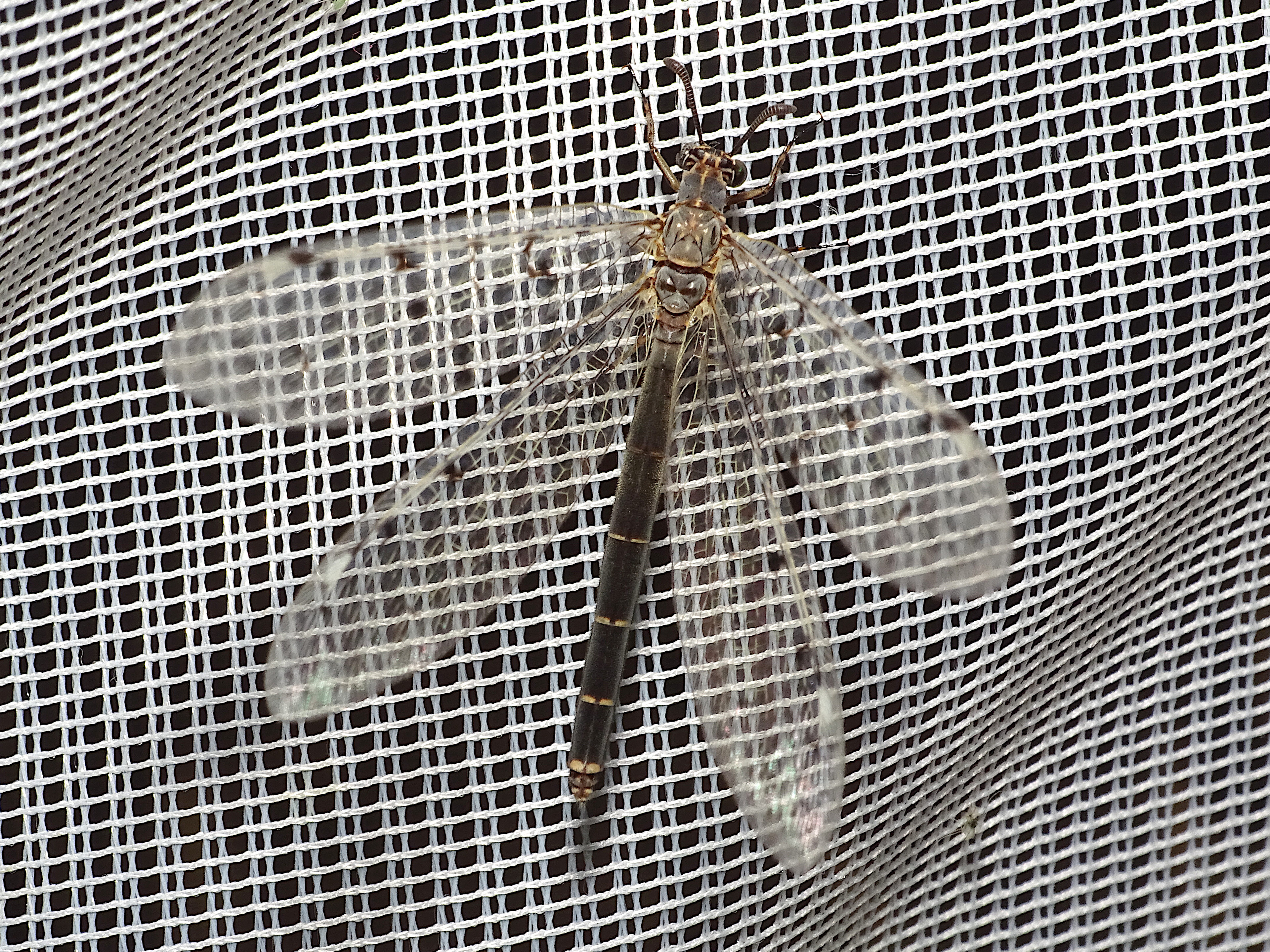 Geflecktflüglige Ameisenjungfer (Euroleon nostras (Geoffroy in Fourcroy, 1785)), Wohngrundstück, 01896 Lichtenberg, Juli 2019.