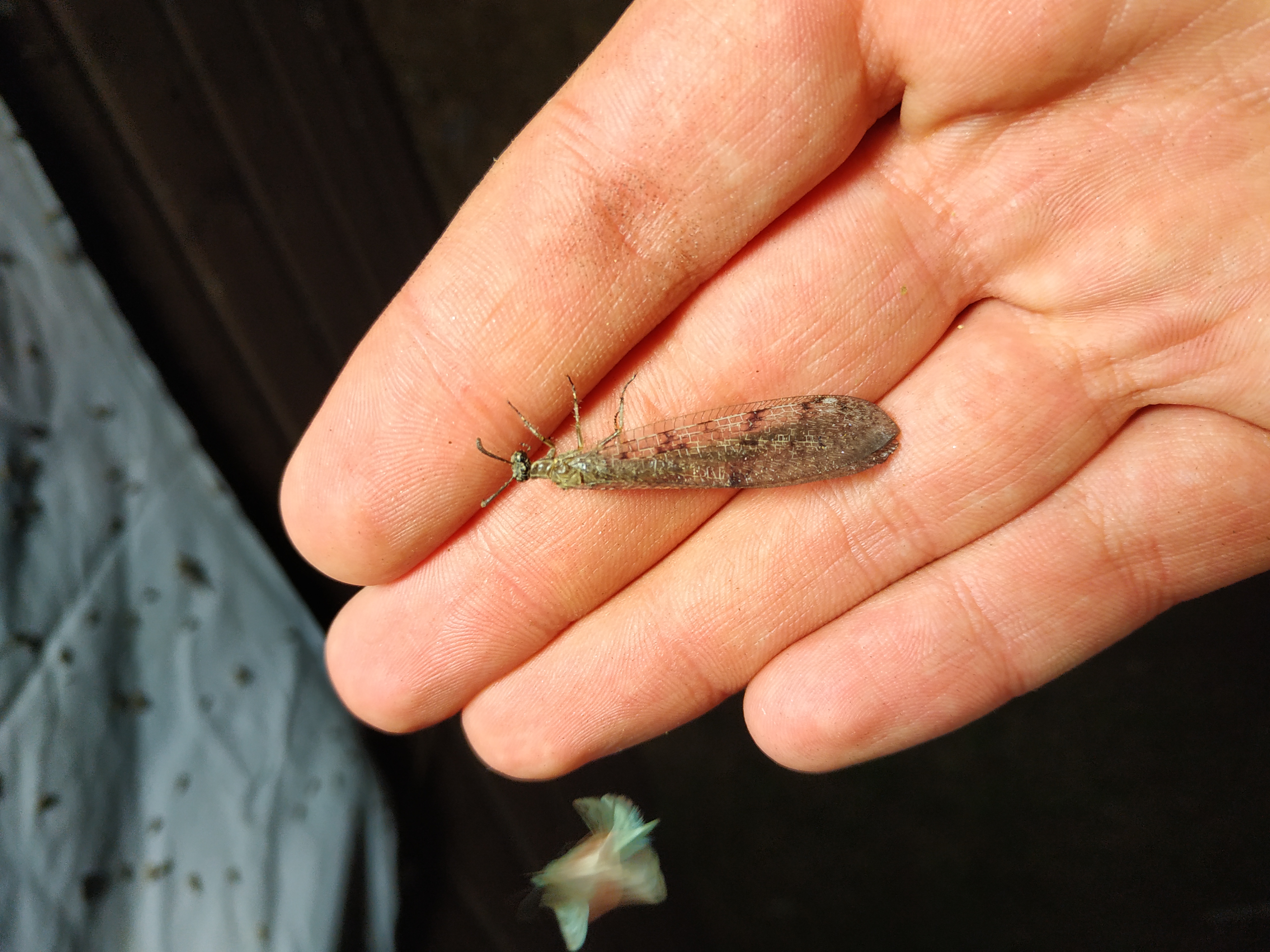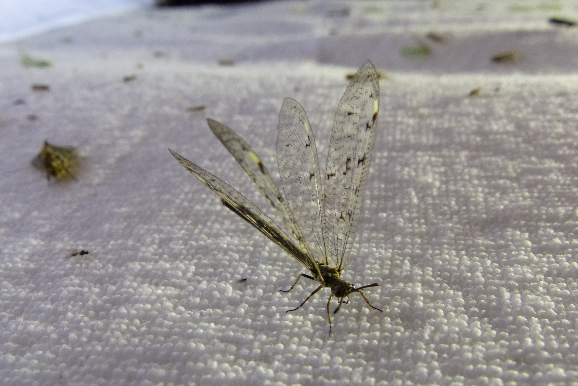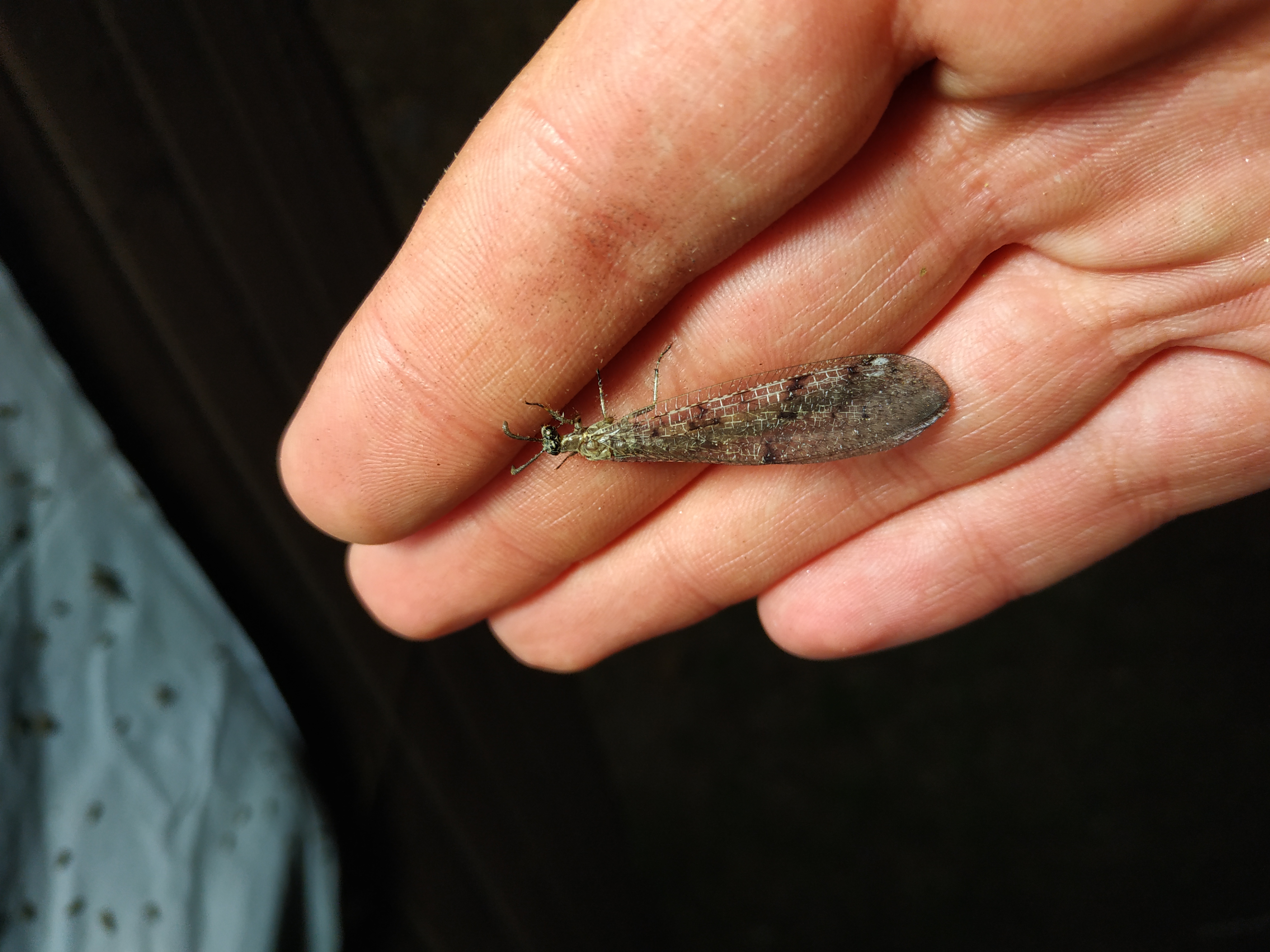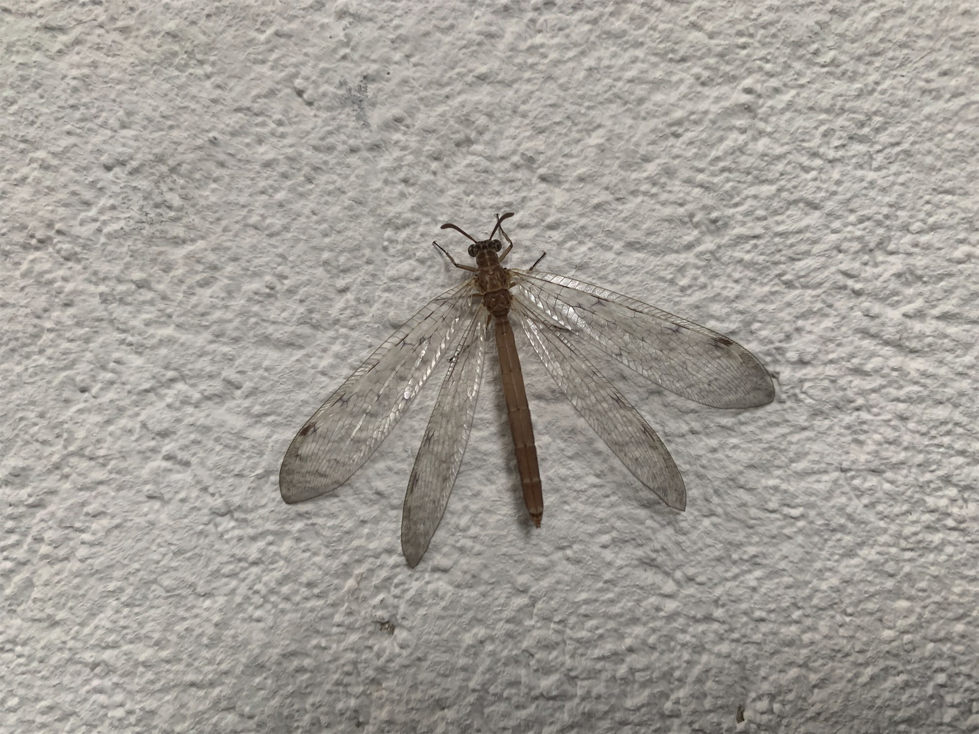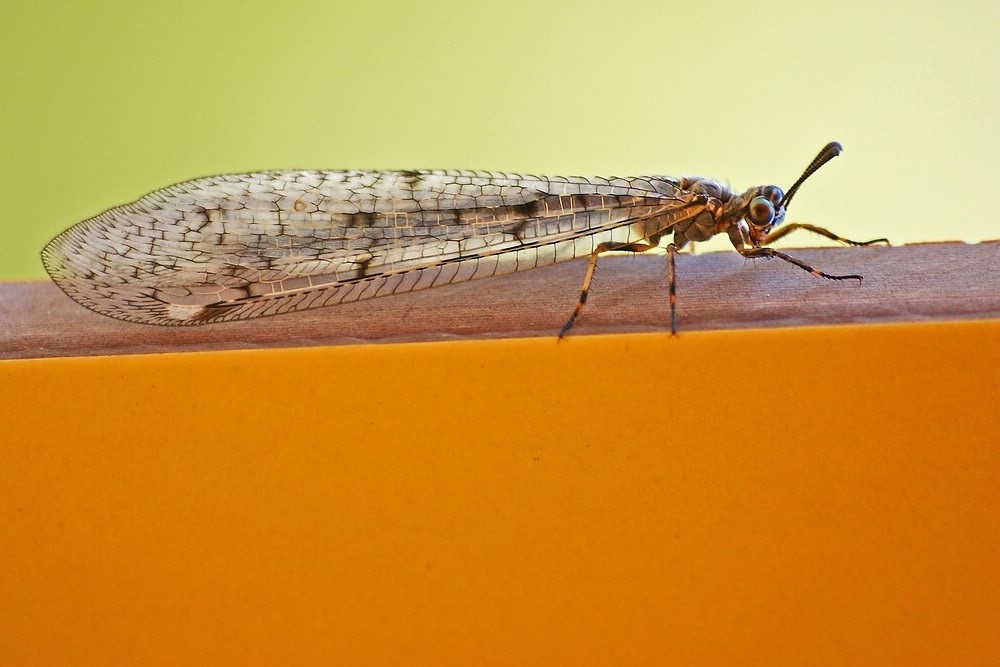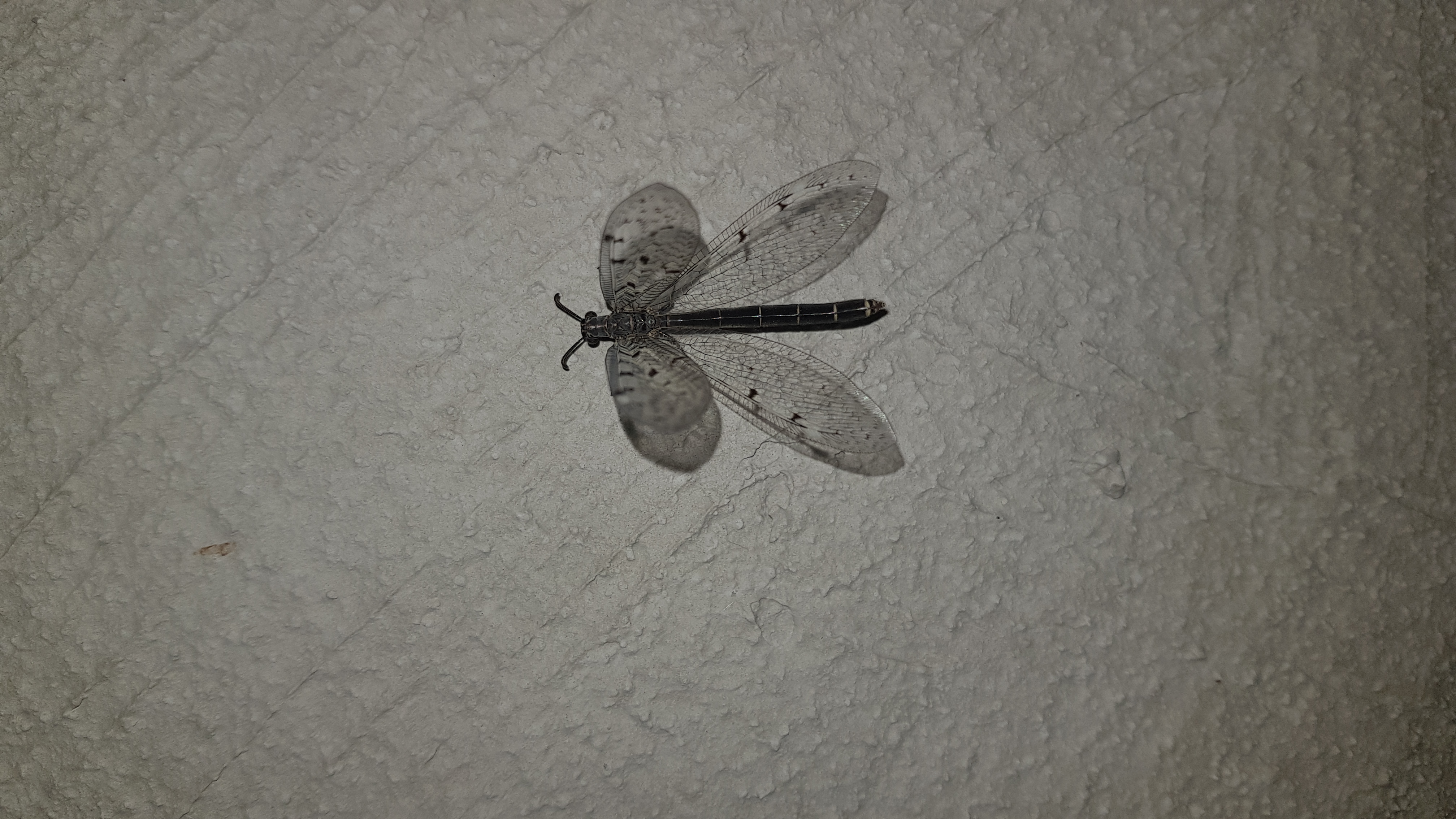 Geflecktflüglige Ameisenjungfer (Euroleon nostras (Geoffroy in Fourcroy, 1785)), Wohngrundstück, 01896 Lichtenberg, Juli 2019.