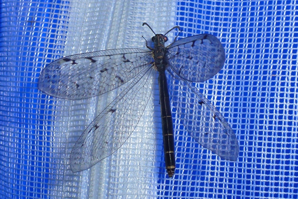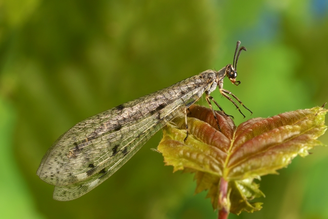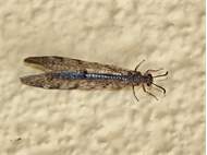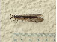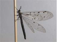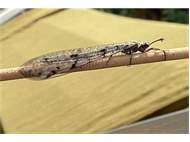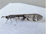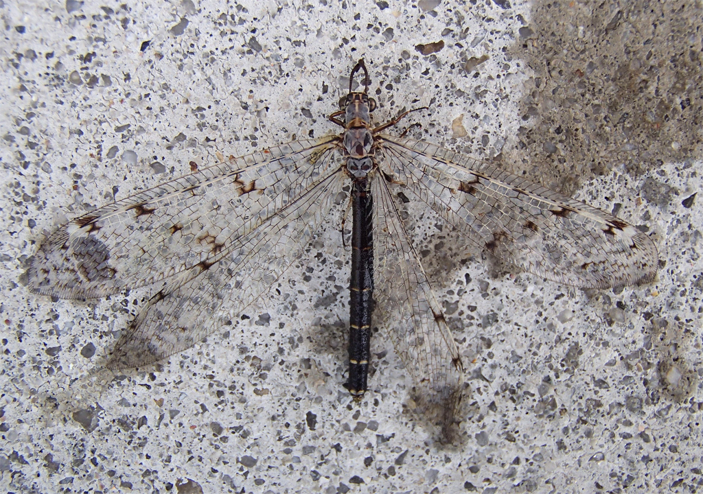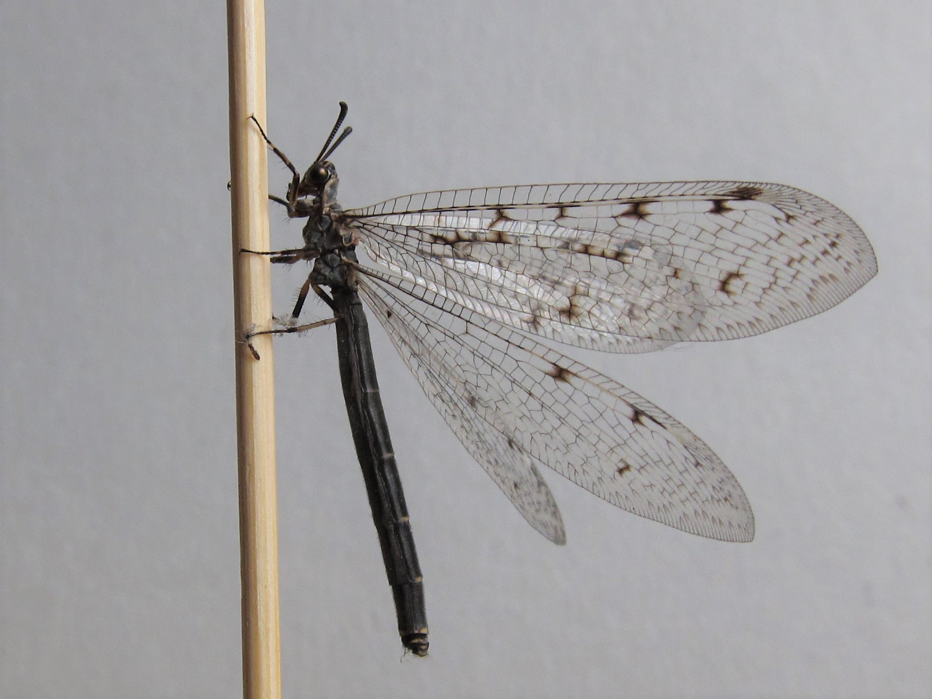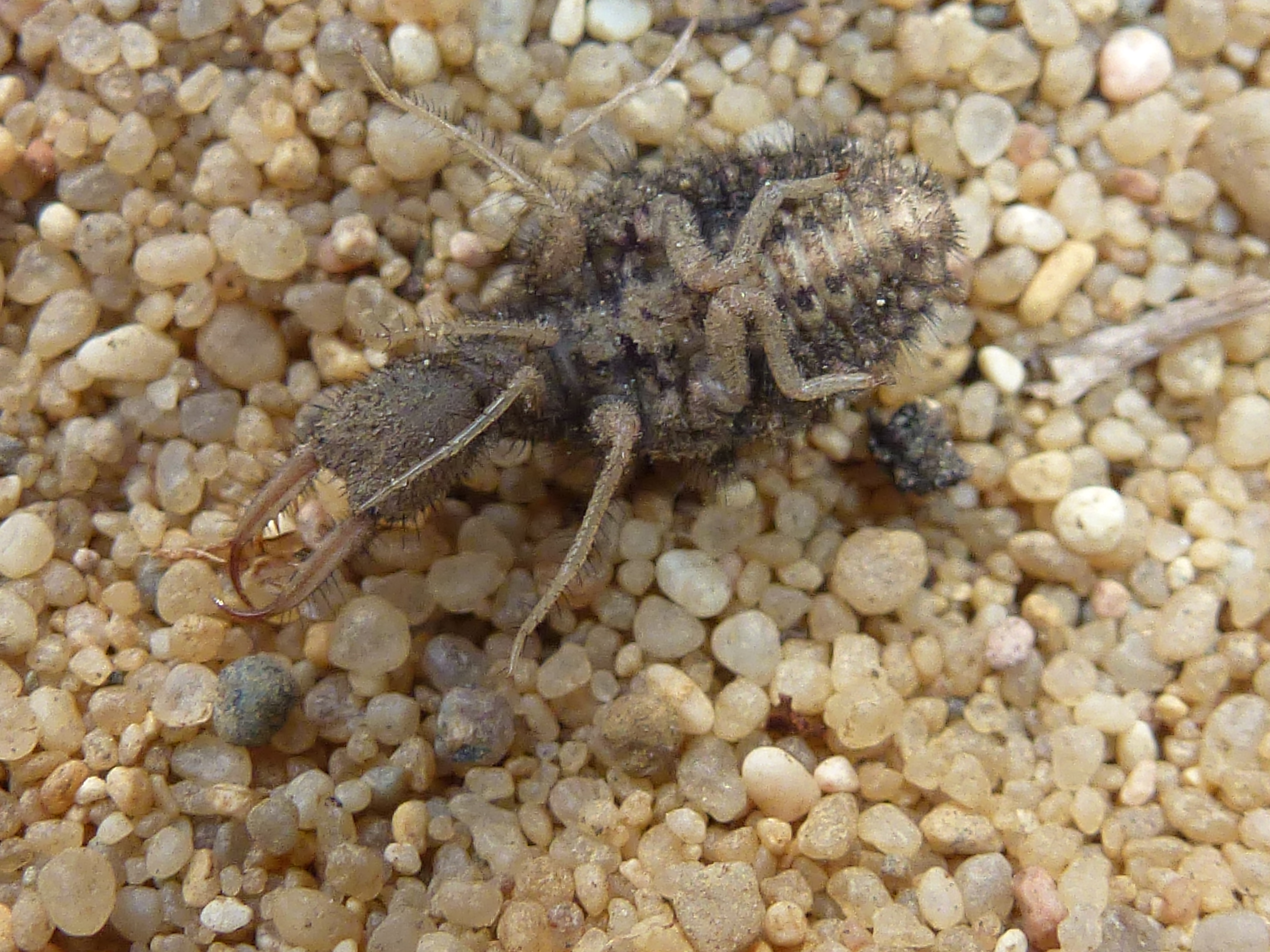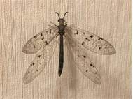 Geflecktflüglige Ameisenjungfer (Euroleon nostras (Geoffroy in Fourcroy, 1785)), Wohngrundstück, 01896 Lichtenberg, Juli 2019. (© Uwe Schäfer)( Bild vergrößern)