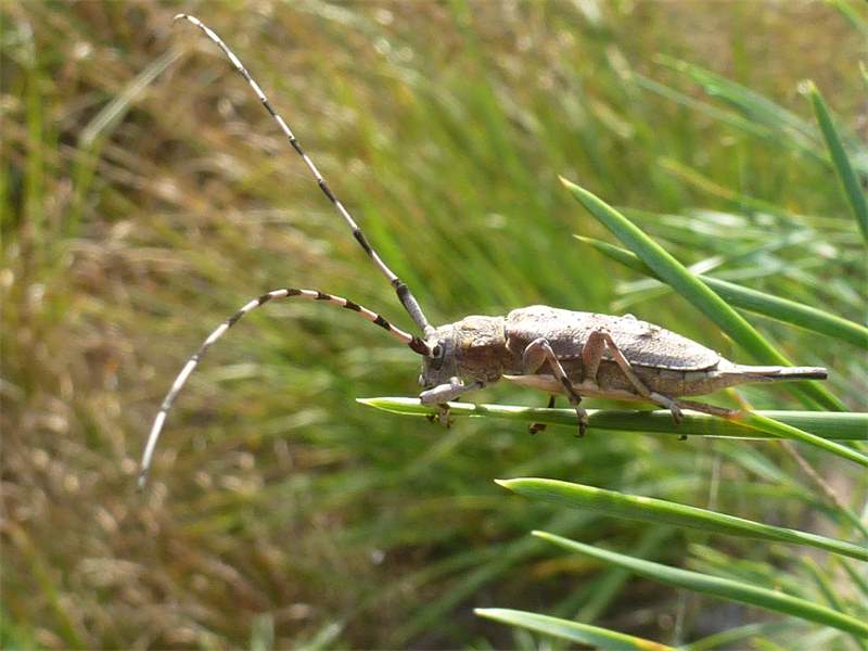 Acanthocinus aedilis nicht länger als die anderen Tarsenglieder zusammen. Die Flügeldecken besitzen im Gegensatz zu