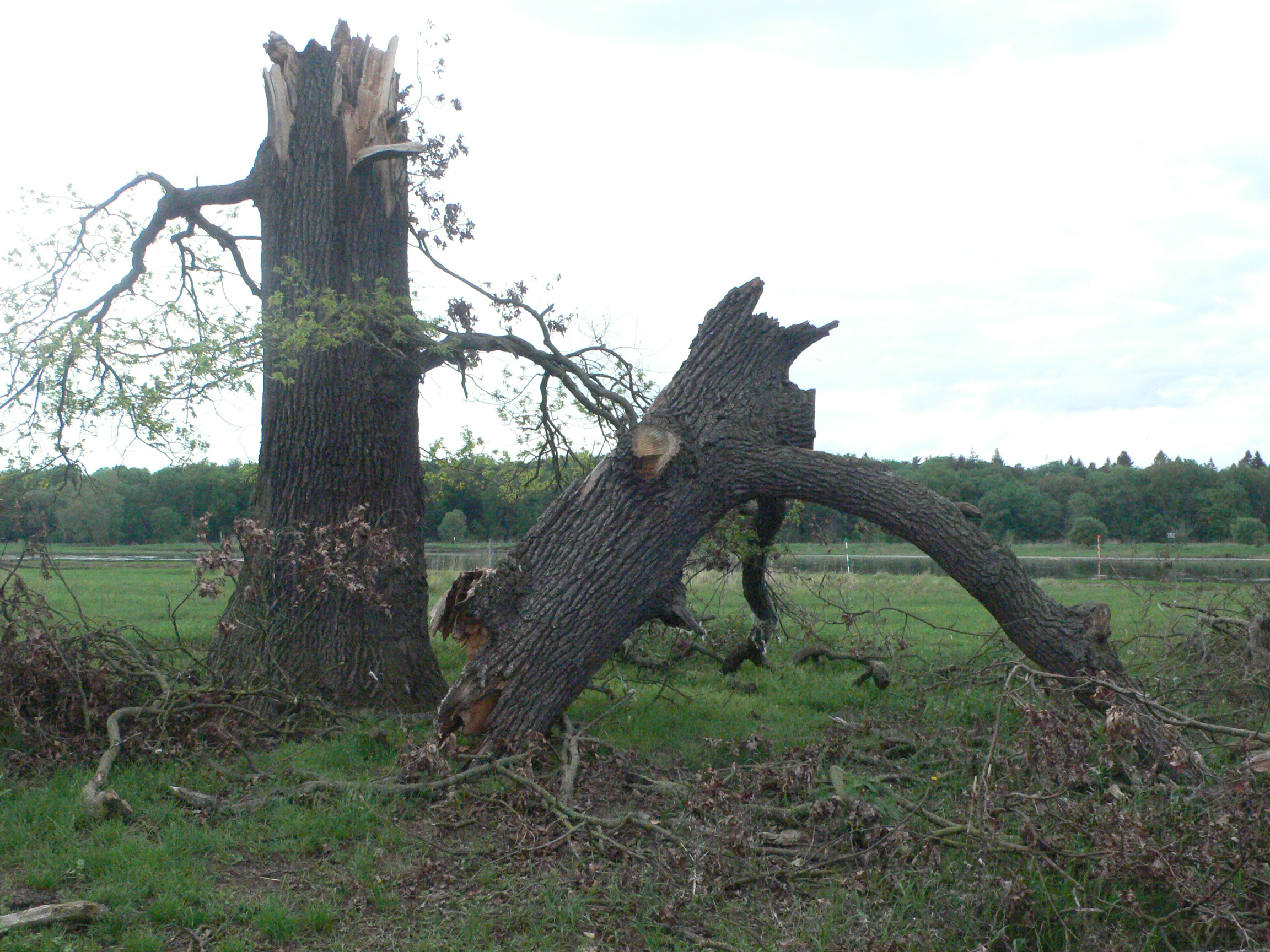 Eine alte Eiche - der typische Lebensraum des Rothaarbocks (Pyrrhidium sanguineum (Linnaeus, 1758)), in deren Holz sich die Larven entwickeln. An der Elbe bei Roßlau (Sachsen-Anhalt) im Mai 2013.