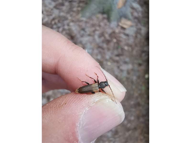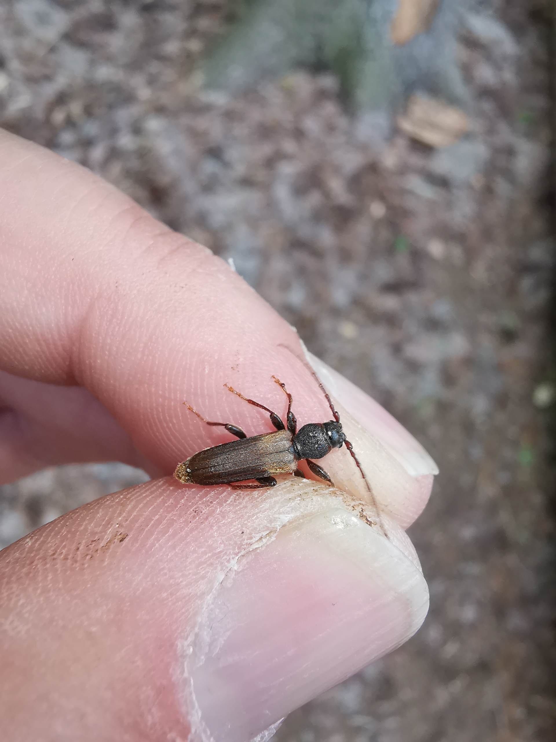Die Oberfläche des Halsschildes von Tetropium fuscum ist komplett matt.
