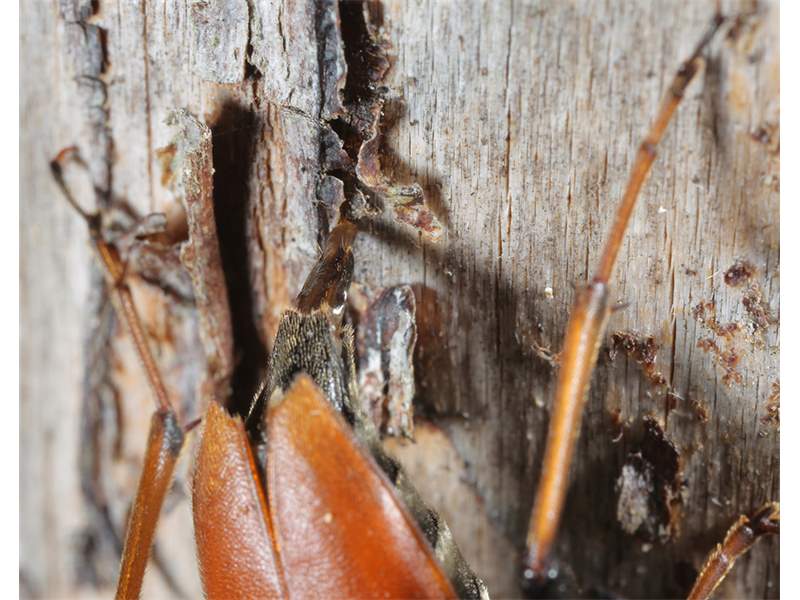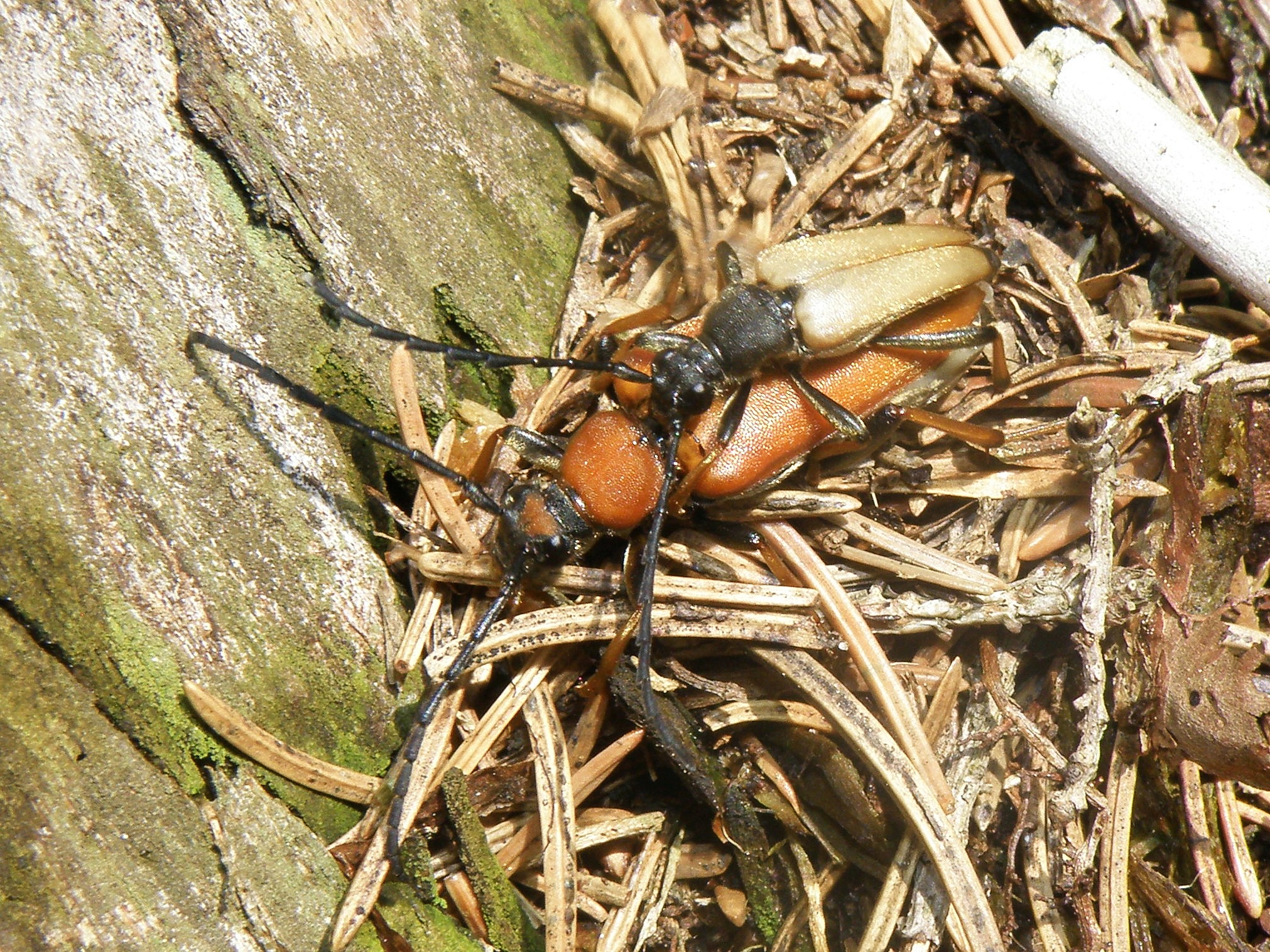 Stictoleptura rubra-Weibchen bei der Eiablage am 14.09.2013 in der Dresdner Heide