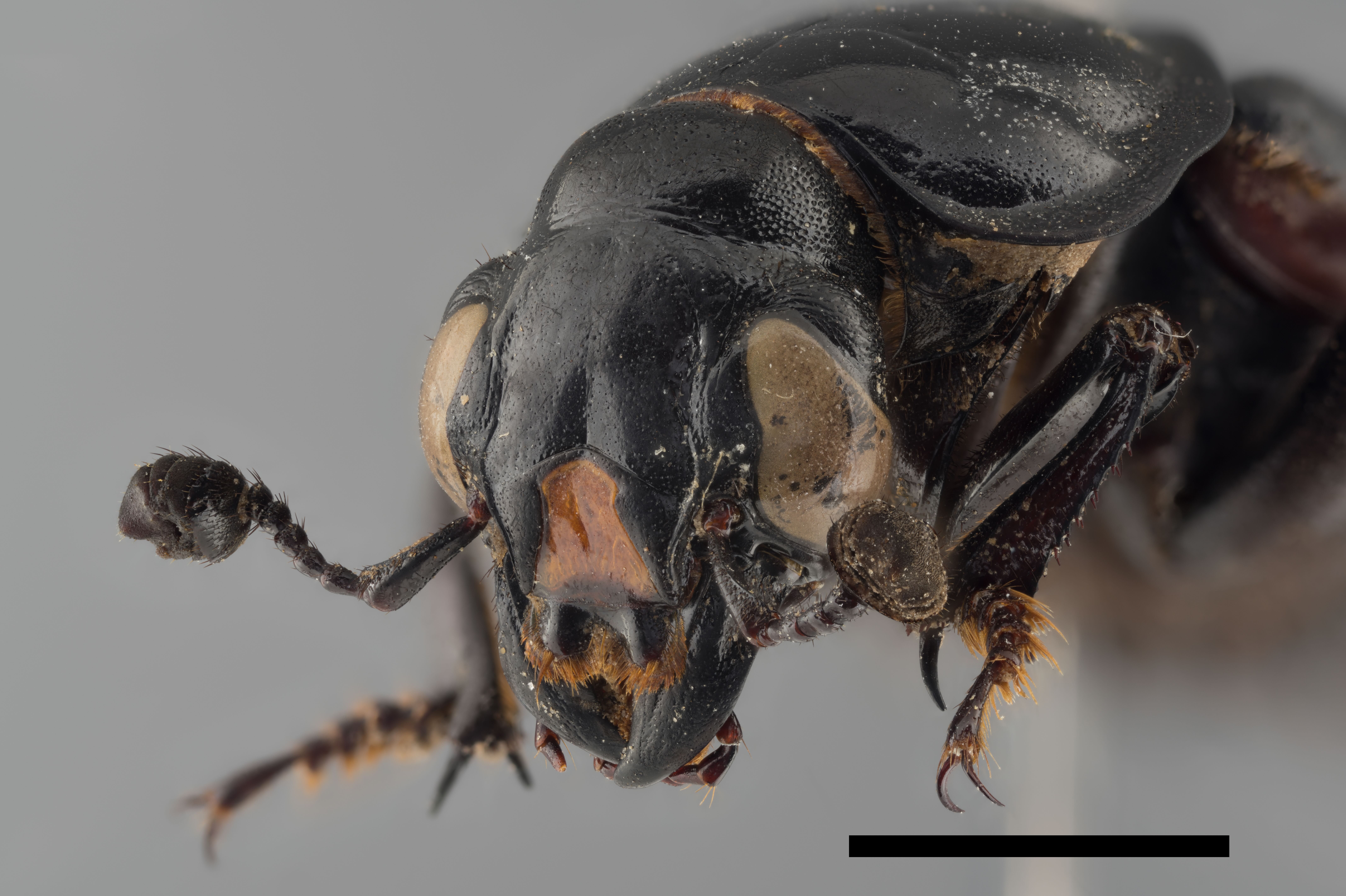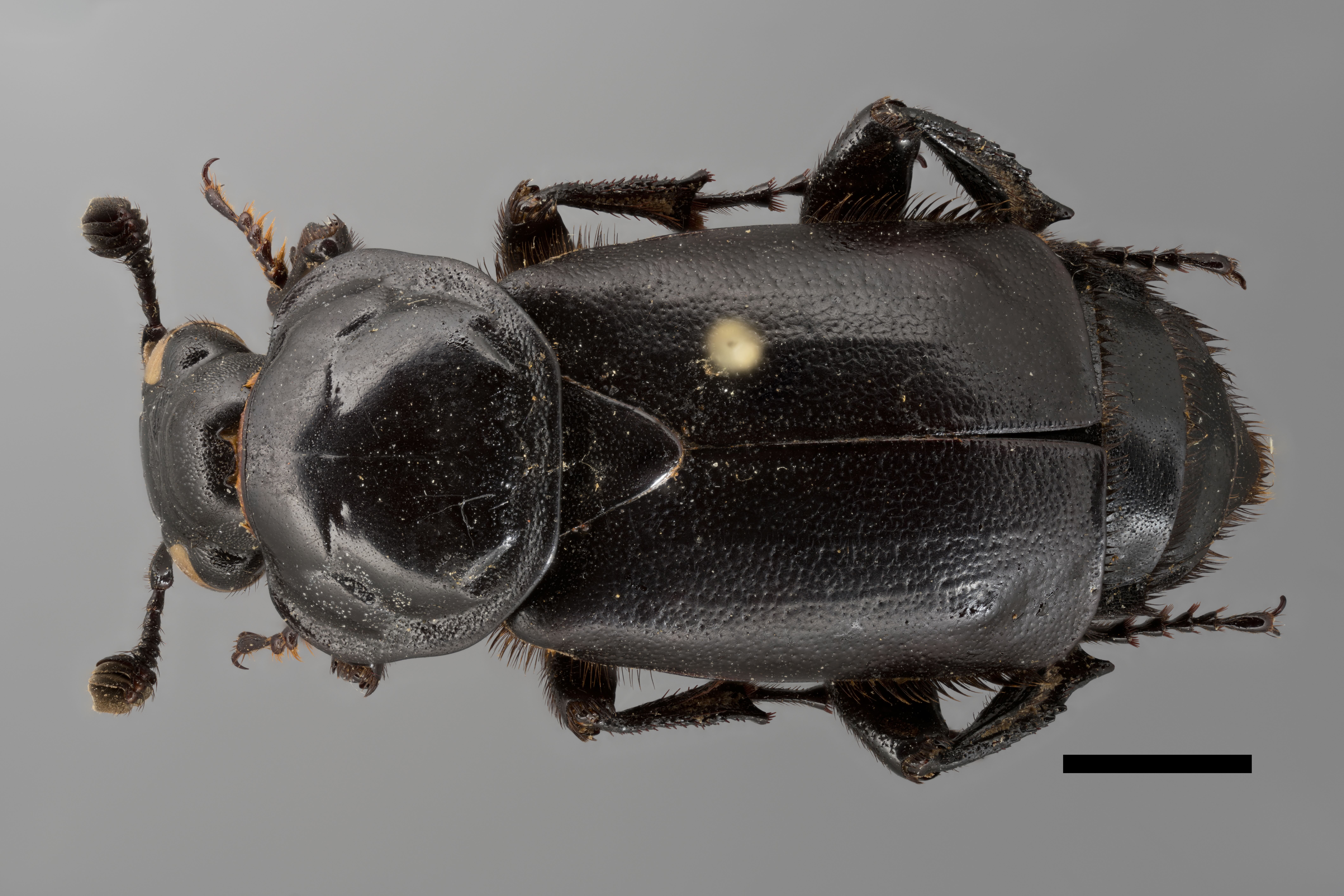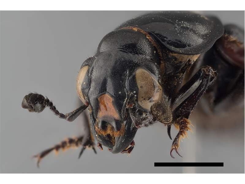 Beachte die schwarze Fühlerkeule und den braunen Kopfschild. Döbeln, Mochau, Unkrautfeld, in Erde, Juni 1945, leg. Gerhard Pause, coll. Senckenberg Museum für Tierkunde Dresden. Maßstab: 5 mm. (© Shota Ishiguro)( Bild vergrößern)