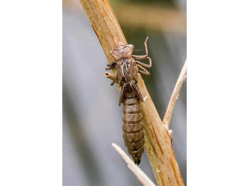 Exuvie des Früher Schilfjägers, bei Döbra, Anfang Mai 2019