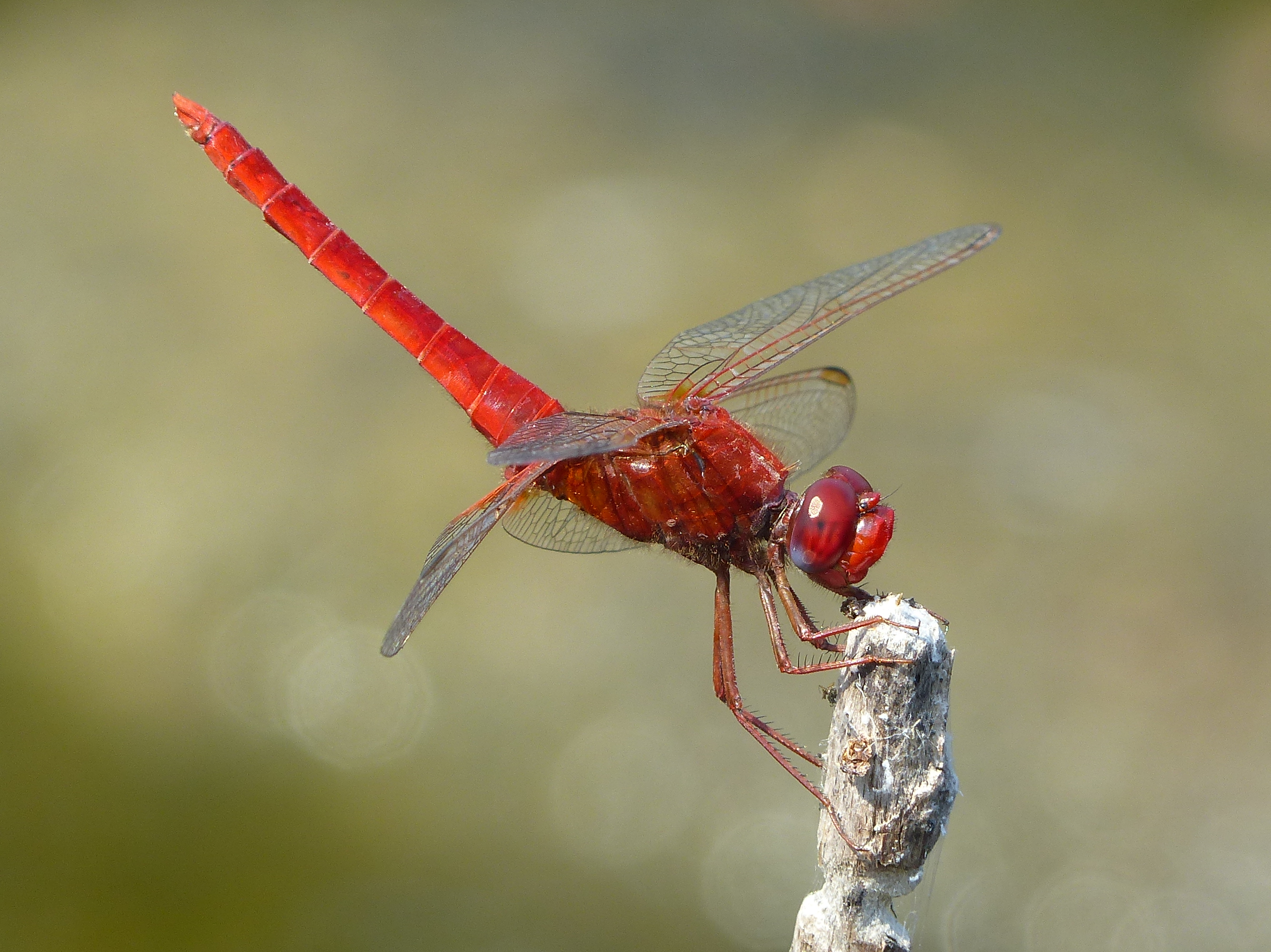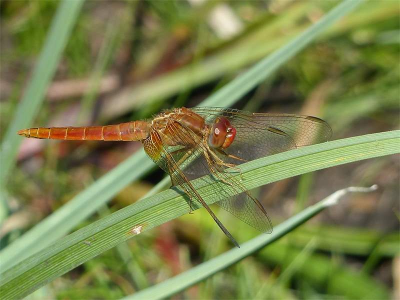 Die Männchen zeigen kaum schwarze Zeichnungselemente; auch die Beine sind orange bis feuerrot. Allerdings variiert die Intensität der Rotfärbung mit der Temperatur, sodass die Tiere nur an besonders warmen Tagen leuchtend rot erscheinen.