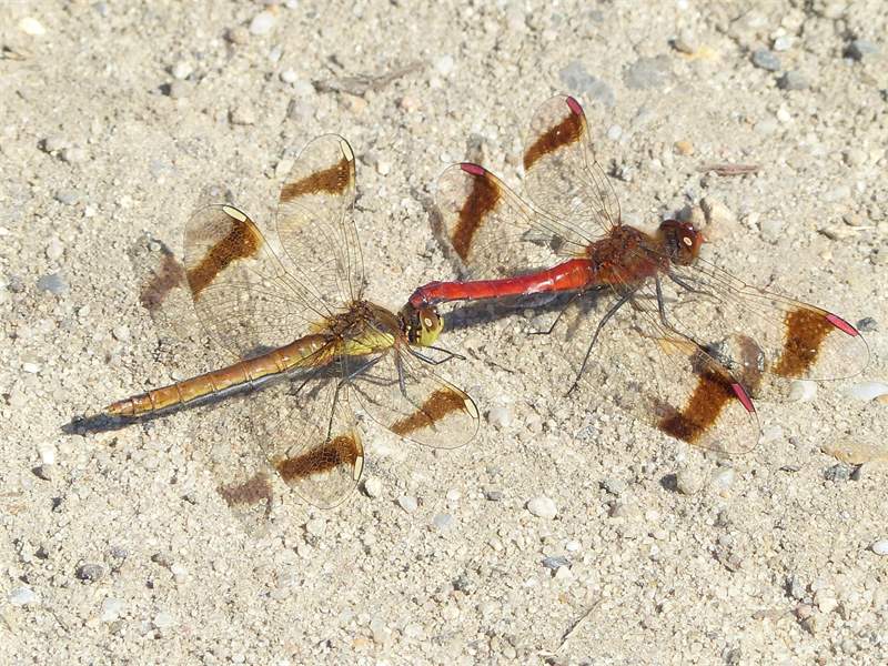 Paarung der Gebänderten Heidelibelle. Schleife, Anfang September 2021