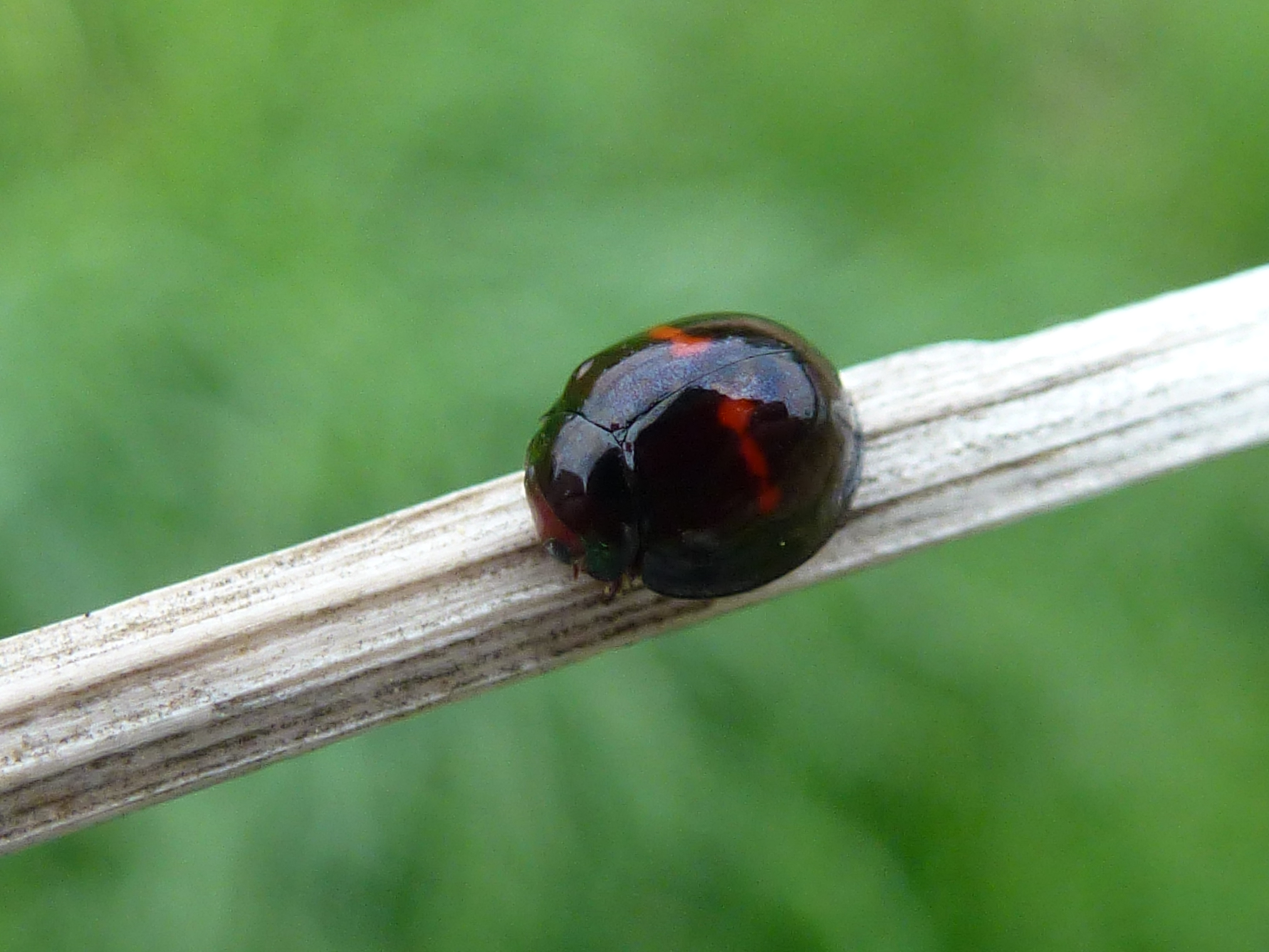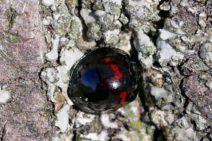Ähnliche Arten: Rundfleckiger Schildlaus-Marienkäfer (Chilocorus renipustulatus) und Vierfleckiger Schildlaus-Marienkäfer (Exochomus quadripustulatus) von gleicher Gestalt aber mit abweichendem roten Zeichnungsmuster.