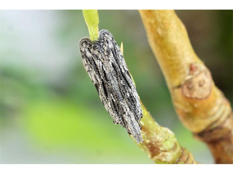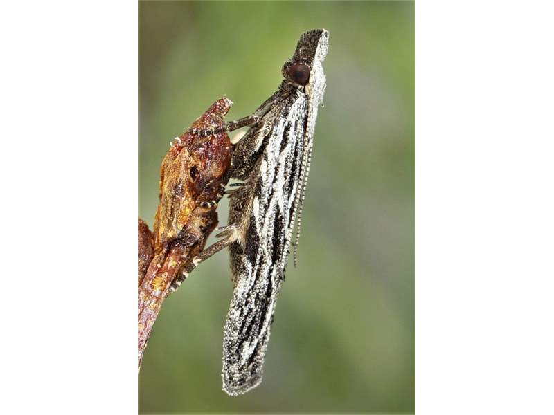 Zuchtfalter, erhalten aus Ende April 2020 in den jungen Triebspitzen von Feldahorn eingebohrter Raupe und nachfolgend erfolgreicher Weiterzucht. Bautzen, 19.05.2020 e. l (© Friedmar Graf)( Bild vergrößern)