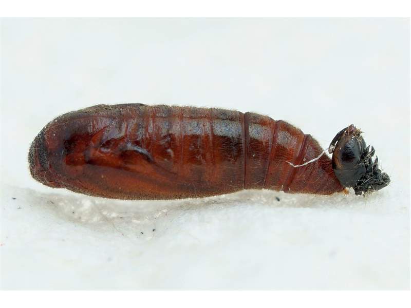 Puppe erhalten aus Ende April 2020 zwischen den jungen Herzblättern von Feldahorn gefundener Raupe. (© Friedmar Graf)( Bild vergrößern)