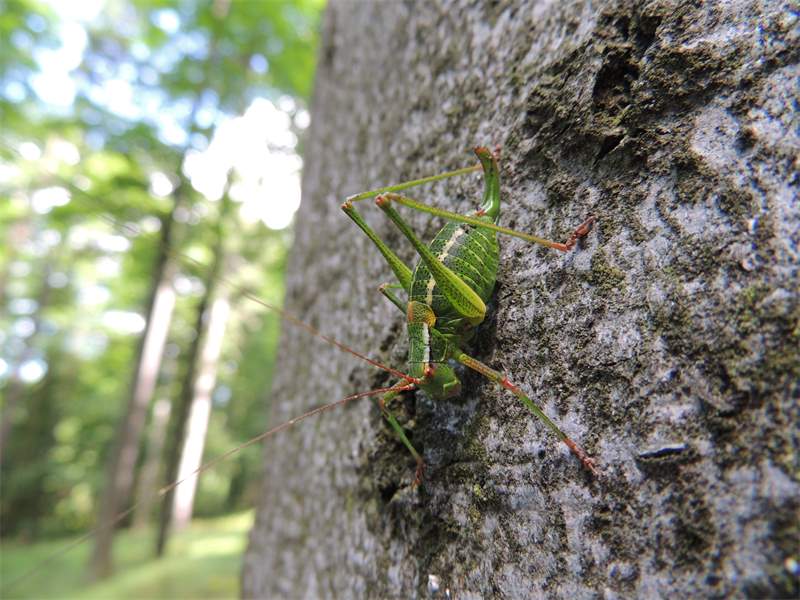 Männchen der Nadelholz-Säbelschrecke. Leinawald bei Nobitz, 19.07.2020.