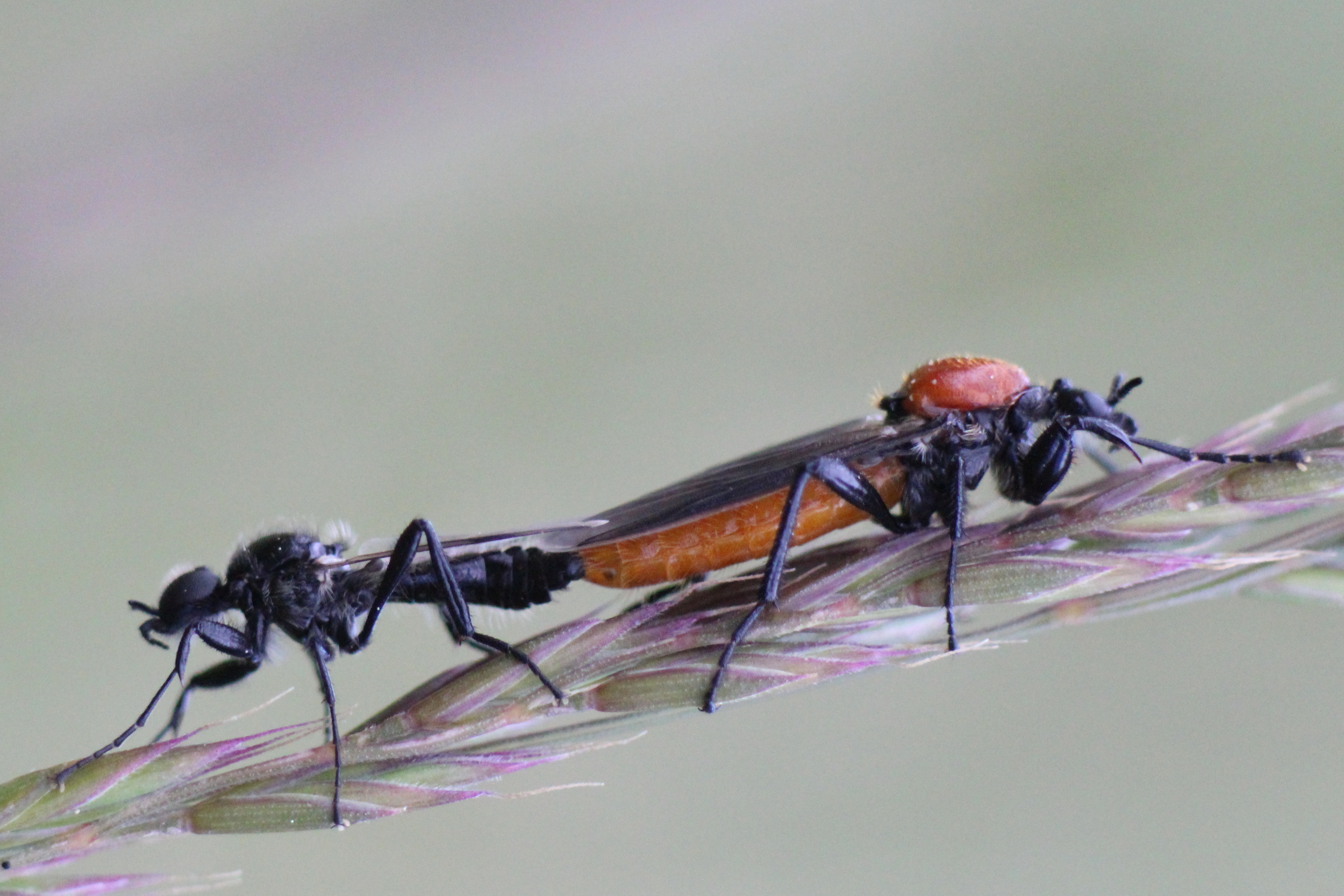 Hinterleib: Männchen schwarz, Weibchen orangerot.