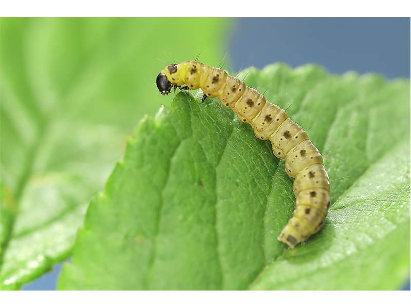 Die Larven leben an Schlehe (Prunus spinosa), Pflaume (Prunus domestica), Vogelkirsche (Prunus avium), Gewöhnliche Traubenkirsche (Prunus padus), Weißdorn (Crataegus monogyna) sowie gelegentlich an Sorbus und Malus (Hannemann 1977).