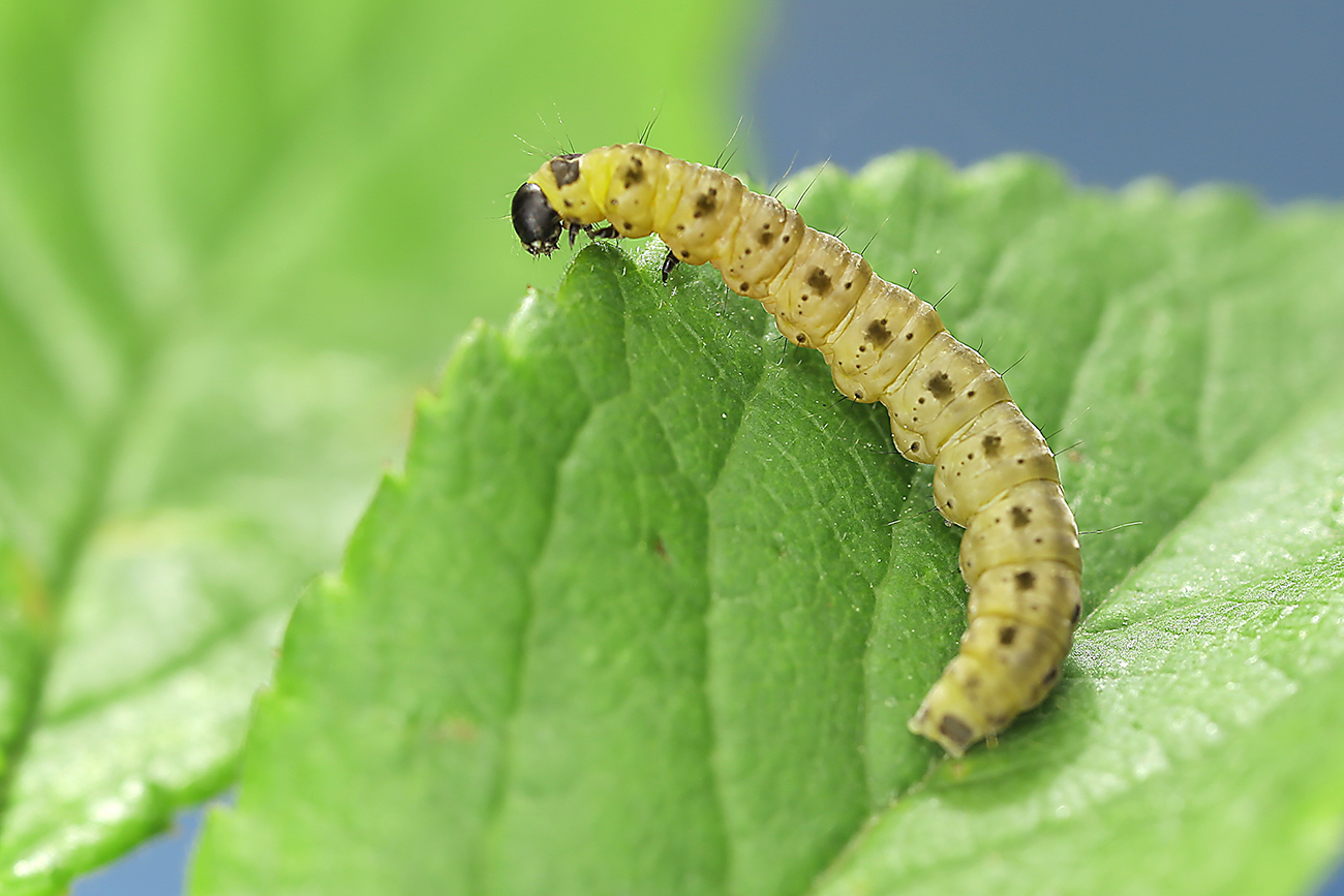 Yponomeuta padella-Raupe, die am 8. Juni 2014 in Radebeul an Schlehe gefunden wurde.
