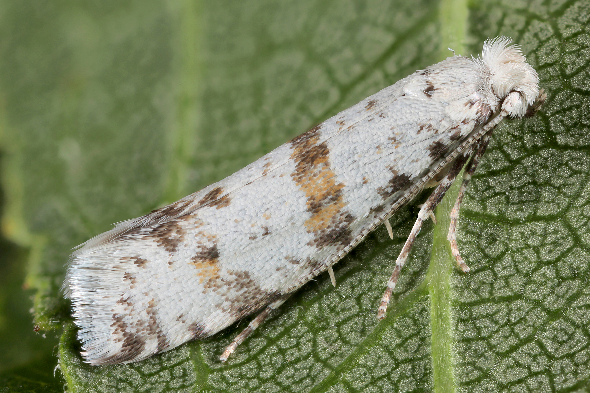 Hinterflügel bräunlich-grau. Beine bräunlich-grau, weiß in der Nähe der Intersegmentalverbindung. Kopf und Stirn weiß. Antennen braungrau; Basalglied weißlich. Labialpalpen braungrau. Thorax weiß-graubraun gescheckt.