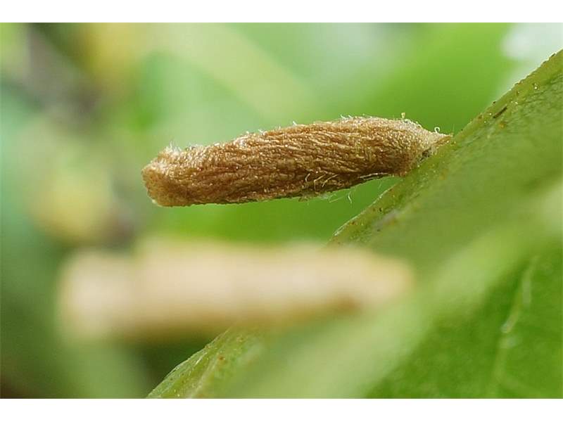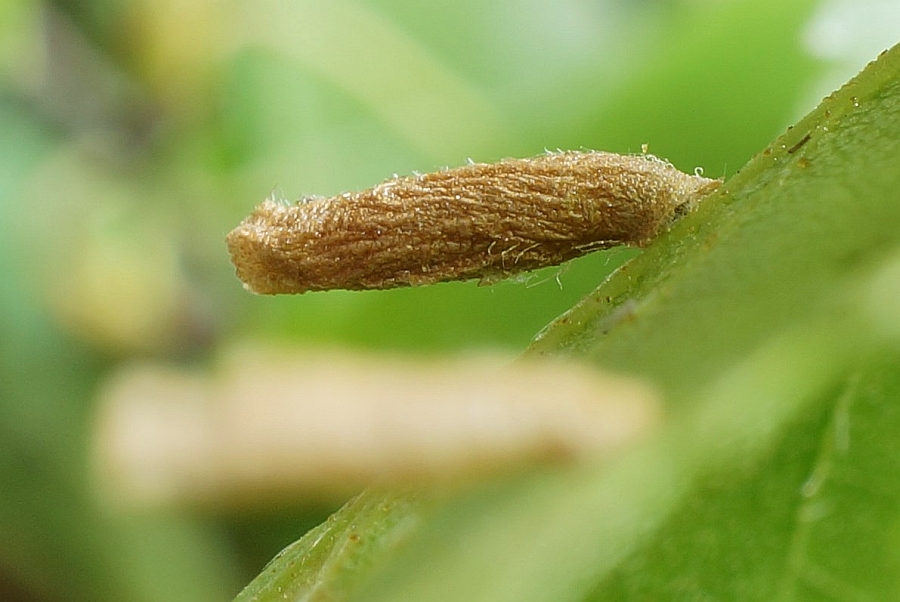 Der Larvensack ist gelblichgrau bis grau, am Ende zweiklappig (Hering 1957: 849).