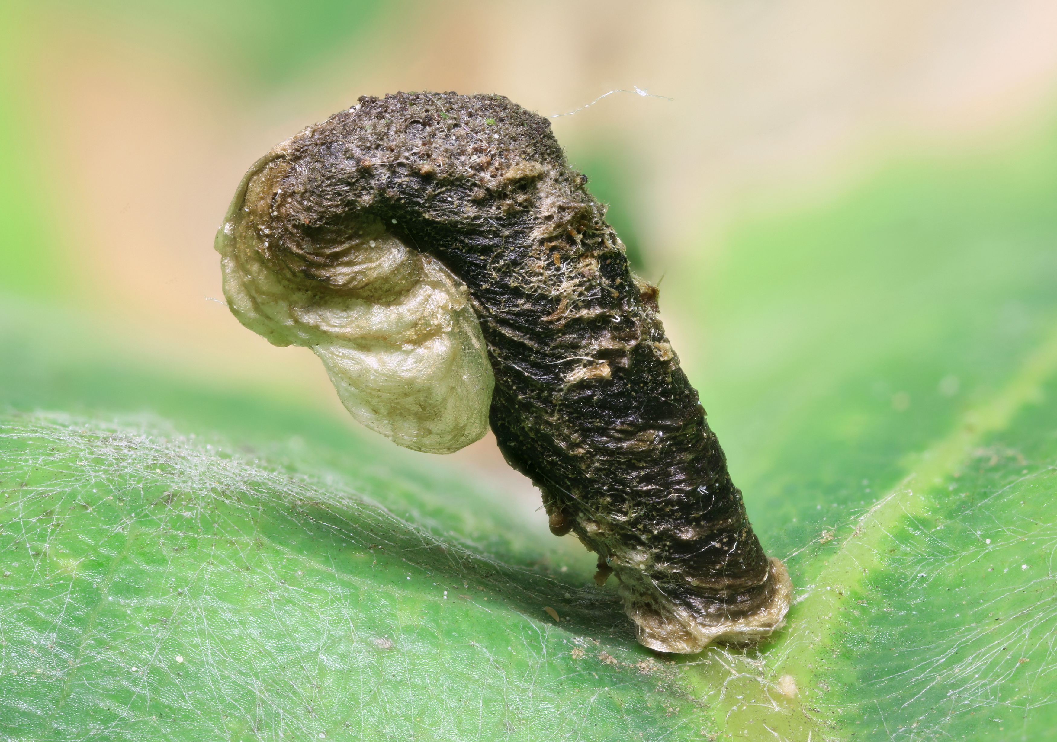 Die Larve lebt im Mai bis Juni in einem Pistolensack an Eiche.
