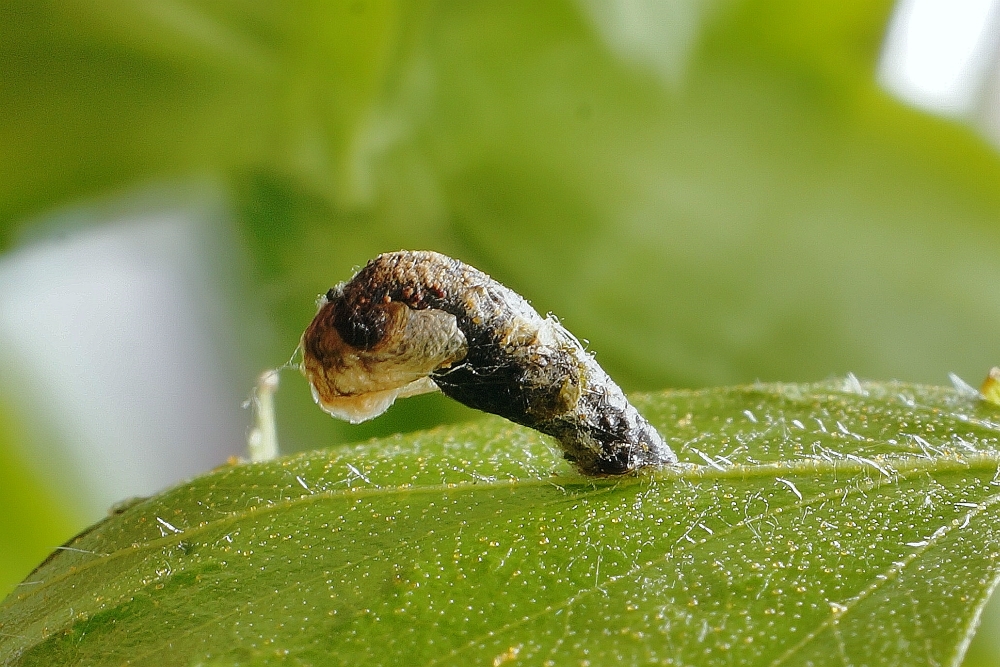 Die Larven fertigen im zeitigen Frühjahr einen Sack und sind dann am frischen Grün der Birken zu finden. Im Freiland erscheinen die Falter im Juni. (F. Graf)