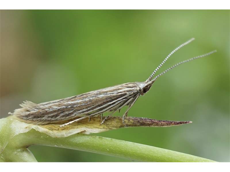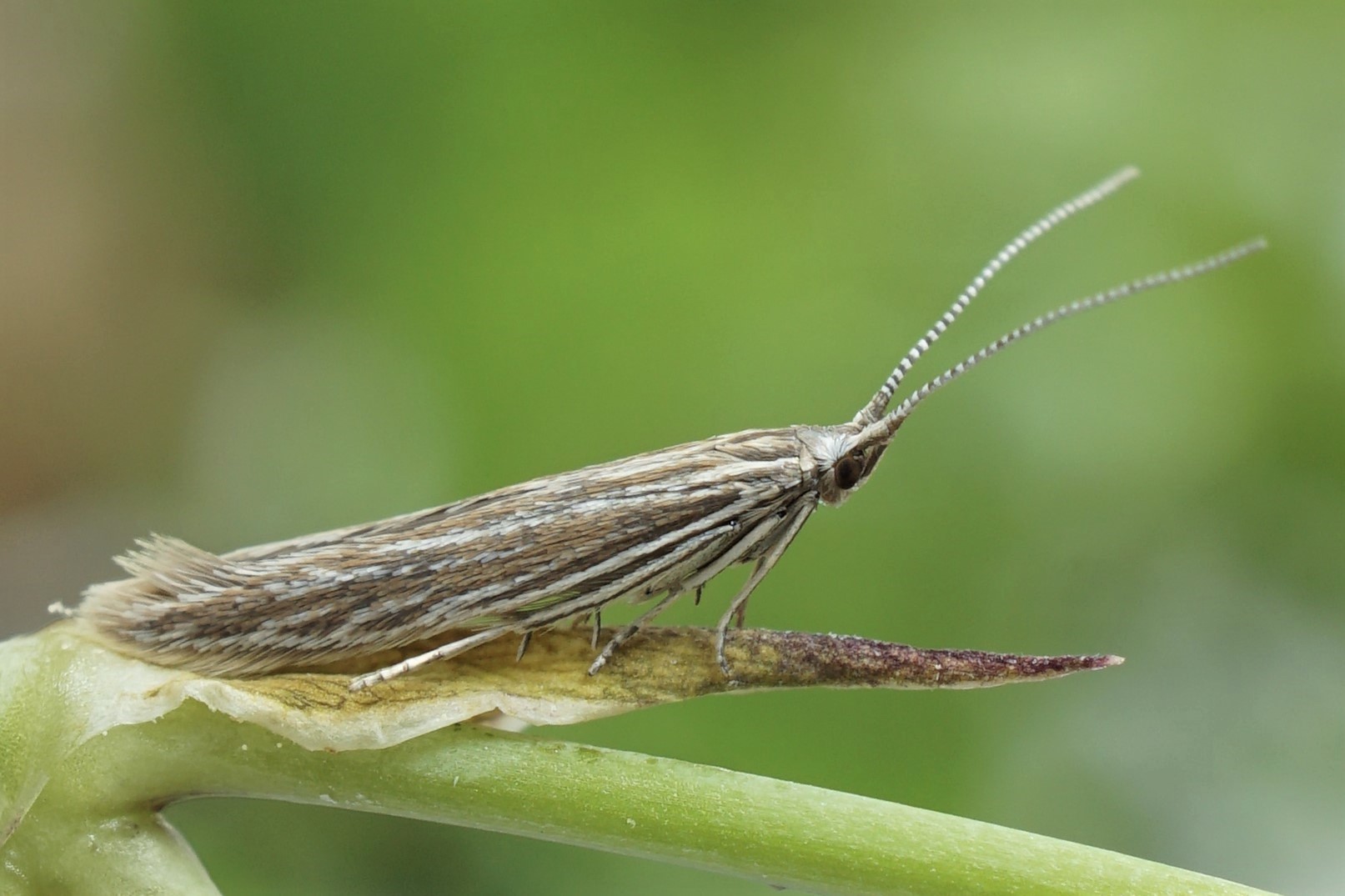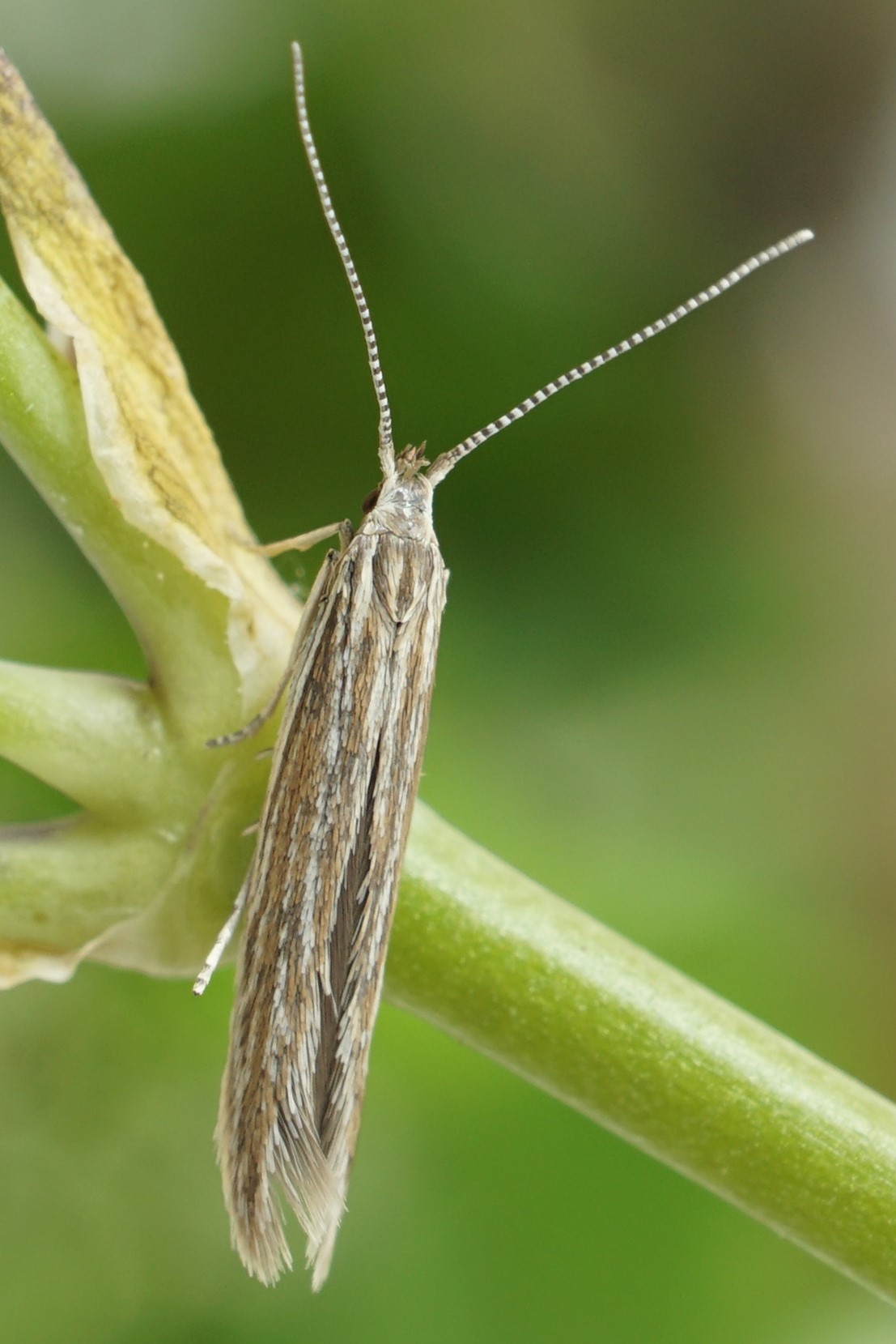 Falter von Coleophora squamosella, erhalten aus im Herbst 2005 in einer ehemaligen Kiesgrube bei Hainewalde an den Blüten- und Samenständen vom Scharfen Berufskraut ( Erigeron acer) eingeholten Raupensäcken. Falter am 20.Juni 2006 geschlüpft
