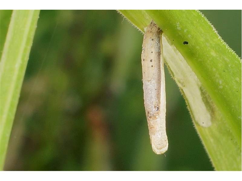 Die Larven von Coleophora solitariella leben vom Herbst bis Mai unter anderen an der Echten Sternmiere (Stellaria holostea). (F. Graf)