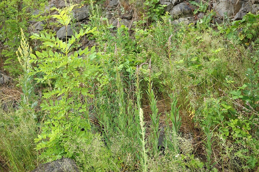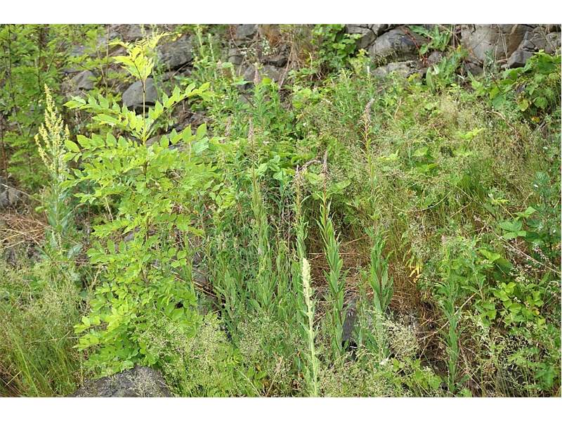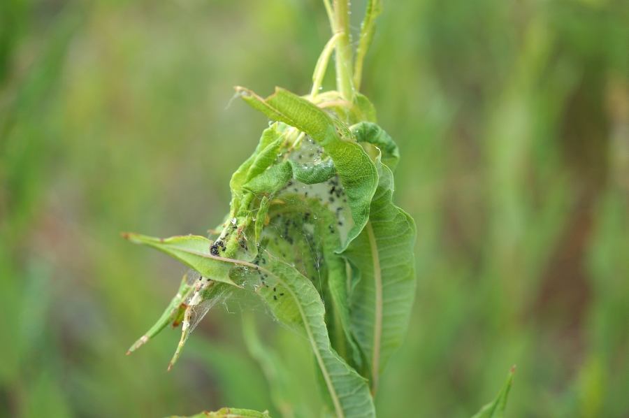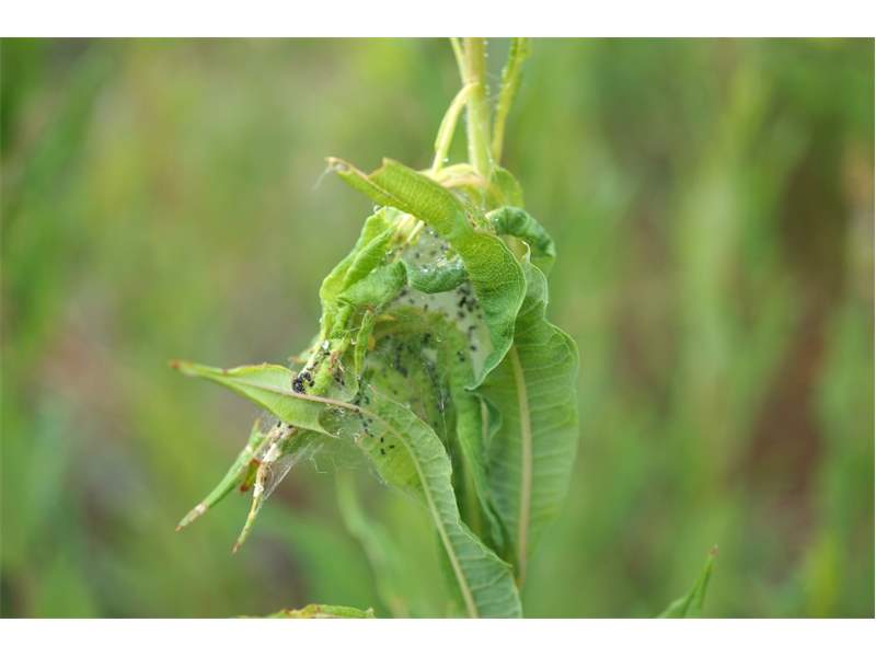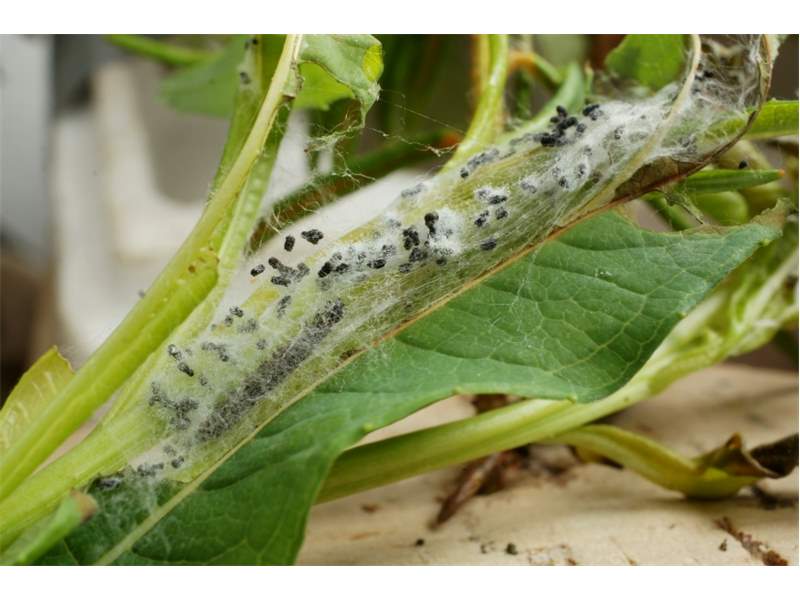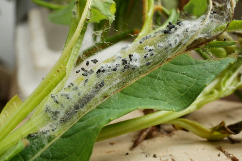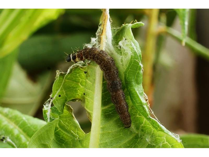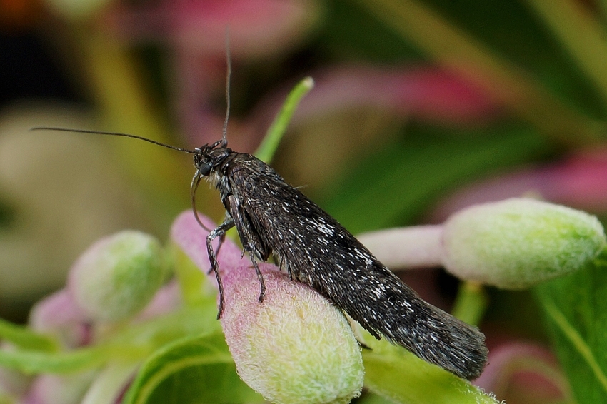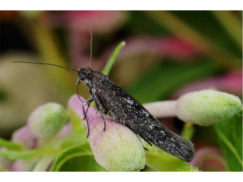 Die Larven von Scythris inspersella kann man ab Mitte Mai in kleinen Gesellschaften in einem Gespinst an den Triebspitzen von Weidenröschen (Epilobium angustifolium) finden. Die Falter erscheinen dann ab Ende Juni. (F. Graf)