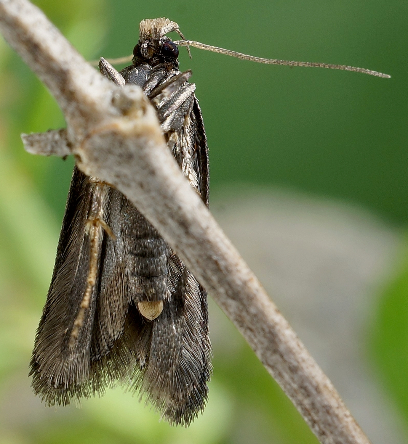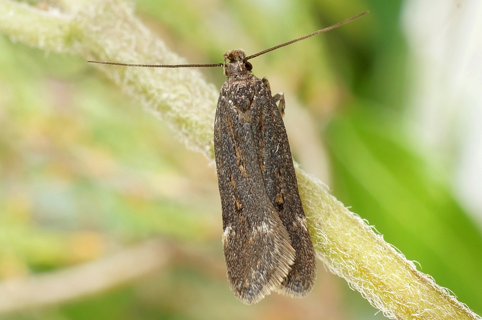Aroga velocella findet man auf vegetationsarmen Standorten ab etwa Mitte April bis in den August in zwei Generationen. Der Falter hält sich im bodennahen Bereich auf, von wo man ihn beim Begehen der entsprechenden Flächen oft auffliegen sehen kann. Die Larve lebt in einem seidigen Gespinnstschlauch im unteren Bereich des Kleinem Sauerampfers (Rumex acetosella). In den sandigen Gebieten Nordostsachsens häufig. (F. Graf)