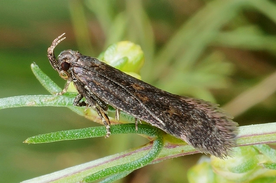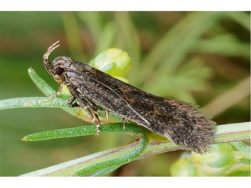 Die Larve von Mirificarma lentiginosella konnte ich in dem damals ruhenden Steinbruch bei Bernbruch jährlich im Frühjahr in großer Anzahl an den dortigen Färberginsterbüschen finden. Mittlerweile läuft der Betrieb schon wieder einige Jahre. Die Art ist dort verschollen. (F. Graf 2013)