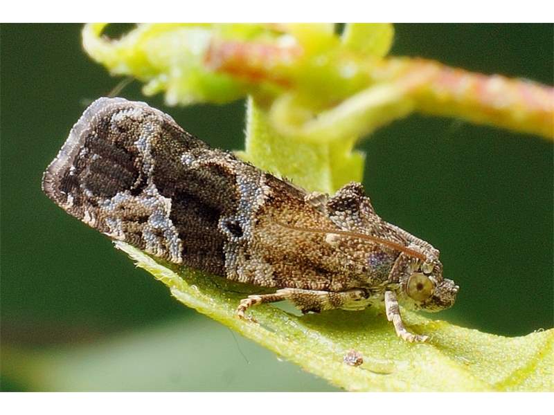 Zuchtfalter von Eudemis porphyrana, erzogen aus am 24. Mai 2015 in Blatrollen der Traubenkirsche (Prunus Padus) gefundenen Raupen. An einem Waldrand bei Hörnitz Falter am 14. Juni 2015 geschlüpft