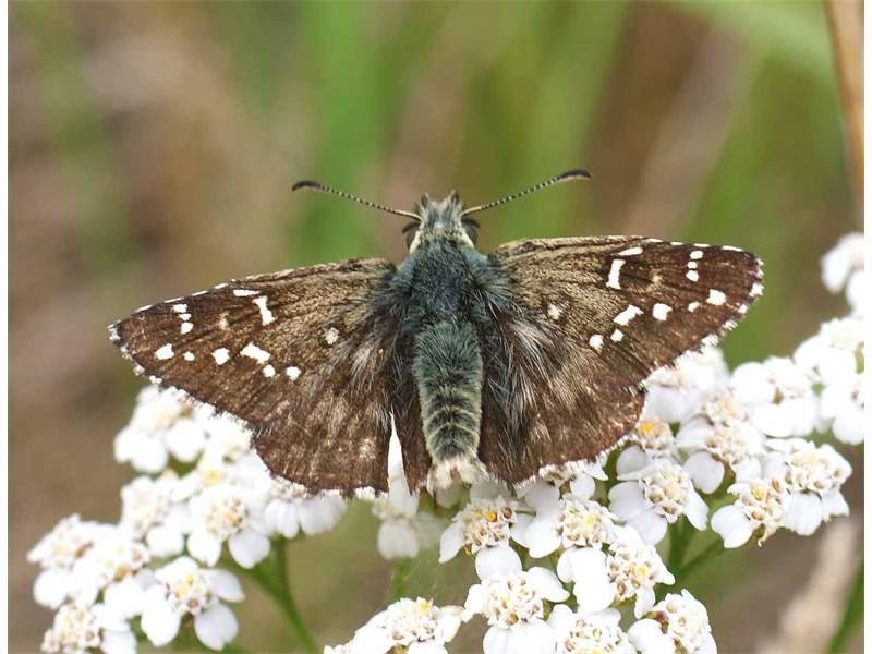 Pyrgus alveus auf Schafgarbenblüte im August 2012 bei Zerre