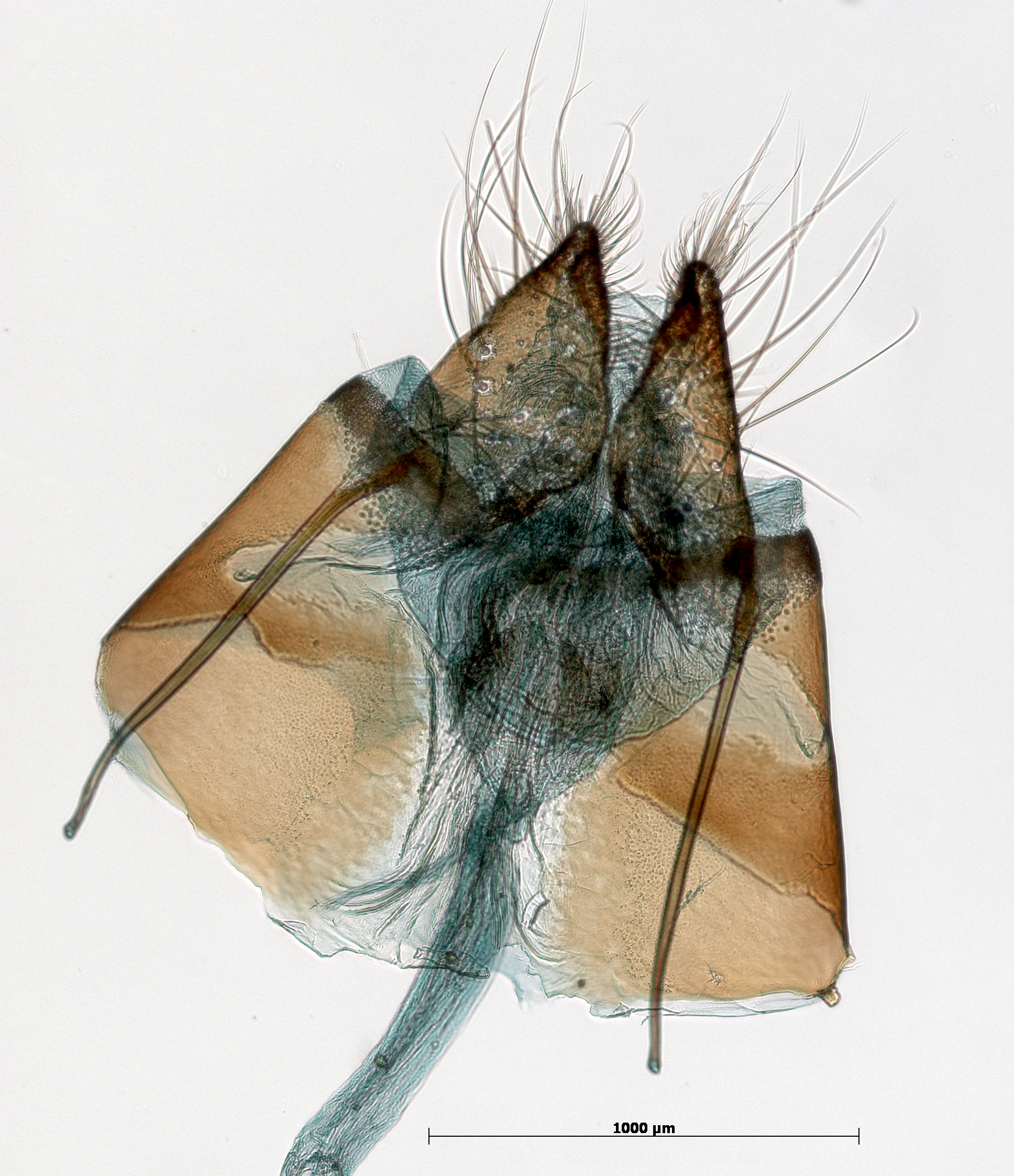 Weibliches Genital: Postvaginalplatte im Abdominalsegment 8 membranös; seitlich des Ostium bursae nur leichte, undeutliche Sklerotisierungen.