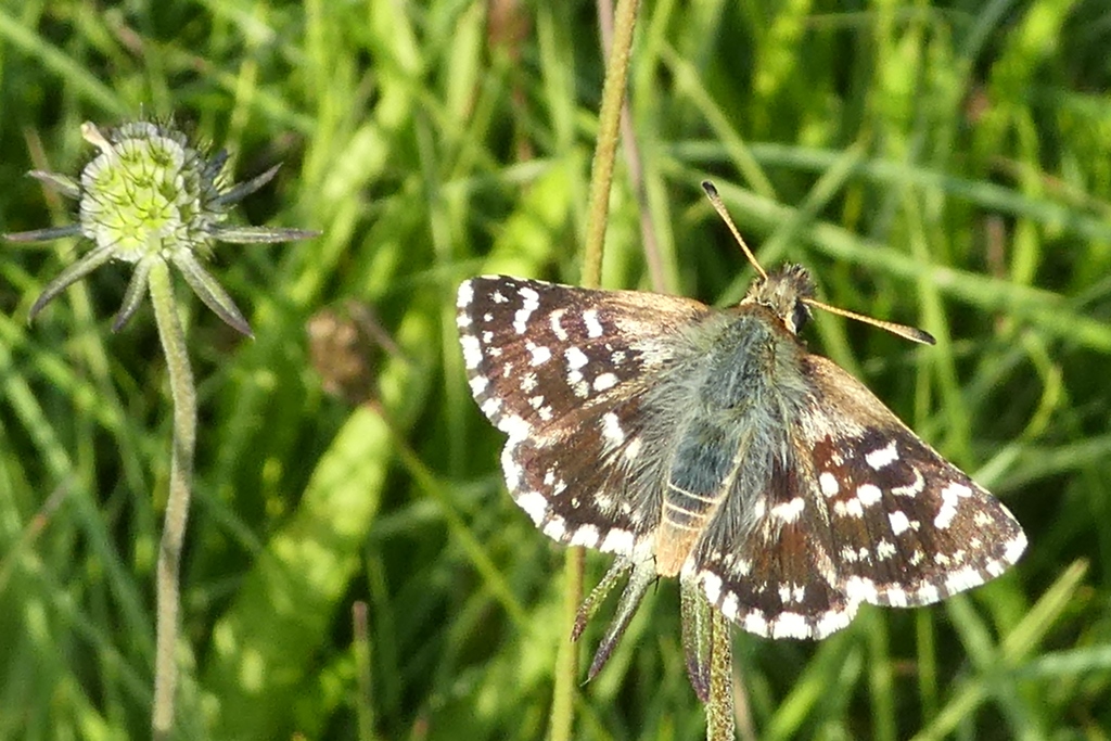 Ähnliche Art: Beim Gewöhnlichen Würfeldickkopf (Pyrgus malvae) die Vorderflügel vor dem Außenrand mit einer schwächeren und einer deutlicheren weißen Punktreihe, die nicht vollständig voneinander getrennt sind.