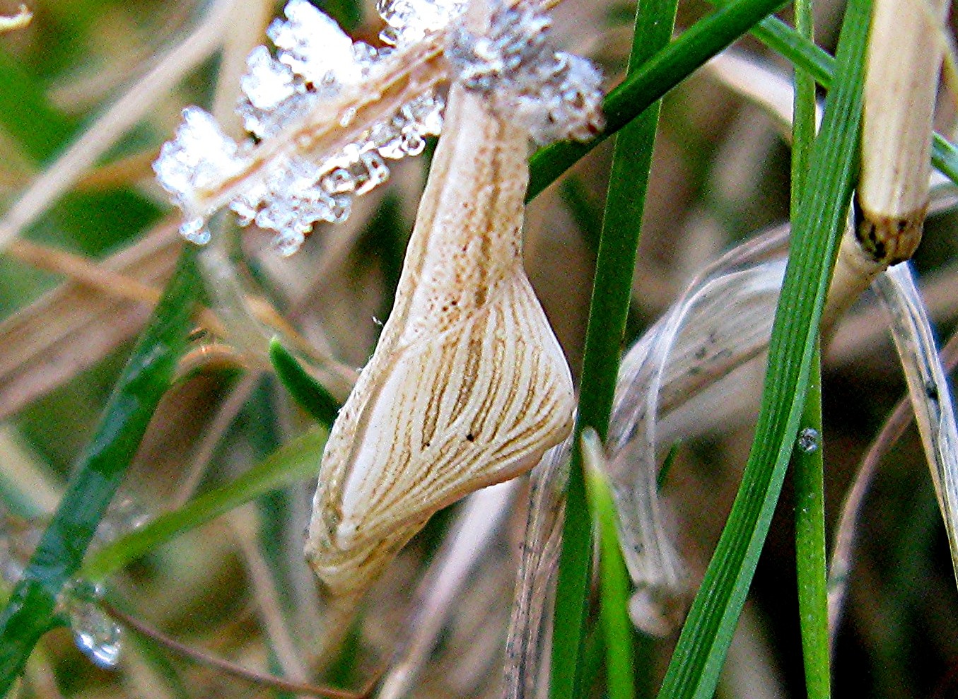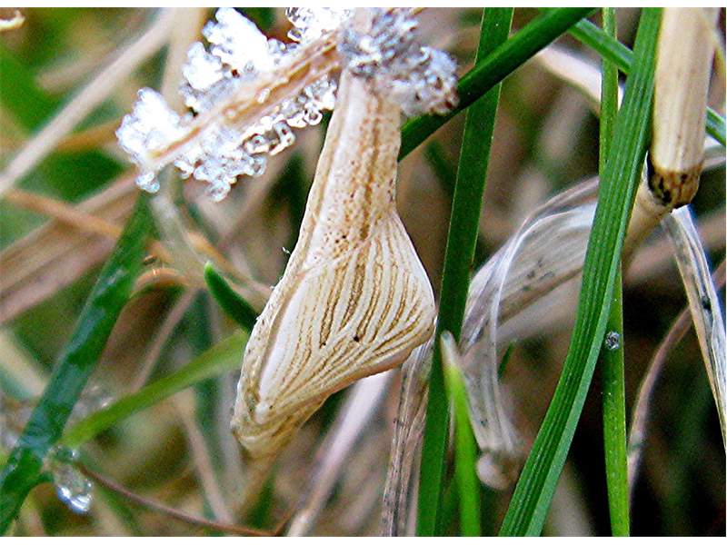 Puppe des Aurorafalters mit Schnee. 22.12.2007 in Lengenfeld Ortsteil Grün