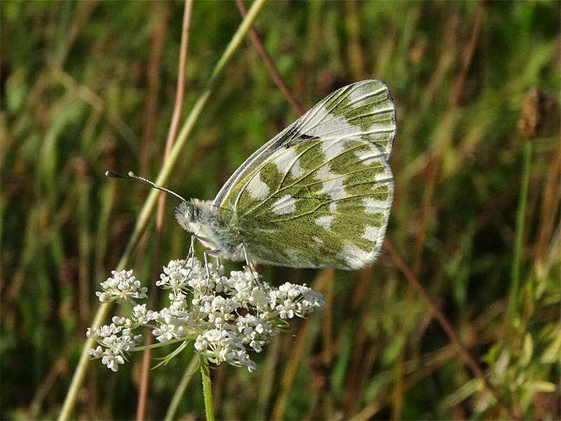 Ähnliche Art: Das Weibchen des Aurorafalters (Anthocharis cardamines)) besitzt oberseits in den Vorderflügelspitzen keine weißen Flecken und unterseits ist die olivgrüne Zeichnung des Hinterflügels durch viele kleine weiße Punkte unterbrochen.