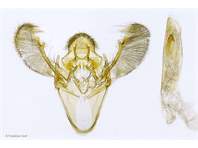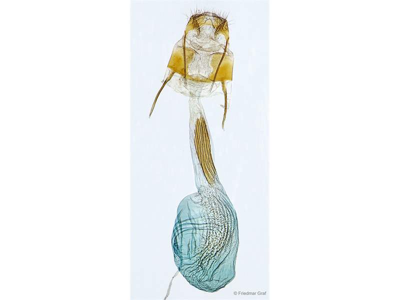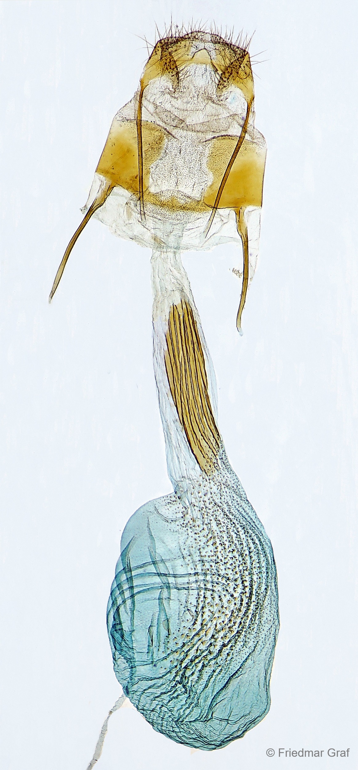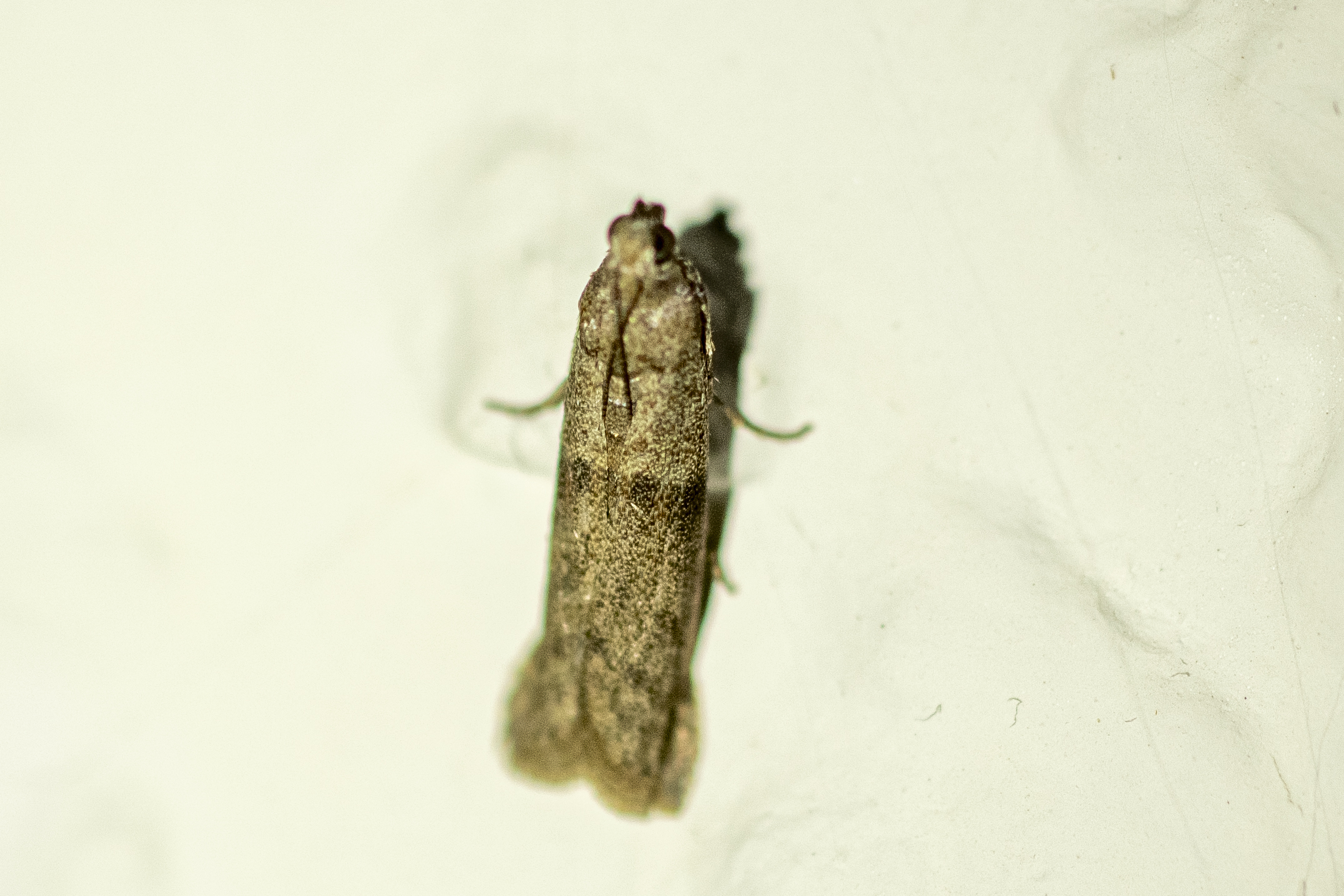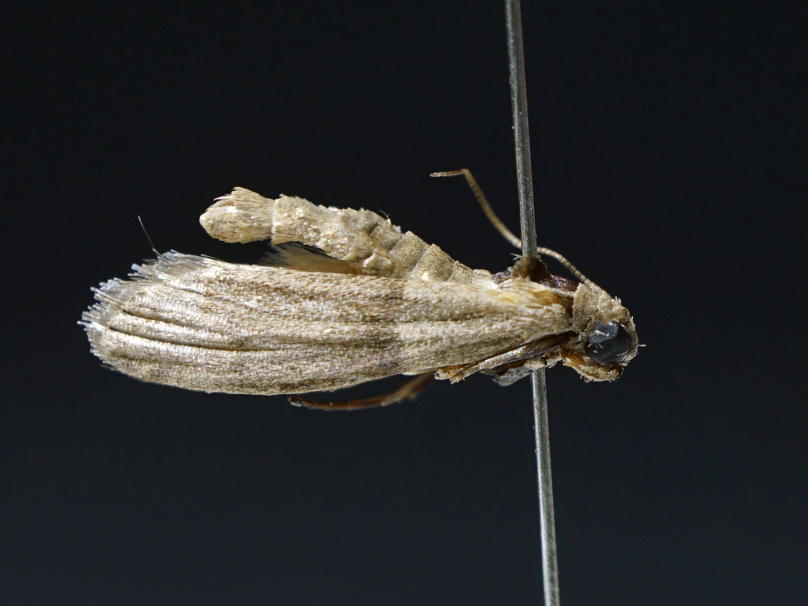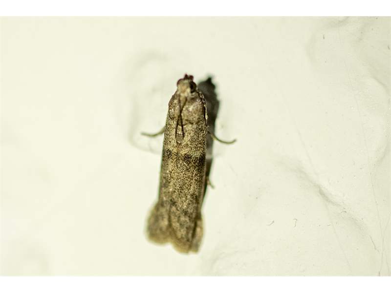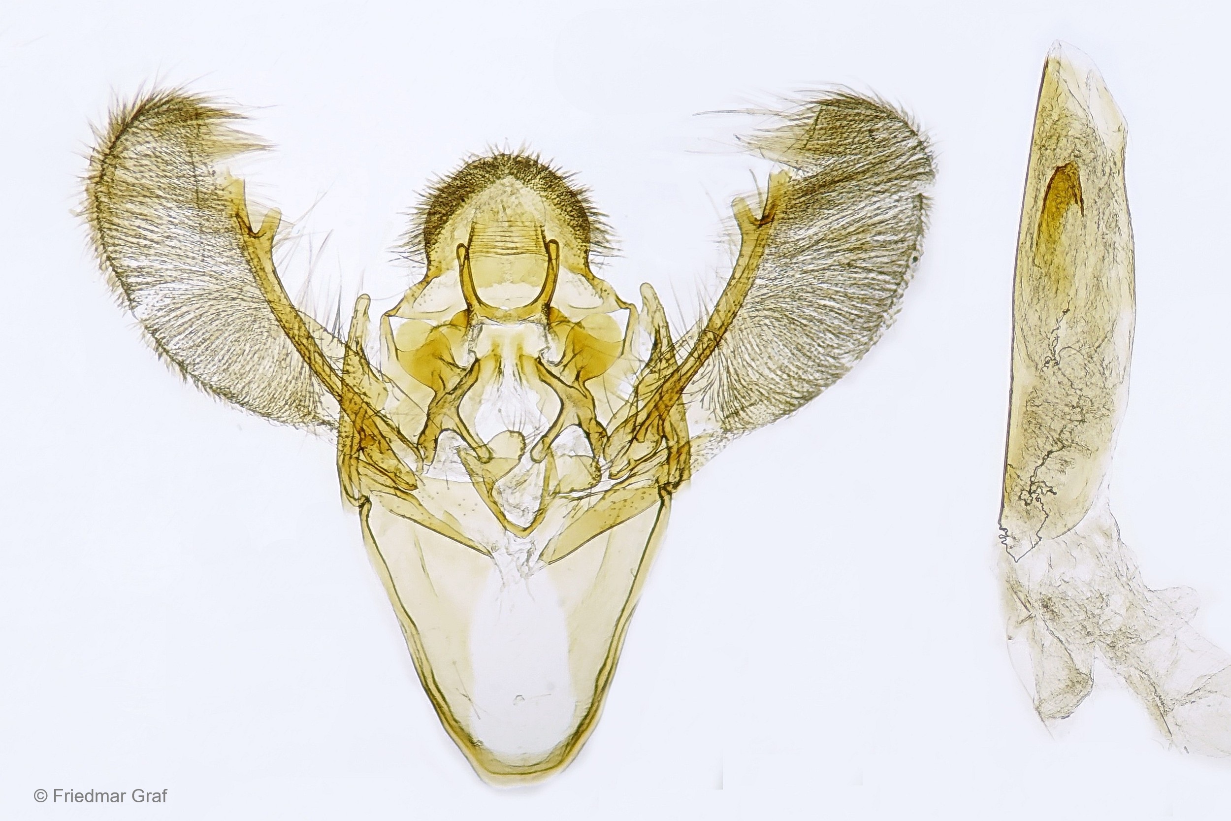 Vorderflügel X–Y mm lang; graubraun, hintere Flügelhälfte mit zwei braunen Längsstriemen, die die übrigen Zeichnungselemente überdecken; bei 1/3 und 4/5 jeweils eine undeutliche etwas heller graue Querlinie; Mittelfeld mit dunkel(grau)braunem Saum entlang der Querlinien; Mittelfeld mit zwei kleinen dunkelbraunen Diskalflecken; Außenfeld mit schwachem dunkelgraubraunem Saum entlang der äußeren Querlinie.