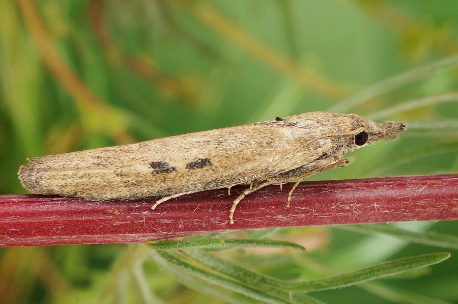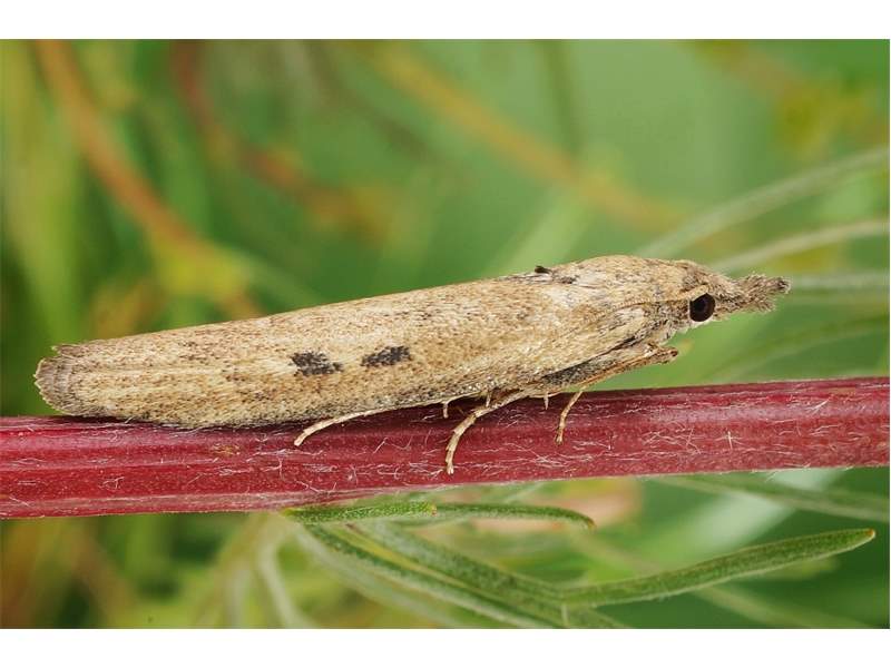Ähnliche Arten: Weibchen dieser Art ähneln AS_Aphomiaanella-Weibchen, die jedoch statt zweier schwarzer Punkte, einen weißgefüllten schwarzen Punkt- und einen komplett schwarzen Nierenmakel im Mittelfeld besitzen.