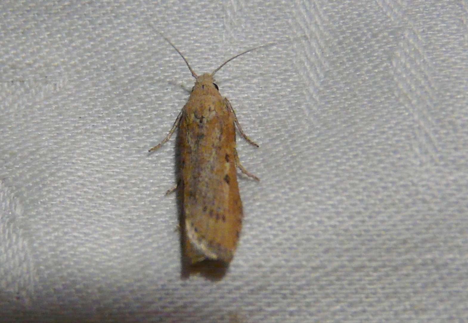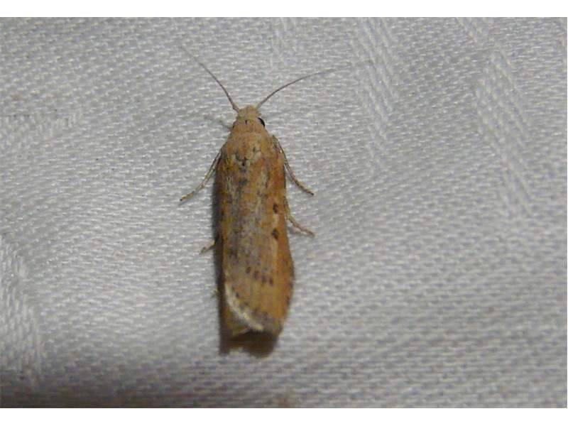 Palpen etwas länger als der Kopf, gerade nach vorn gestreckt (Weibchen), bei Männchen deutlich kürzer. Kopf und Thorax (grau)braun. Hinterflügel cremefarben, am Apex und Außenrand schwach hellbraun.
