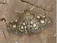 Vorderflügel X–Y mm lang; braun, mit dunkelbrauner Antemedian- und Postmedianlinie; letztere S-förmig, nach Außen von cremeweißen Zacken gesäumt; zwischen dunkelbraunem Punkt- und Strichmakel im Diskoidalfeld ein viereckiger, cremeweißer Fleck sowie ein großer runder cremeweißer Fleck an der äußeren Querlinie.