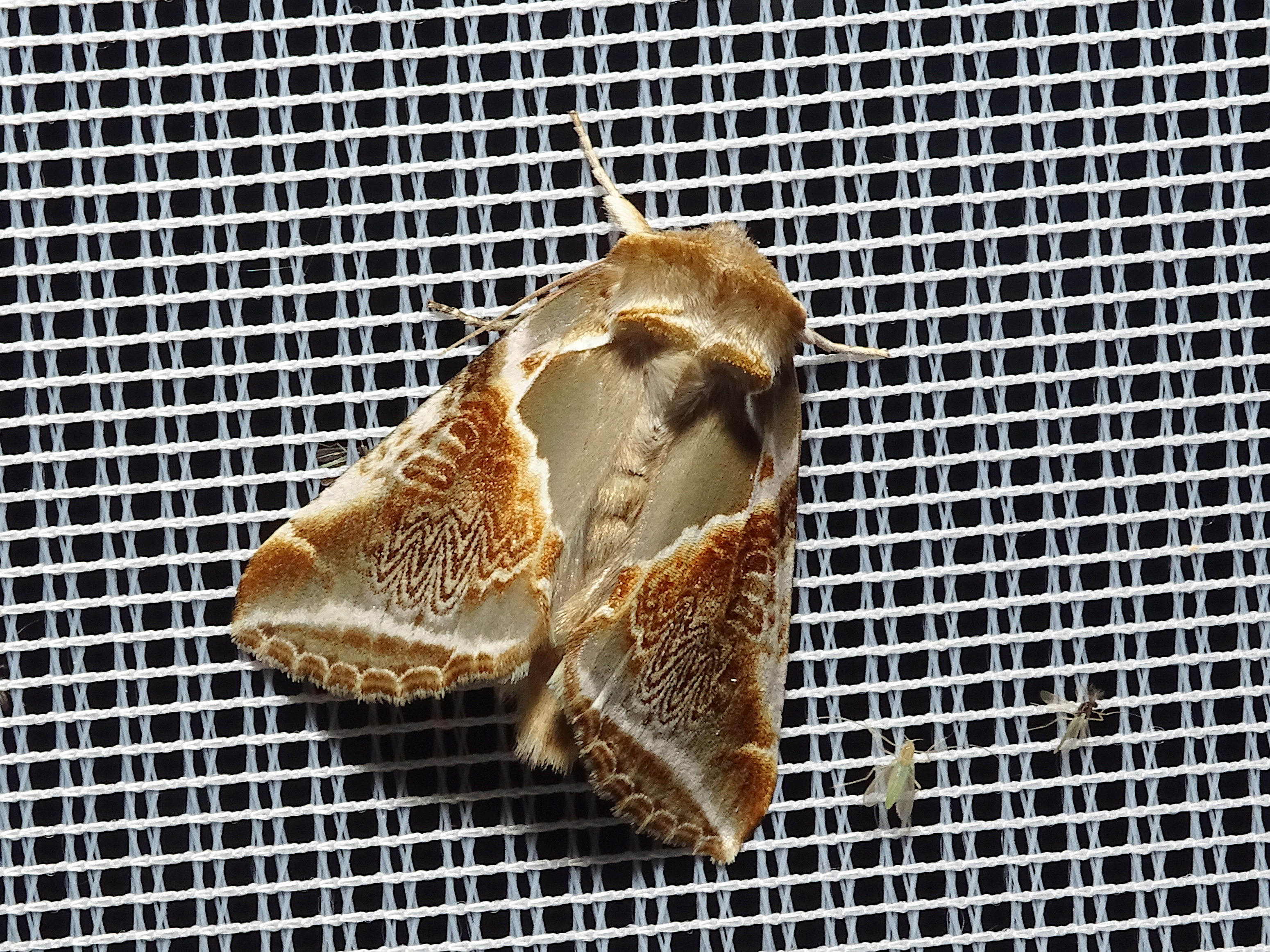 Falter dieser Art können von Mai bis September gesichtet werden, sie gehören wahrscheinlich nur einer Generation an. Ob Herbsttiere eventuell einer partiellen zweiten Generation zuzuordnen sind, ist noch nicht eindeutig geklärt. Das Beobachtungsmaximum liegt zwischen Mitte Juni und Ende Juli. Die Falter können mit Licht und Köder angelockt werden. Brombeere (Rubus fructiosus agg.) und Himbeere (Rubus idaeus) sind die Hauptnahrungspflanzen der nachtaktiven Larven, für weitere Rubus-Arten liegen noch keine Freilandbeobachtungen vor. Die braunen Larven sind wegen der zwei seitlichen weißen, schwarzgerandeten Flecken am vierten Segment unverwechselbar. Überwinterungsstadium ist die Puppe.