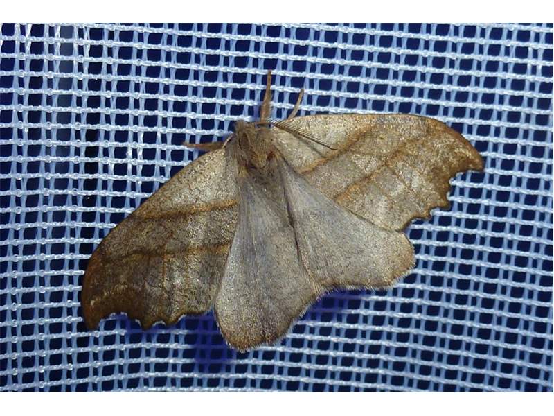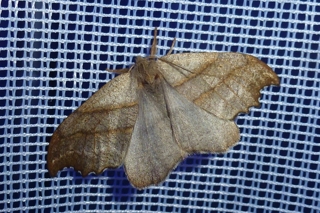 Männchen des Birken-Sichelflüglers südlich von Radeberg am Karswald, im Mai 2019 nachts am Kunstlicht