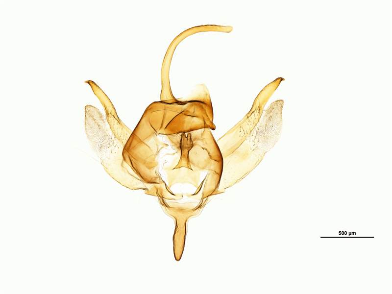 Bei den Männchen ist die sklerotisierte Costa der Valven lang und schmal, der Saccus ist ebenfalls lang und schmal. Bei den Weibchen ist der Ductus bursae gewunden und posterior nicht sklerotisiert, das Antrum ist breit.