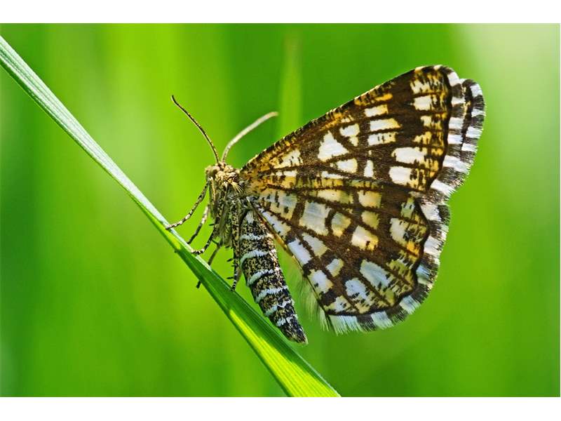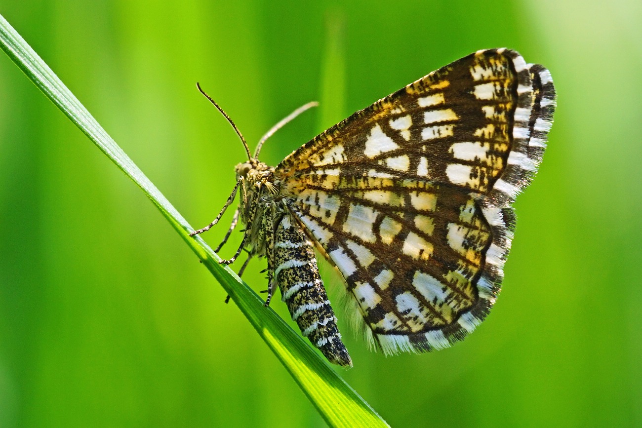 Weibchen des Gitterspanners am 26.06.2018 im Tharandter Wald am Waldrand in Spechthausen. Zu sehen sind die Flügelunterseiten.