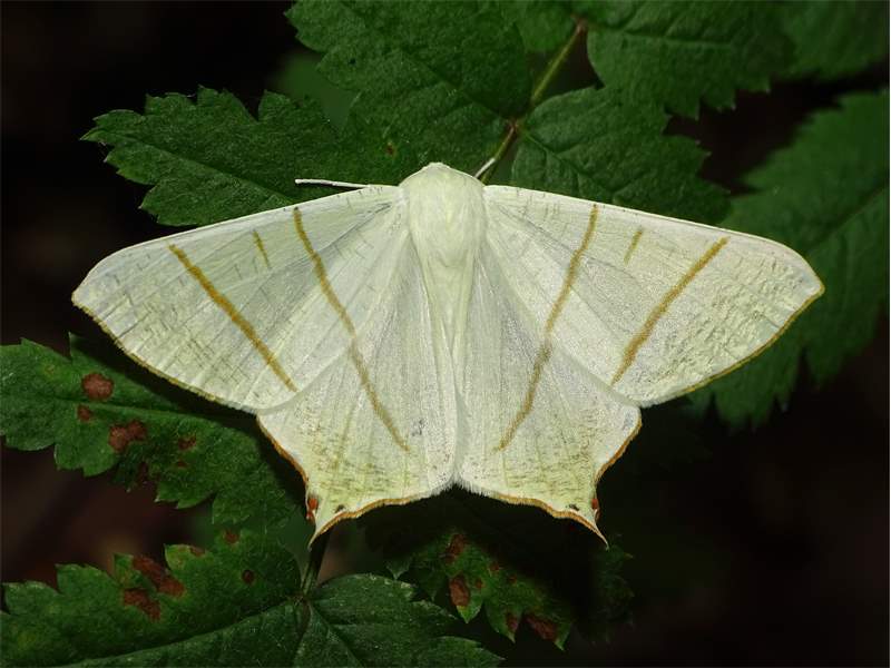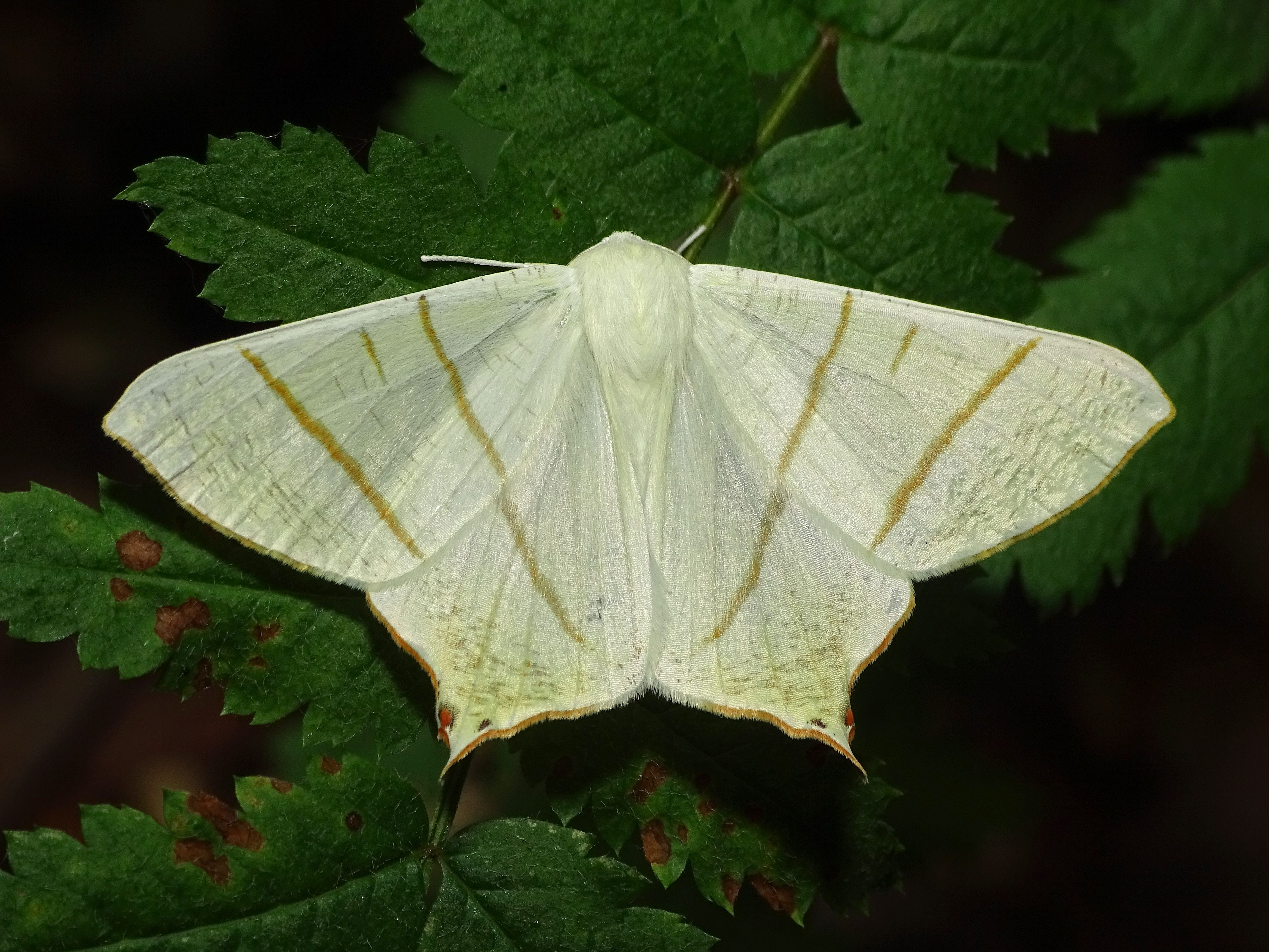 Grundfarbe aller Flügel gelb bis gelblichweiß, quer zu den Flügeladern fein bräunlich gestrichelt. Alle Flügel besitzen eine durchgehende braune Saumlinie.