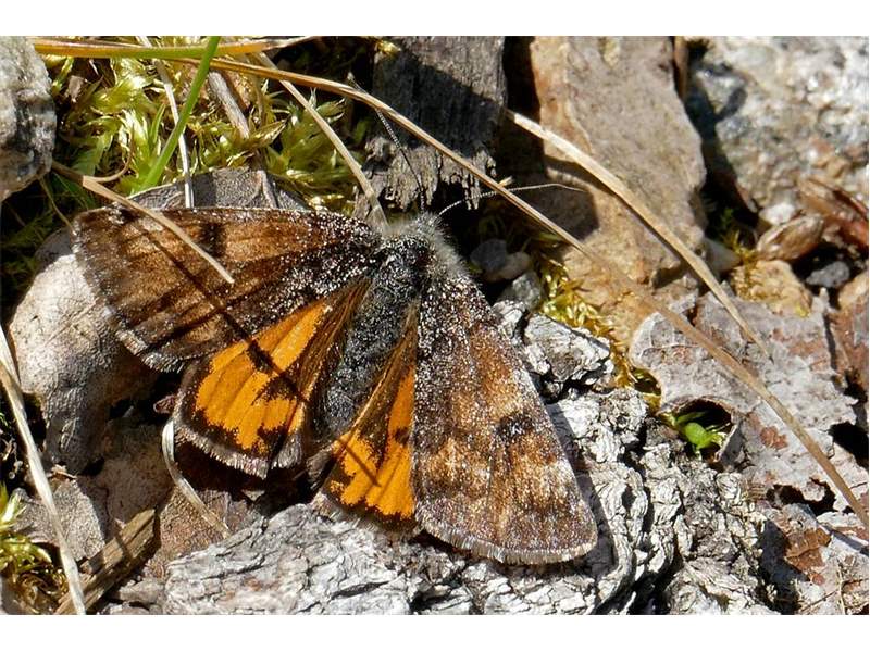 Hinterflügel-Oberseite Orange mit braunem Außenrand, schwarzes Wurzelfeld oft mit großem Queraderfleck verbunden Orange mit braunem Außenrand, schwarzes Wurzelfeld meist nicht mit dem kleinen Queraderfleck verbunden